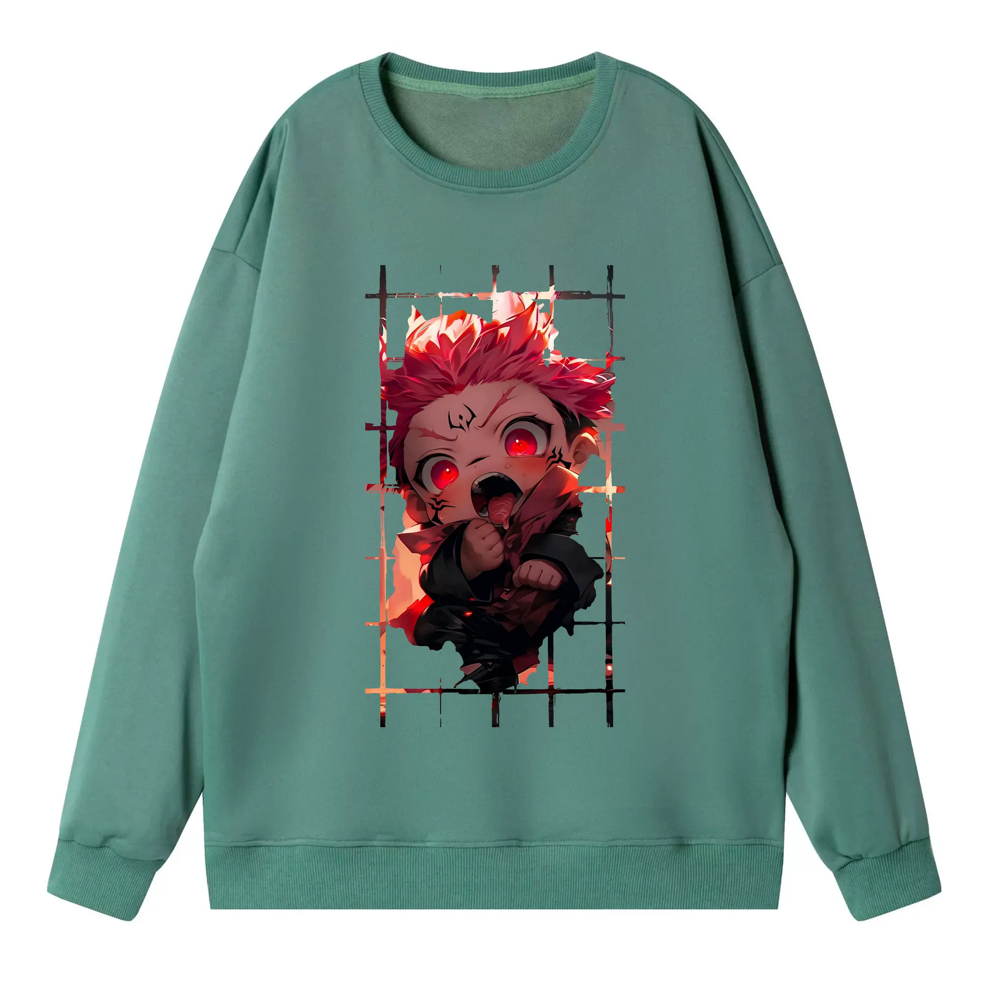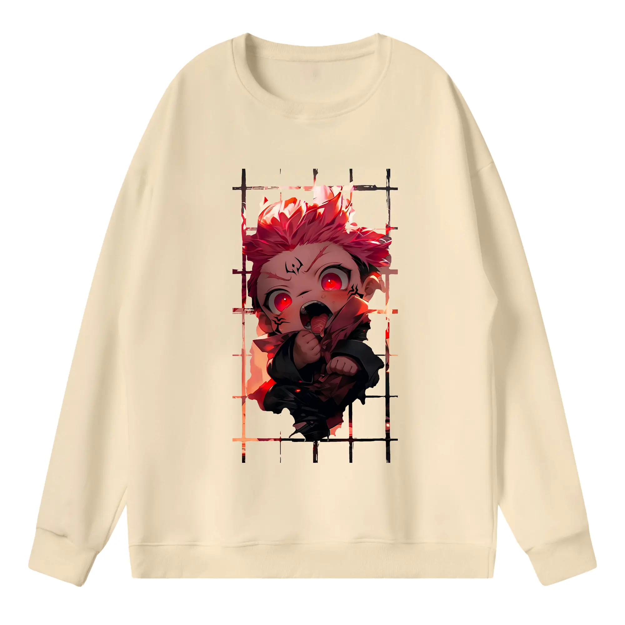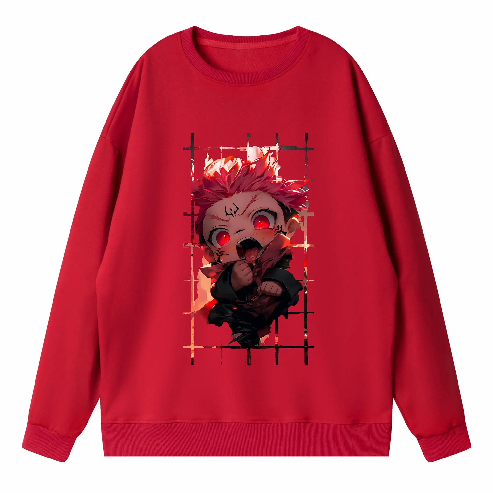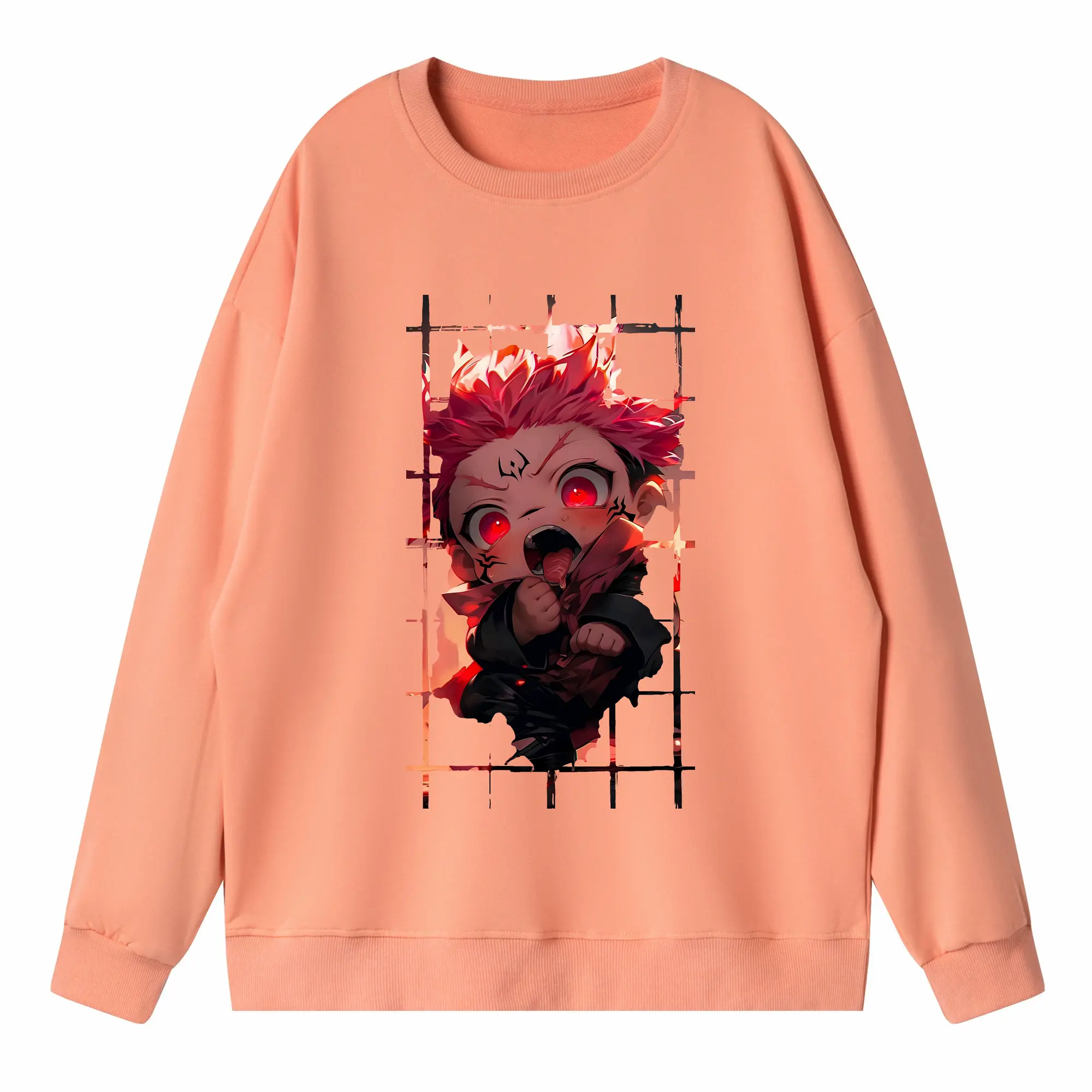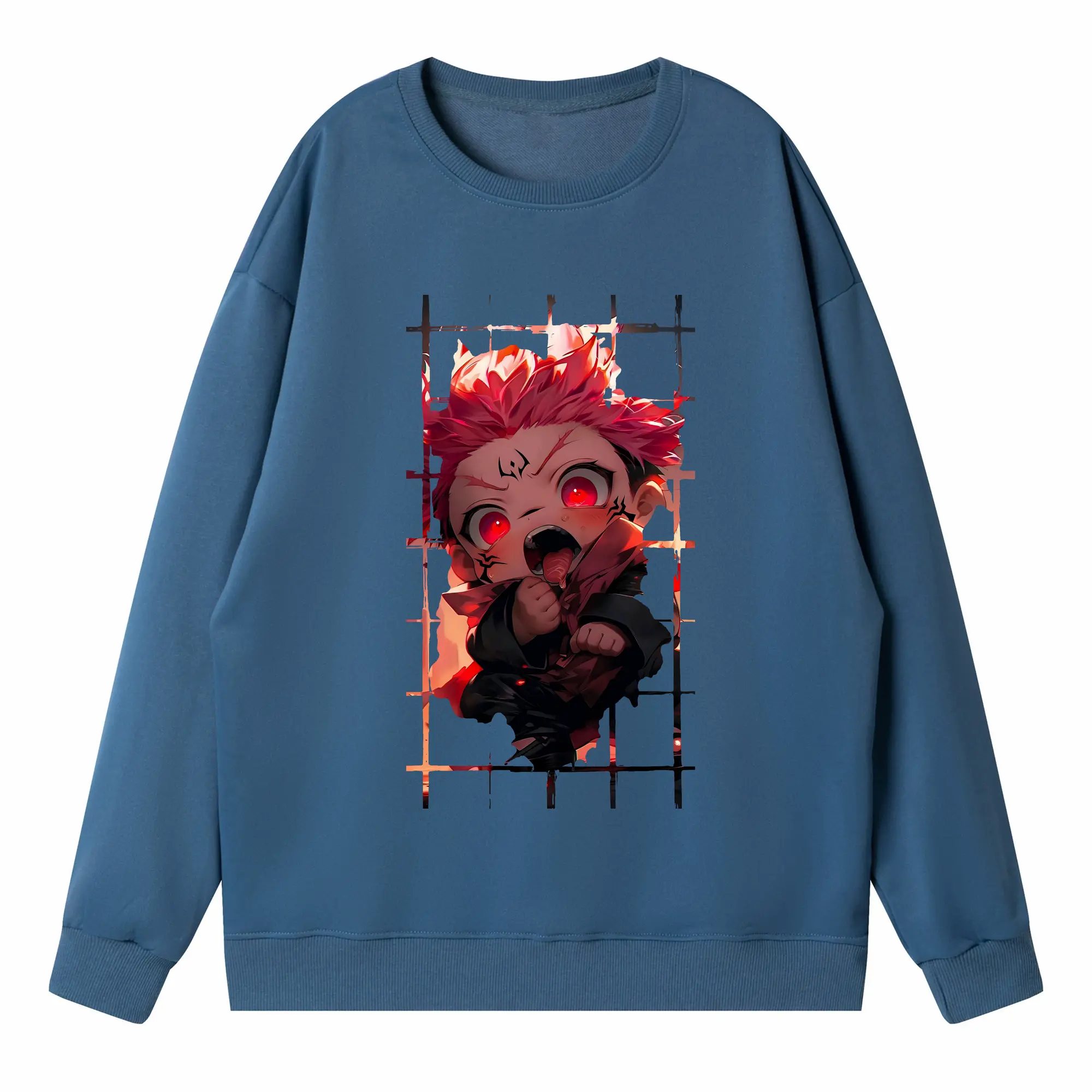 呪術廻戦 グッズ,両面宿儺 - 高品質 クルーネック スウェット ・ コットン59% ポリエステル41% ・ ユニセックス 長袖 トレーナー ・ カジュアル デイリー スポーツ 散歩用