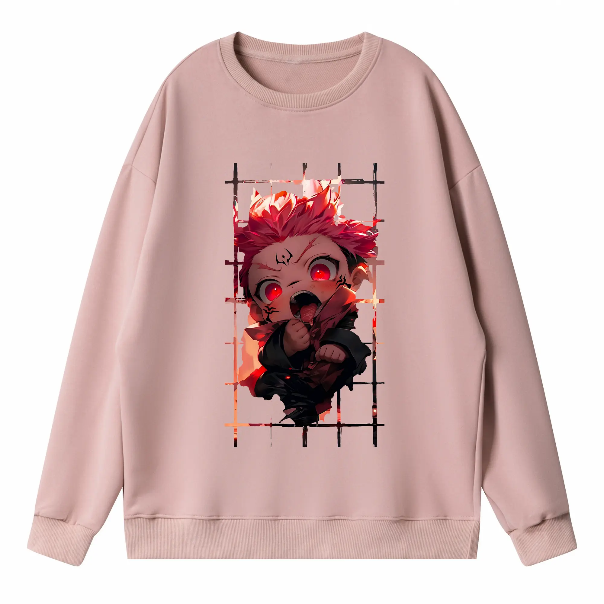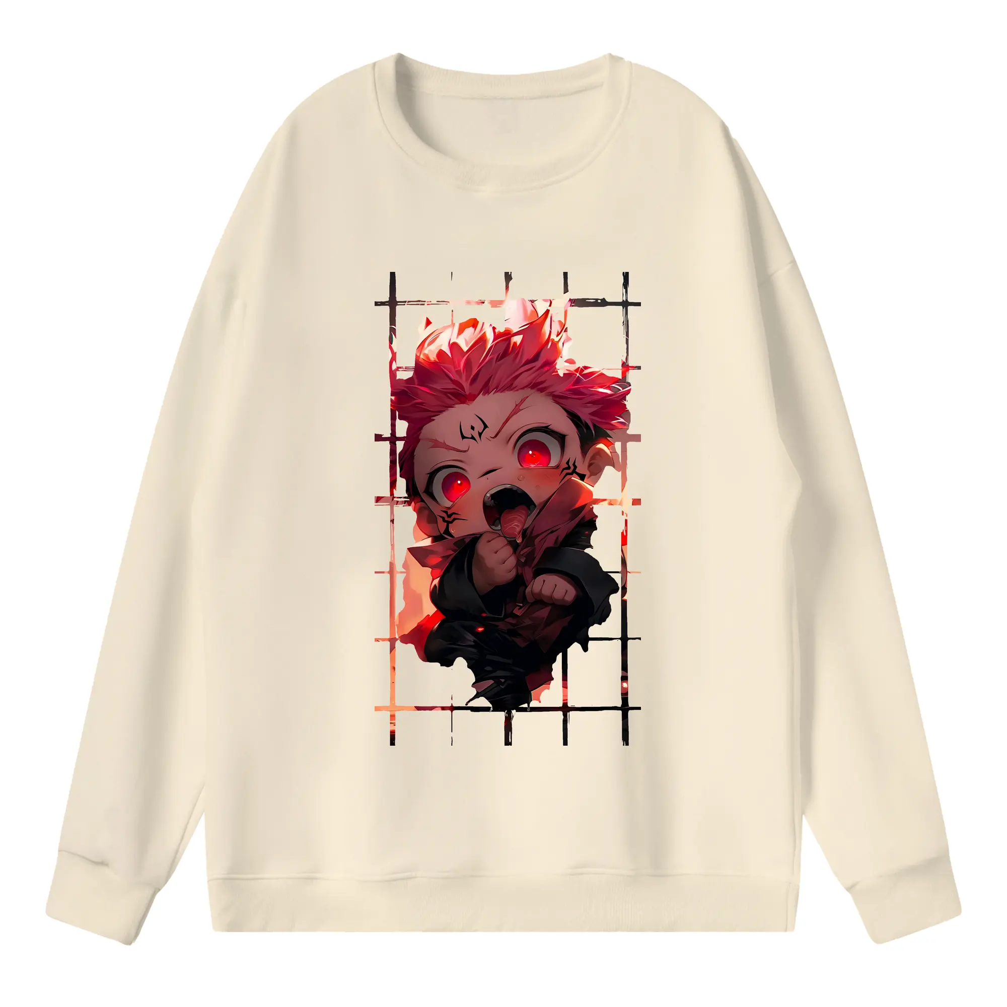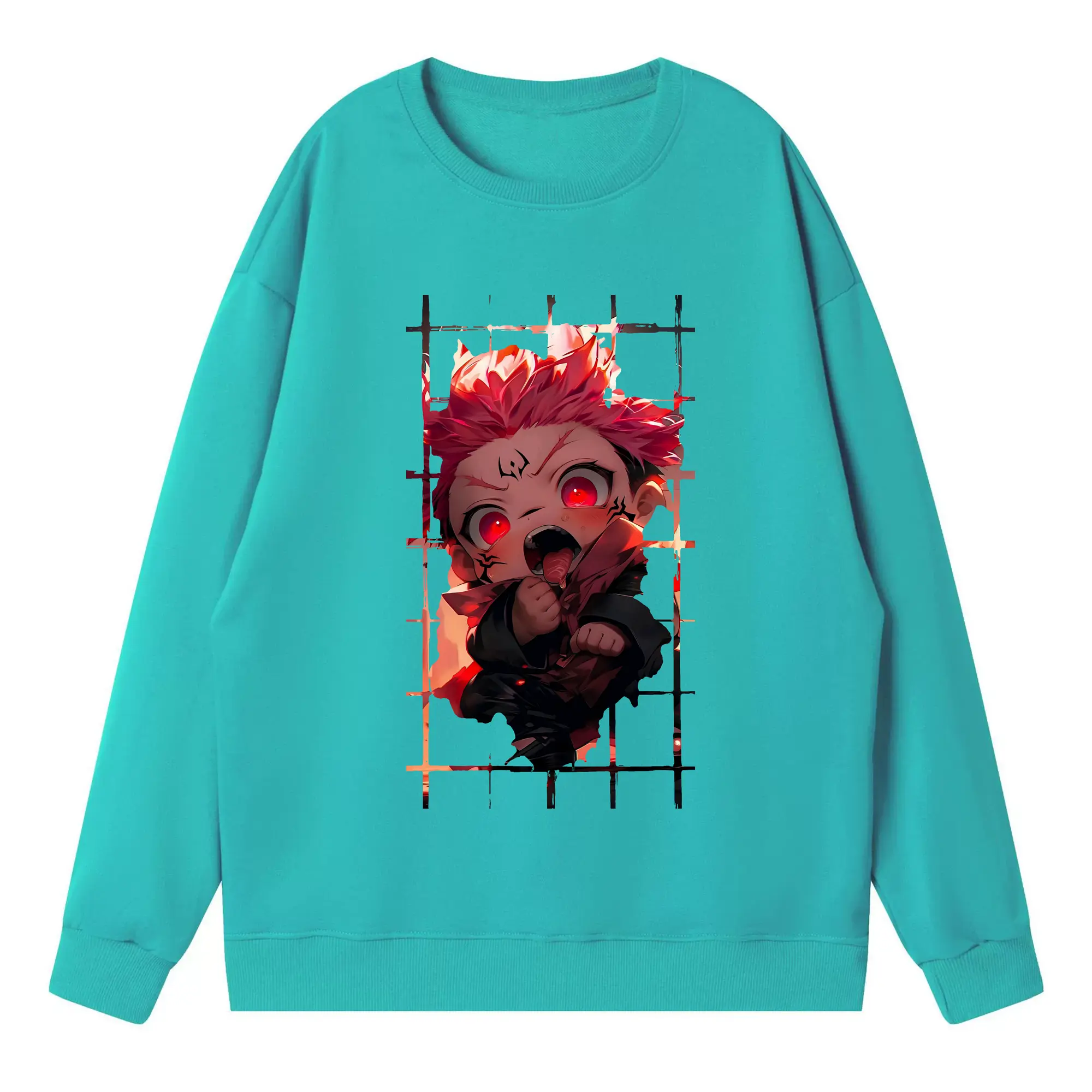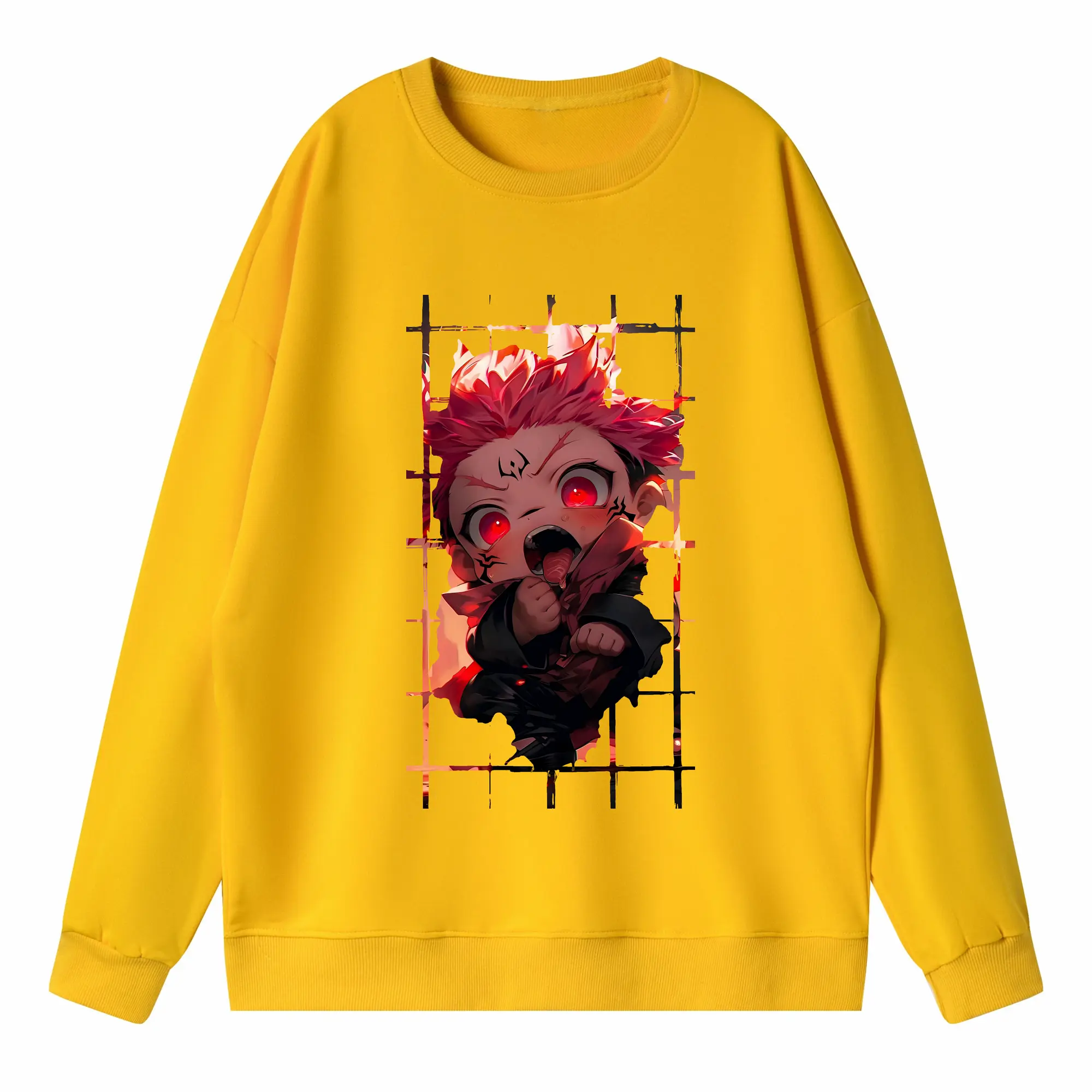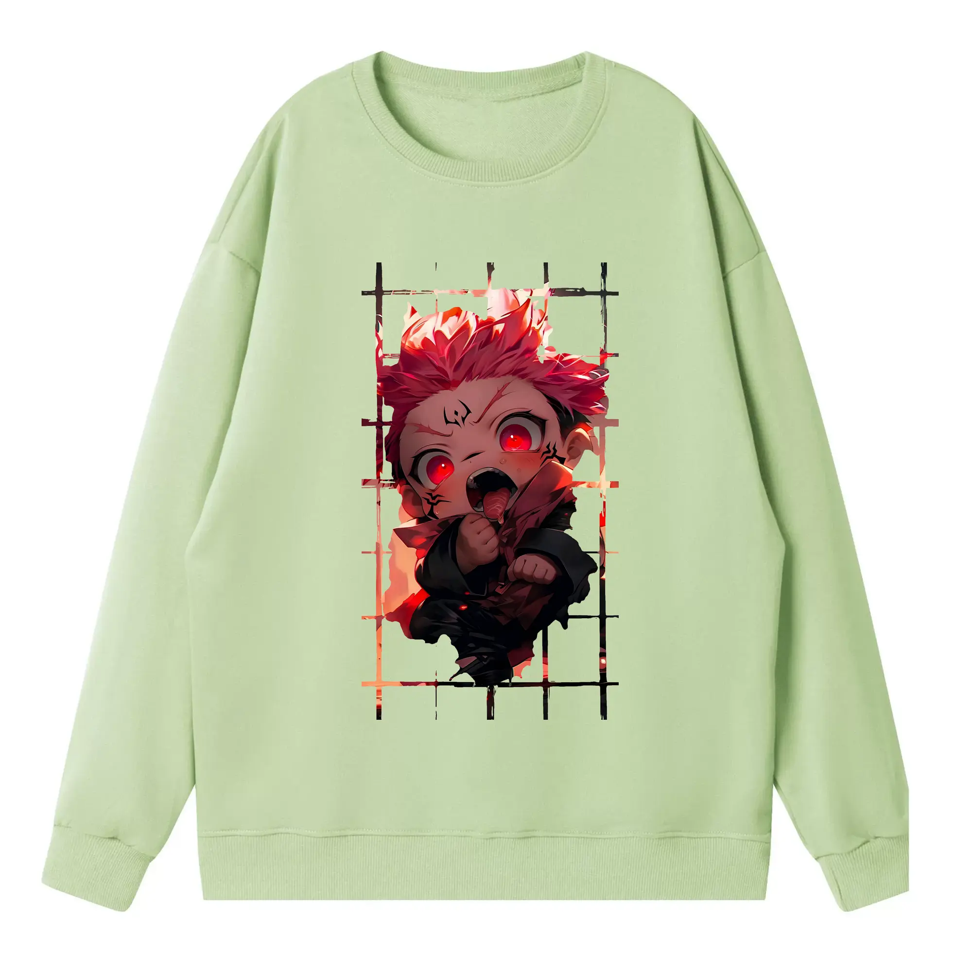 呪術廻戦 グッズ,両面宿儺 - 高品質 クルーネック スウェット ・ コットン59% ポリエステル41% ・ ユニセックス 長袖 トレーナー ・ カジュアル デイリー スポーツ 散歩用