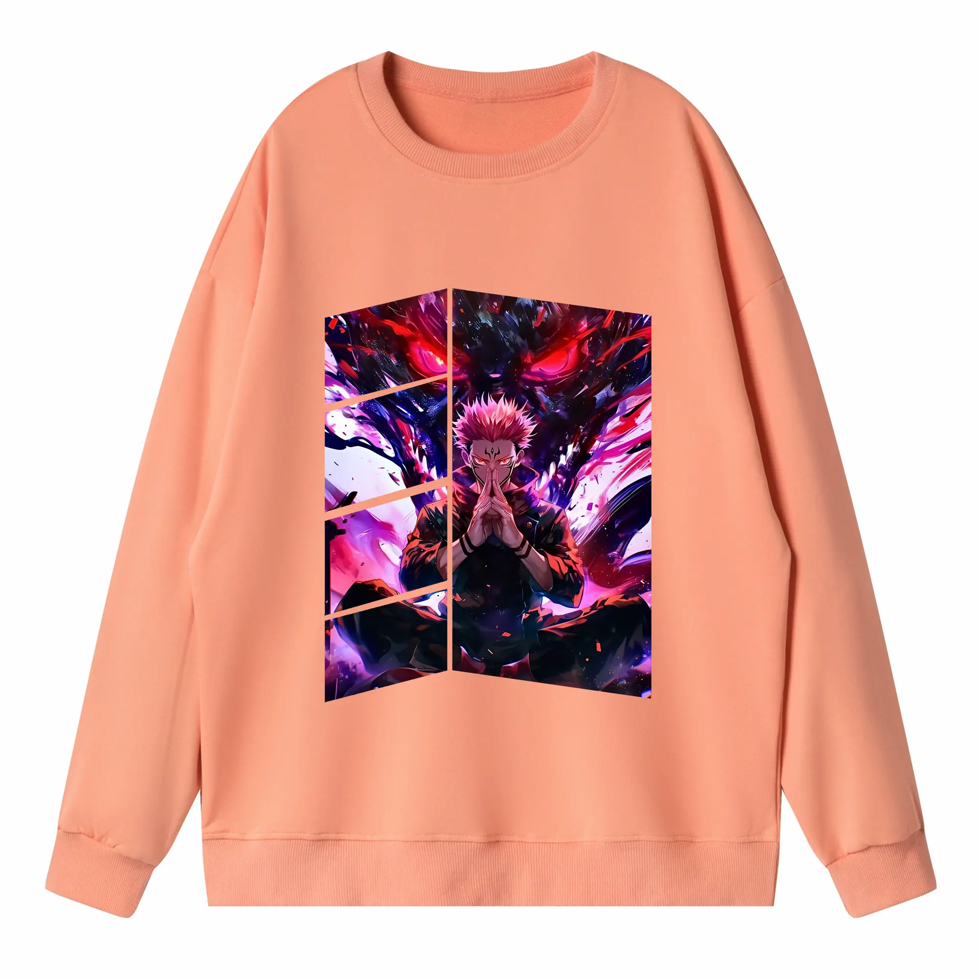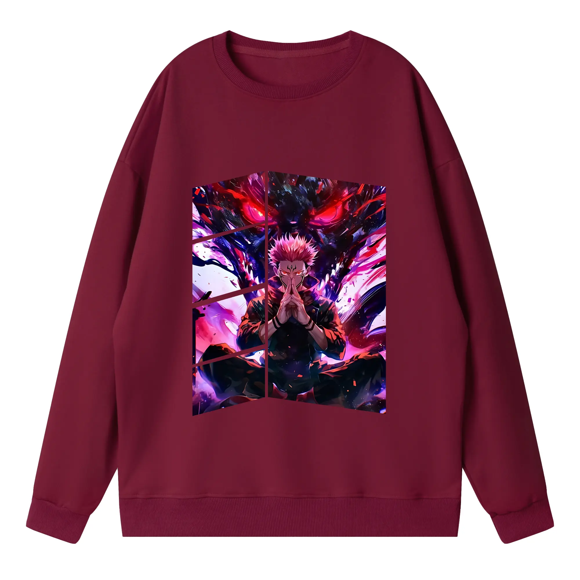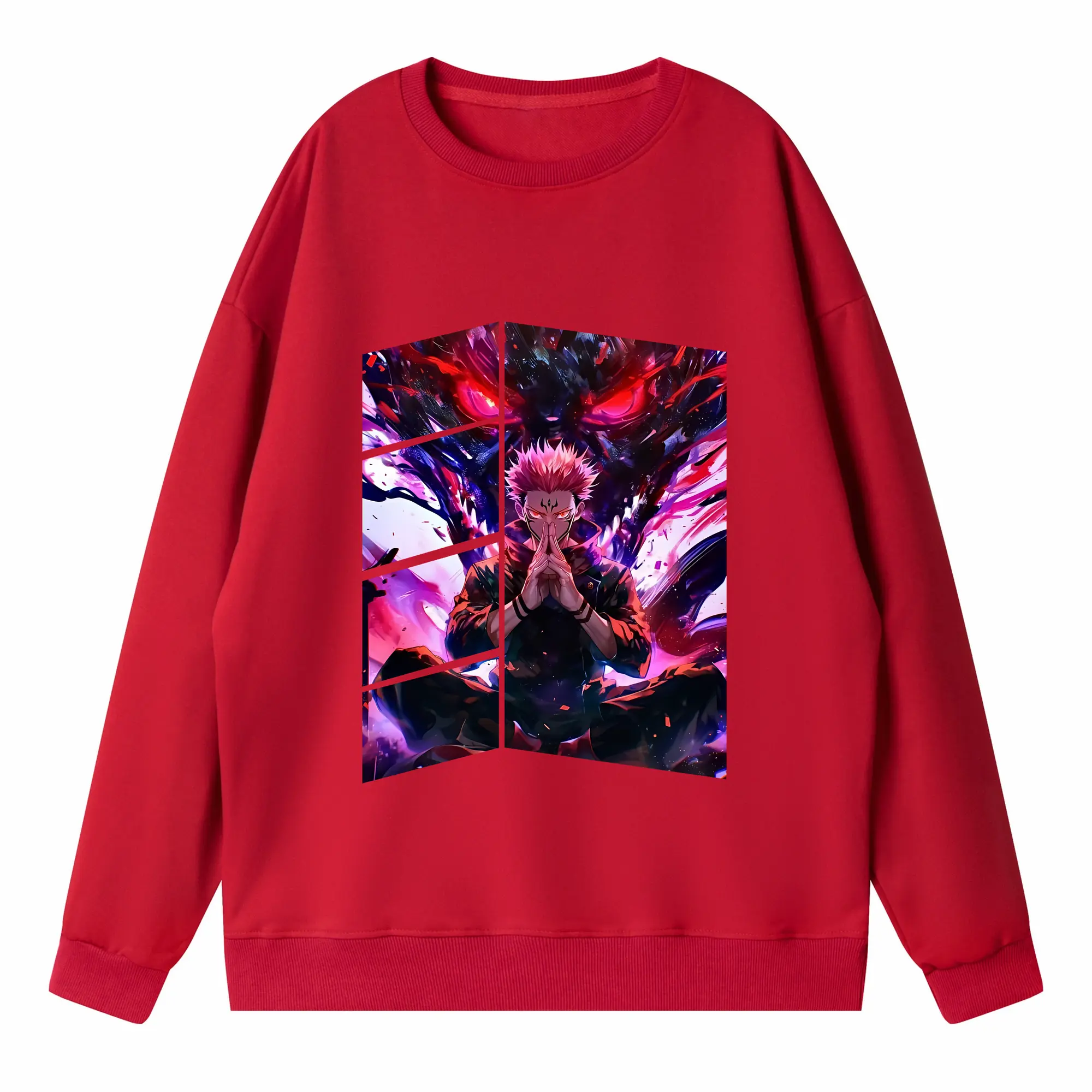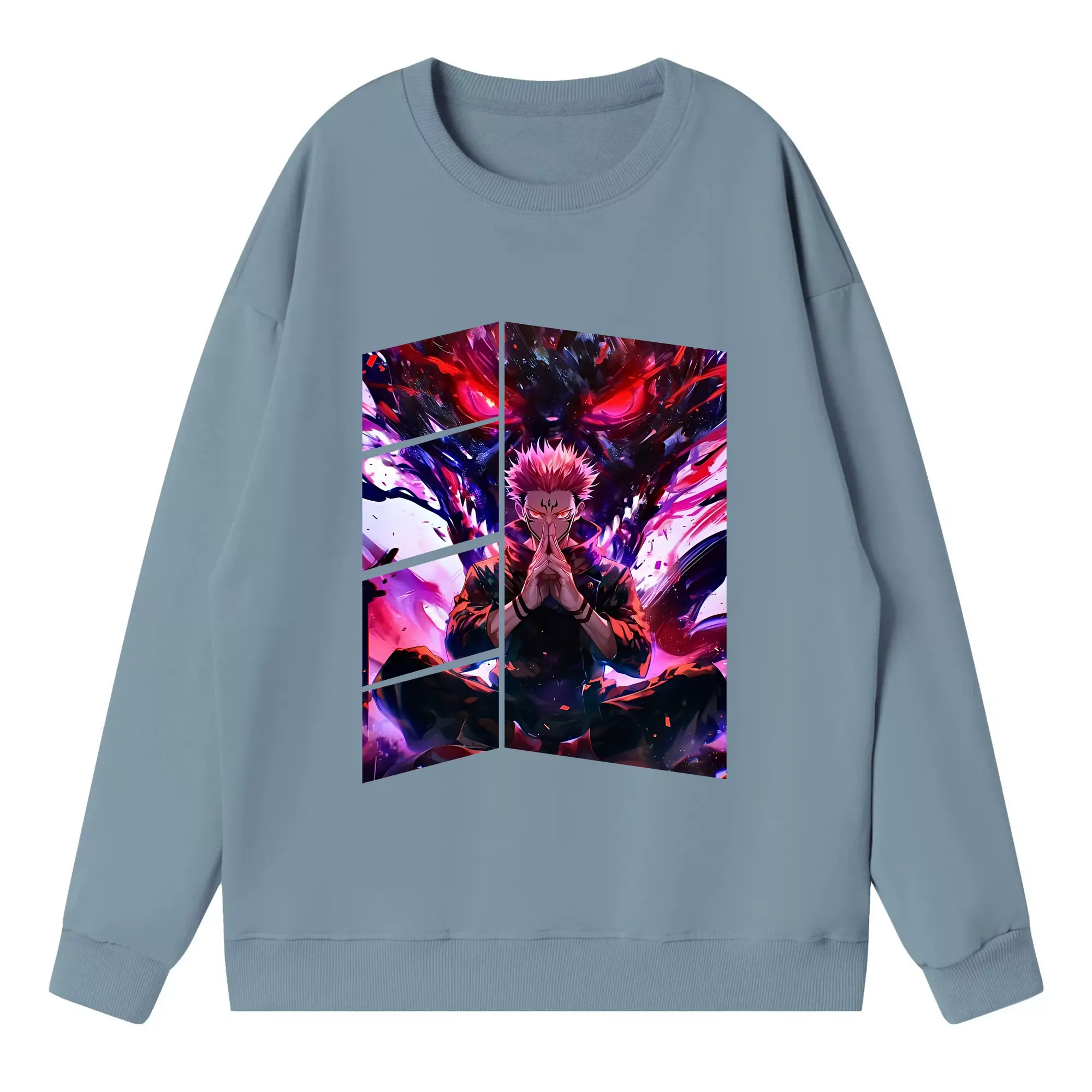 呪術廻戦 グッズ,両面宿儺 - 高品質 クルーネック スウェット ・ コットン59% ポリエステル41% ・ ユニセックス 長袖 トレーナー ・ カジュアル デイリー スポーツ 散歩用