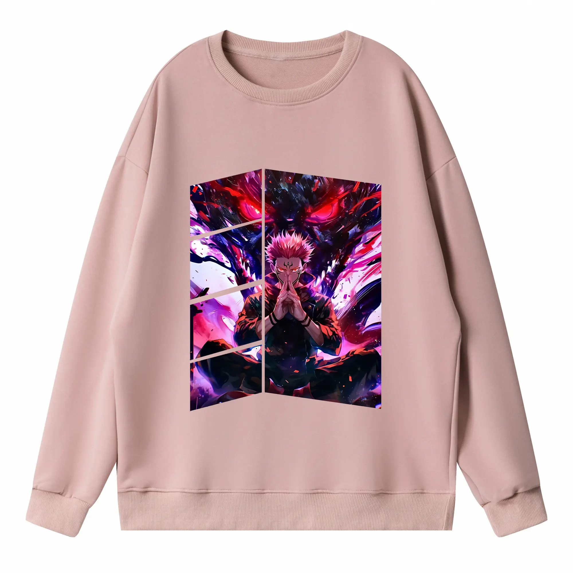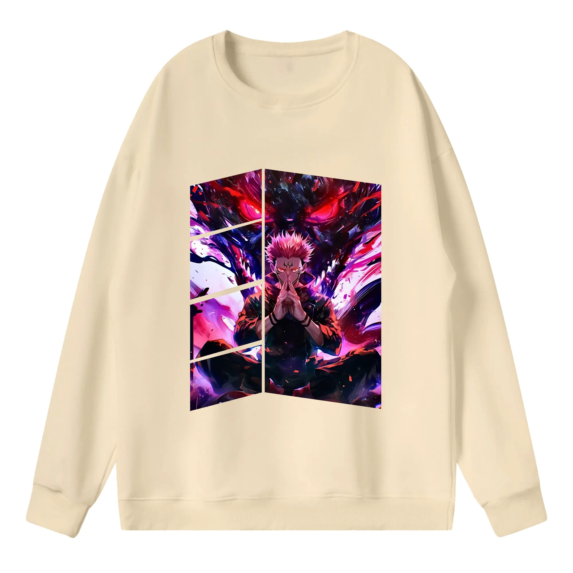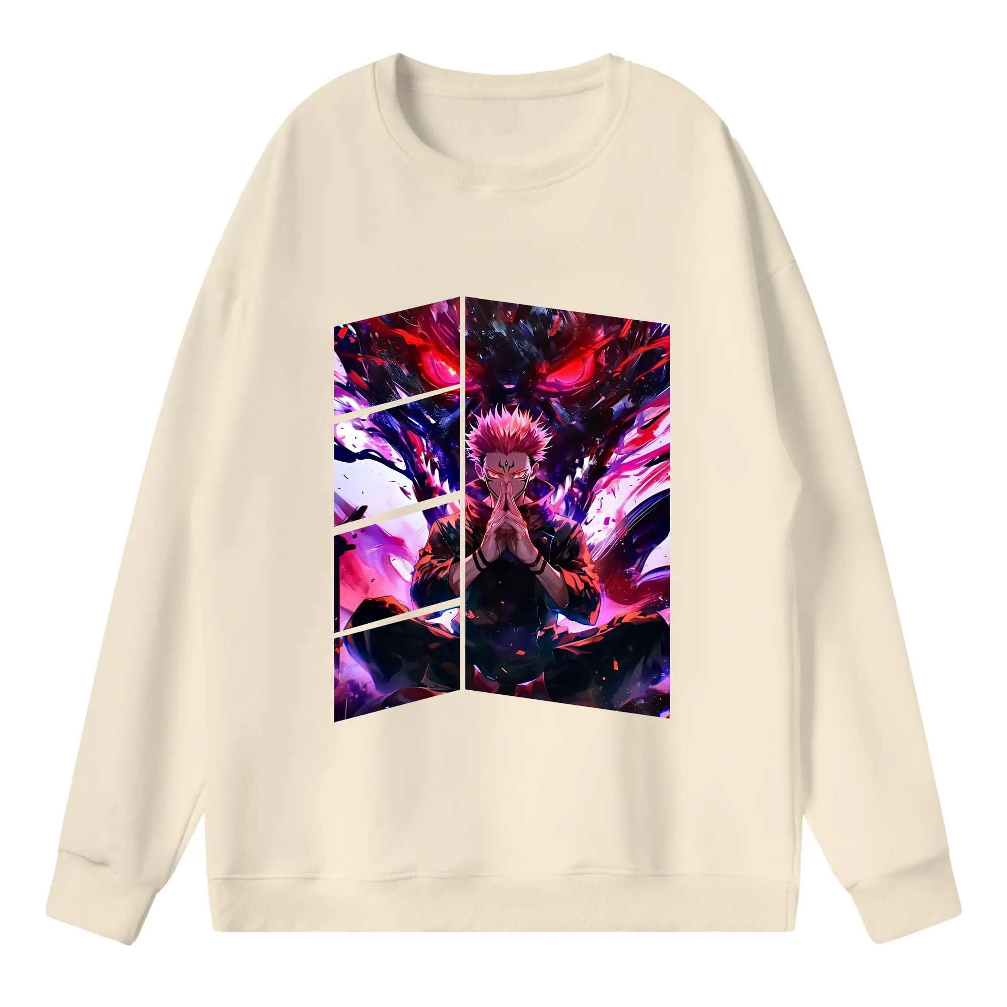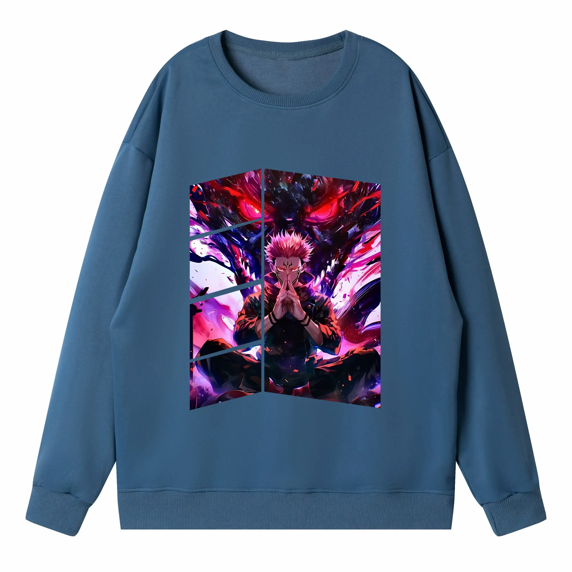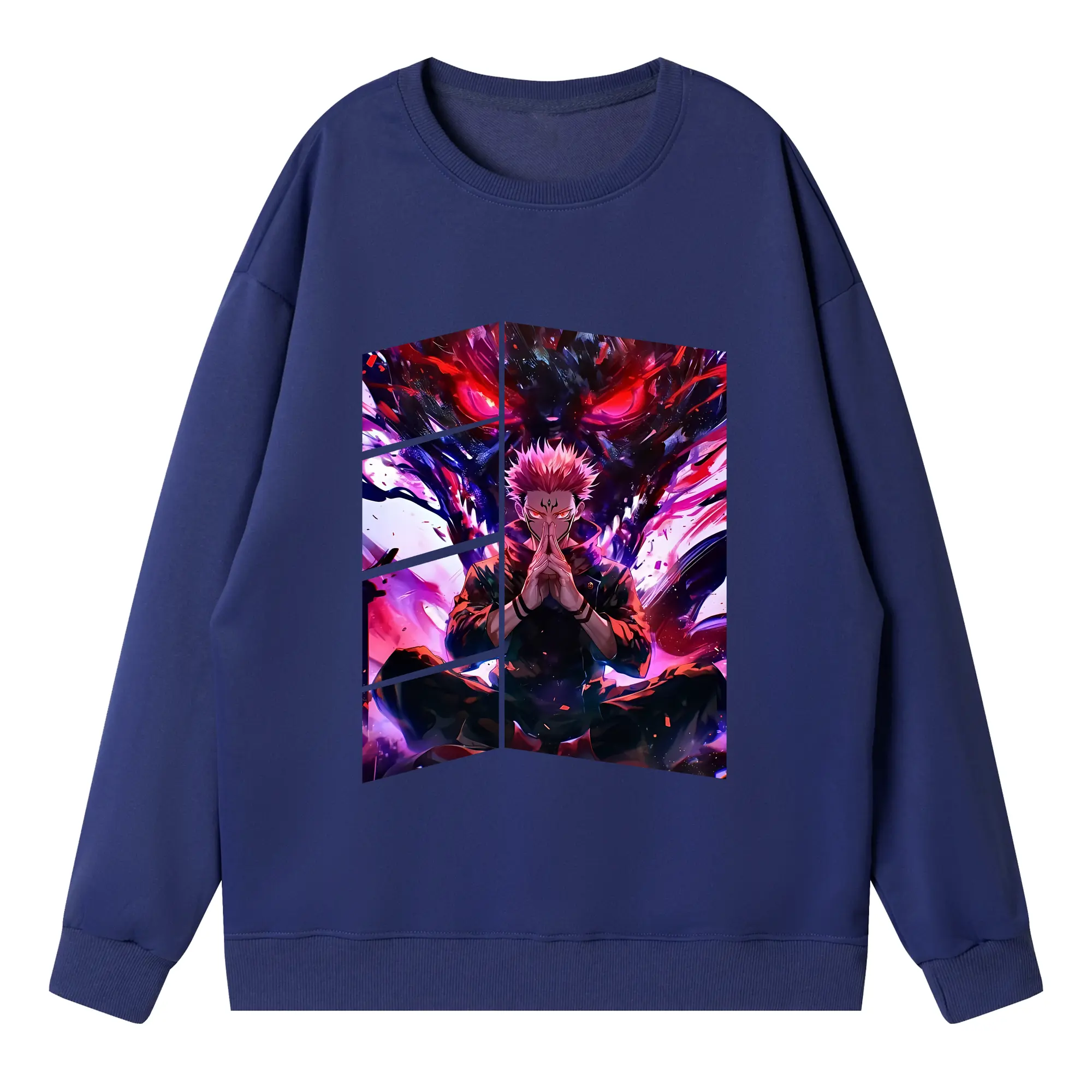 呪術廻戦 グッズ,両面宿儺 - 高品質 クルーネック スウェット ・ コットン59% ポリエステル41% ・ ユニセックス 長袖 トレーナー ・ カジュアル デイリー スポーツ 散歩用