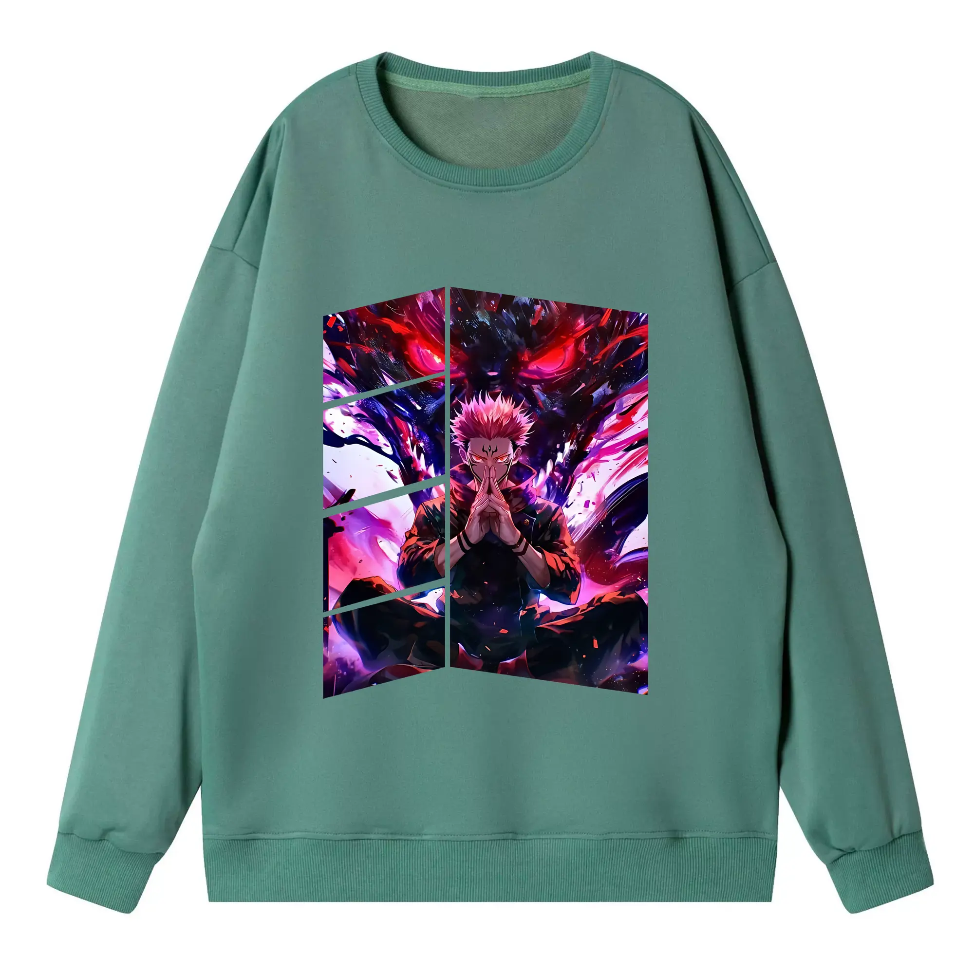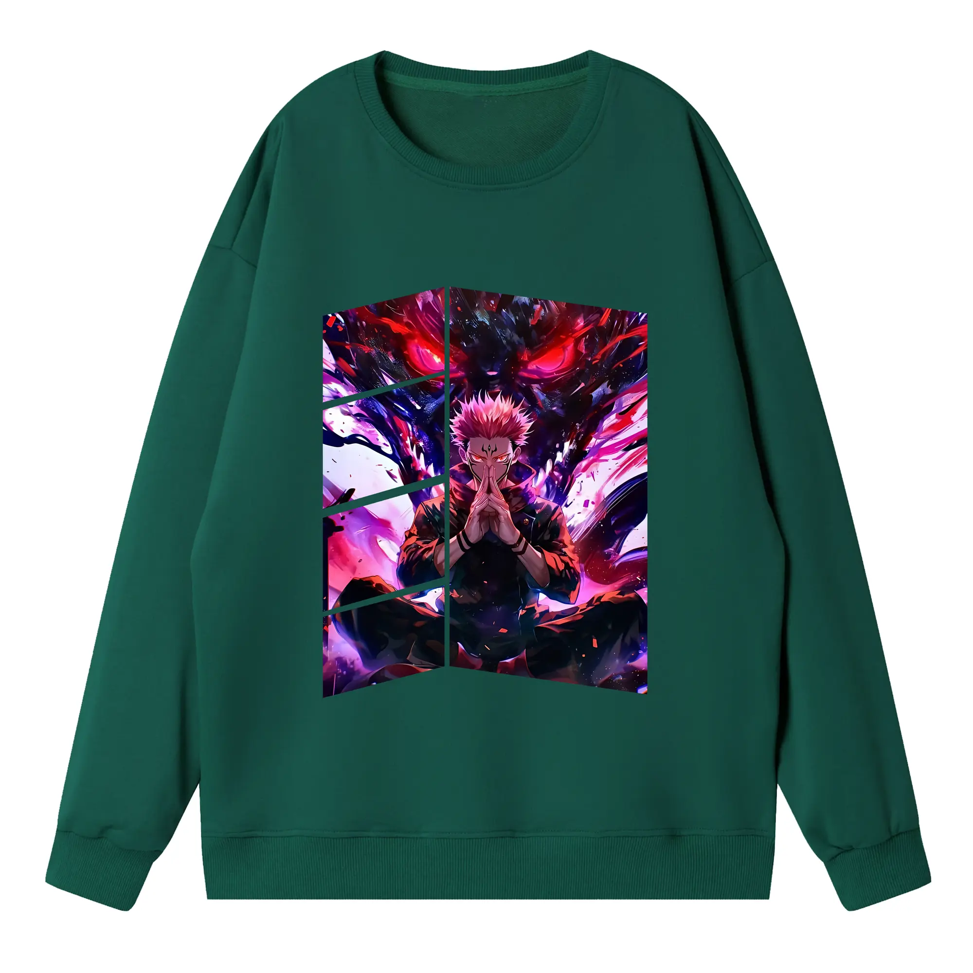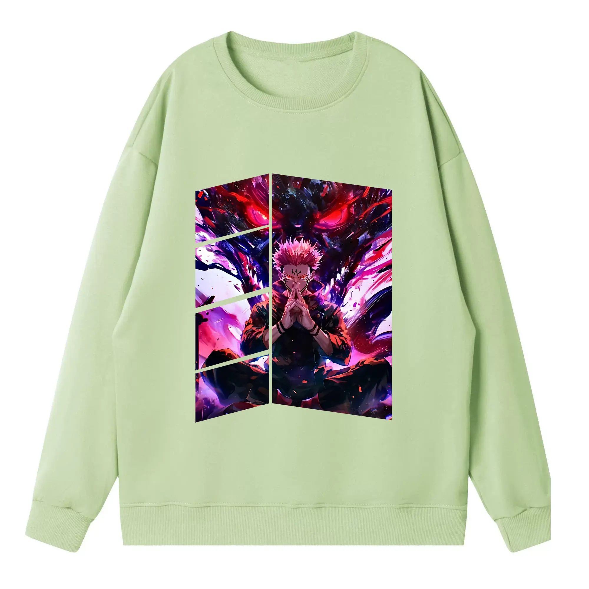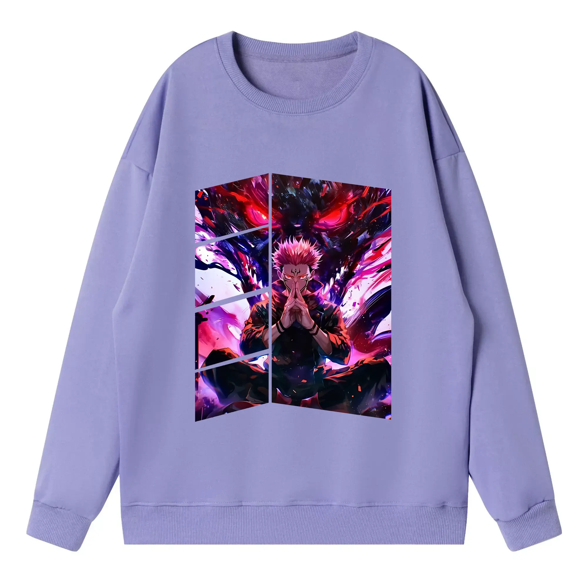 呪術廻戦 グッズ,両面宿儺 - 高品質 クルーネック スウェット ・ コットン59% ポリエステル41% ・ ユニセックス 長袖 トレーナー ・ カジュアル デイリー スポーツ 散歩用