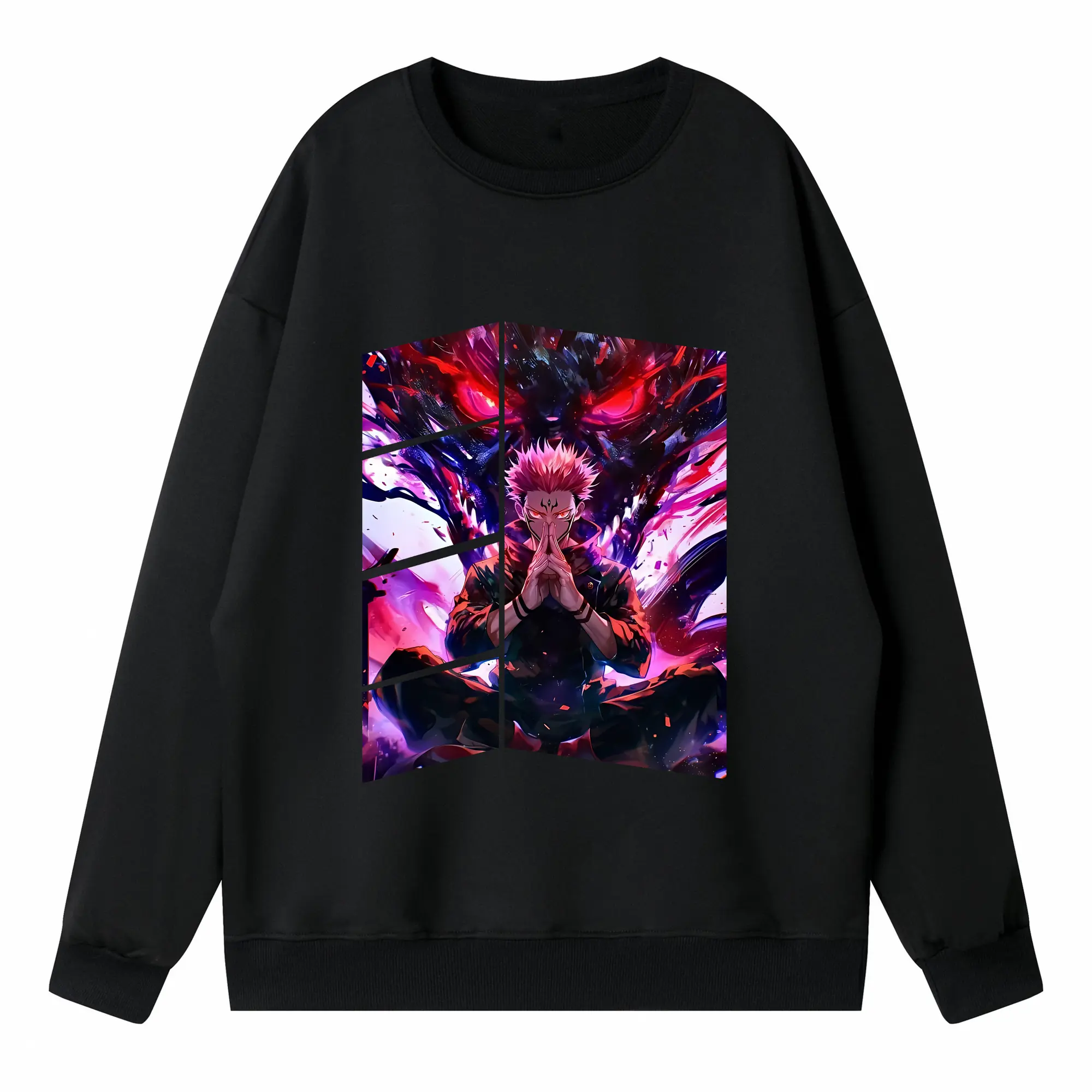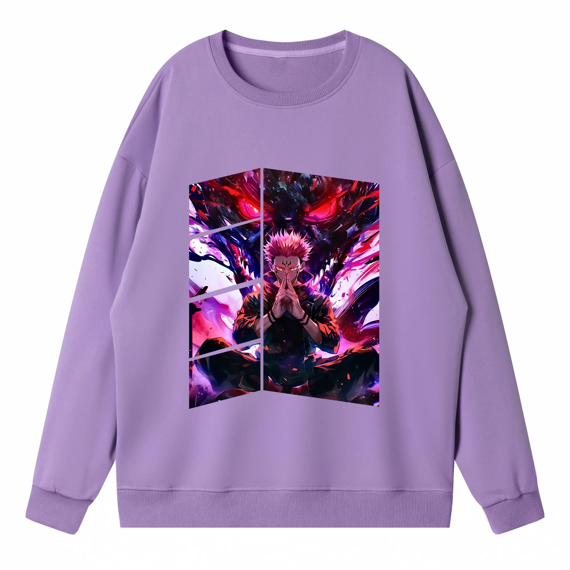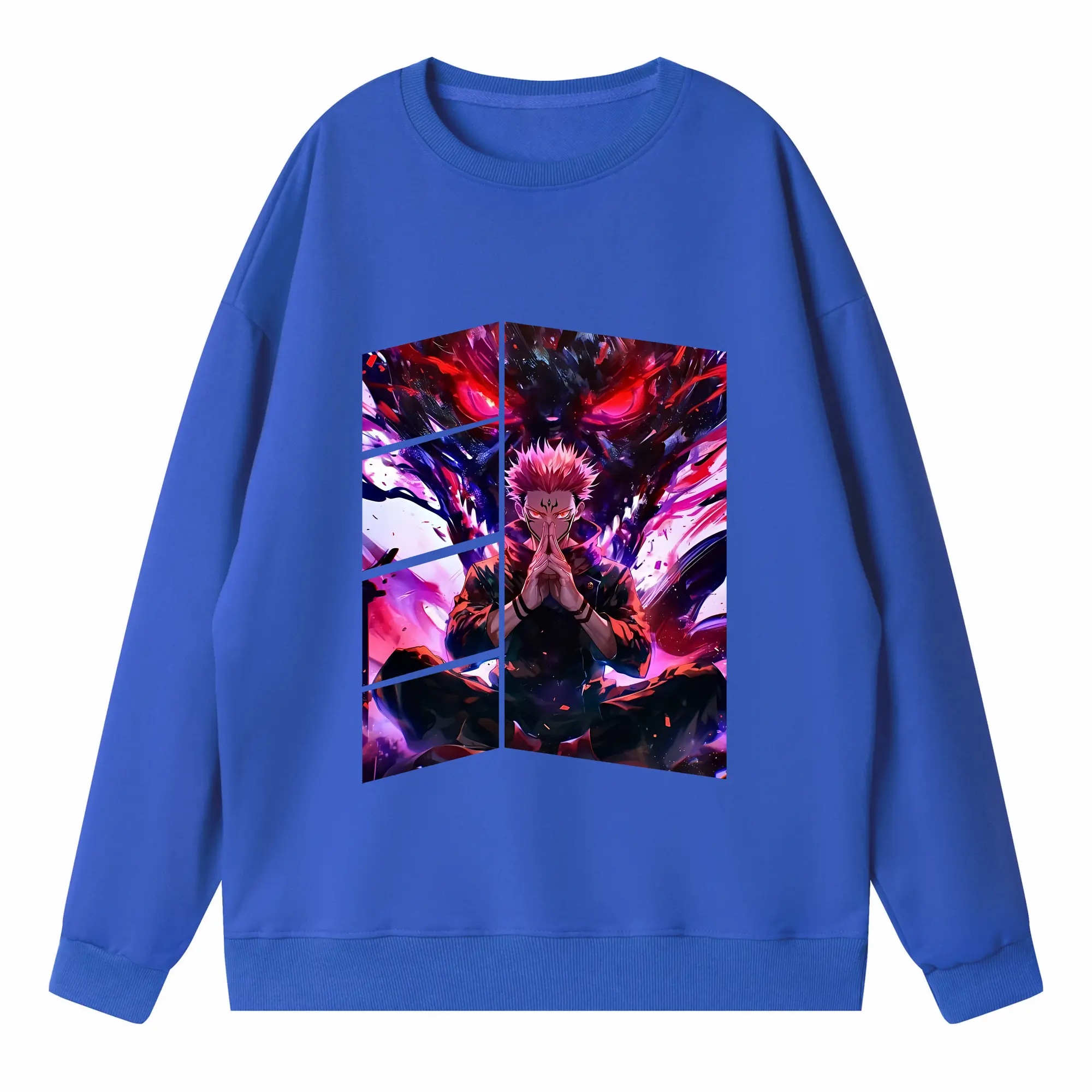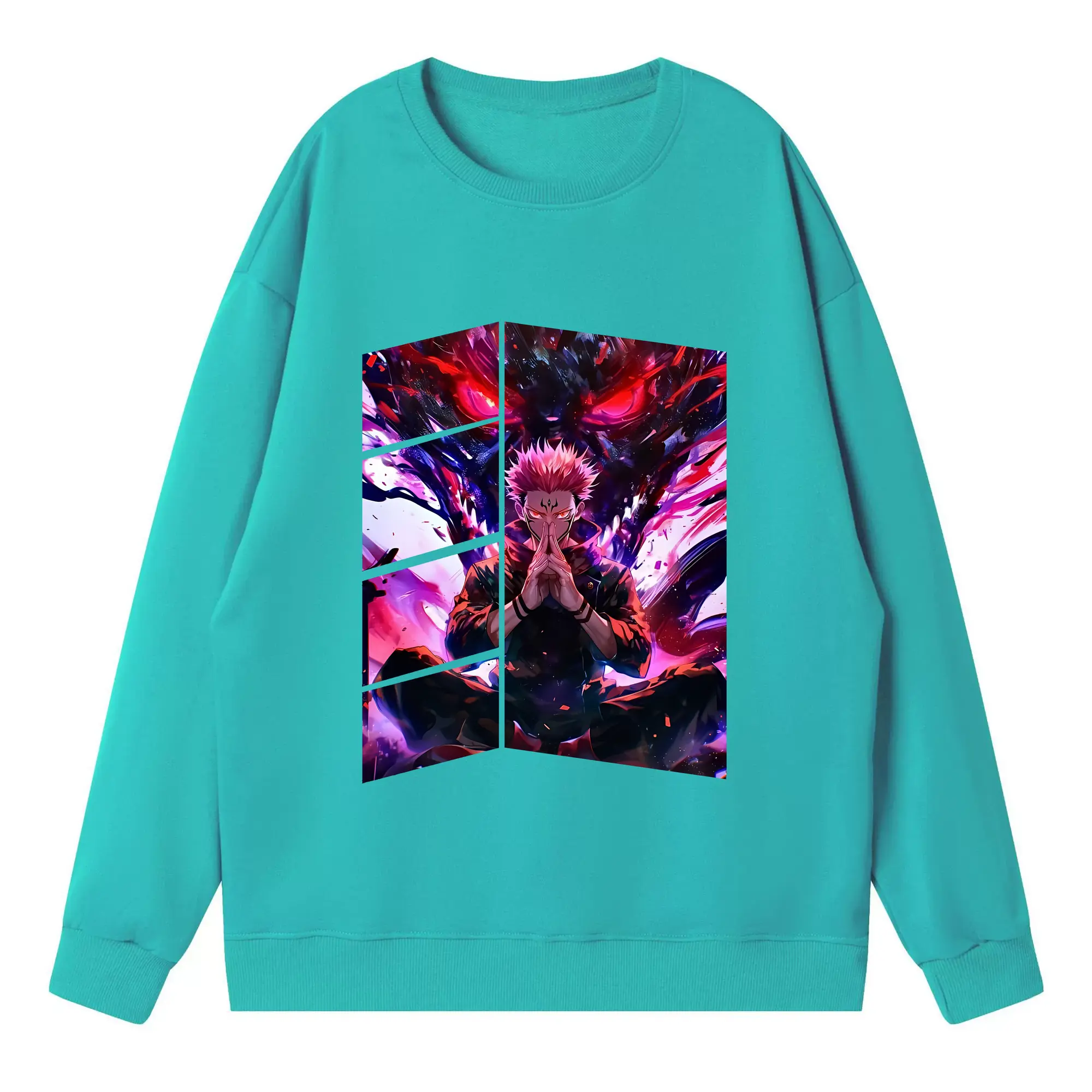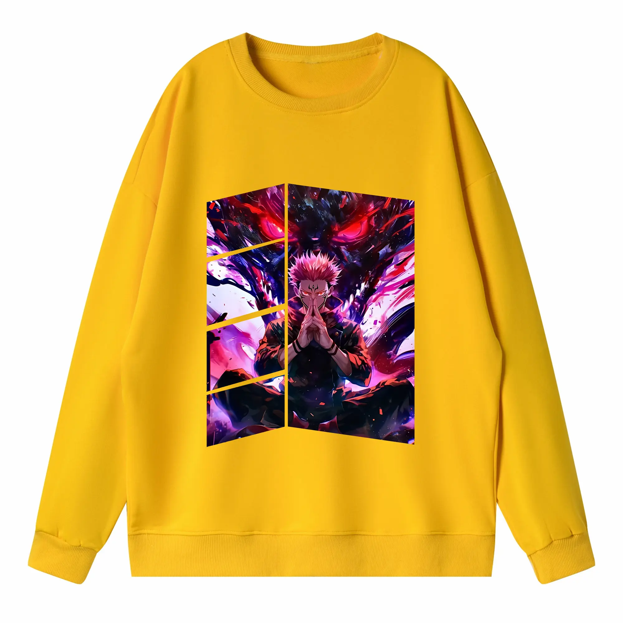 呪術廻戦 グッズ,両面宿儺 - 高品質 クルーネック スウェット ・ コットン59% ポリエステル41% ・ ユニセックス 長袖 トレーナー ・ カジュアル デイリー スポーツ 散歩用