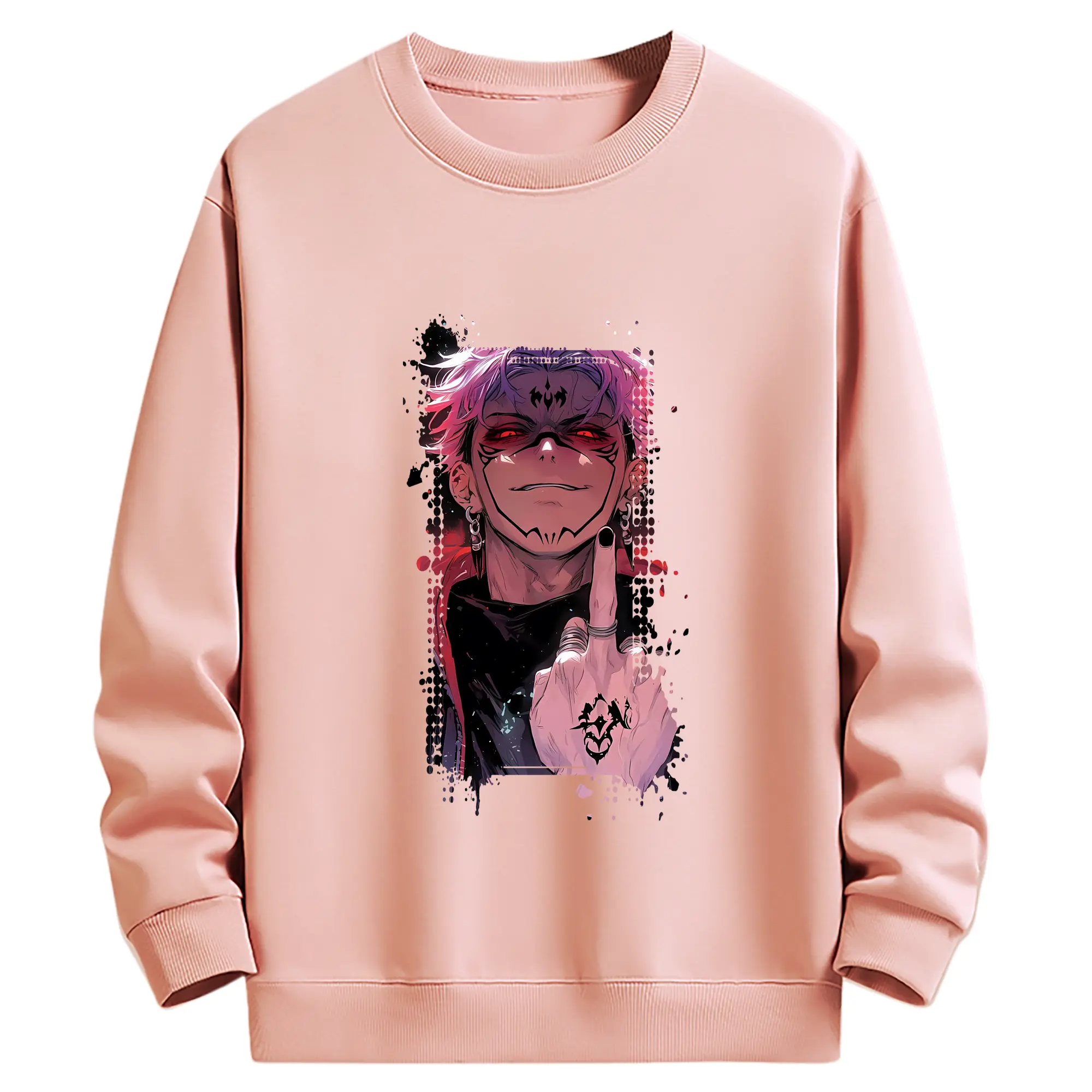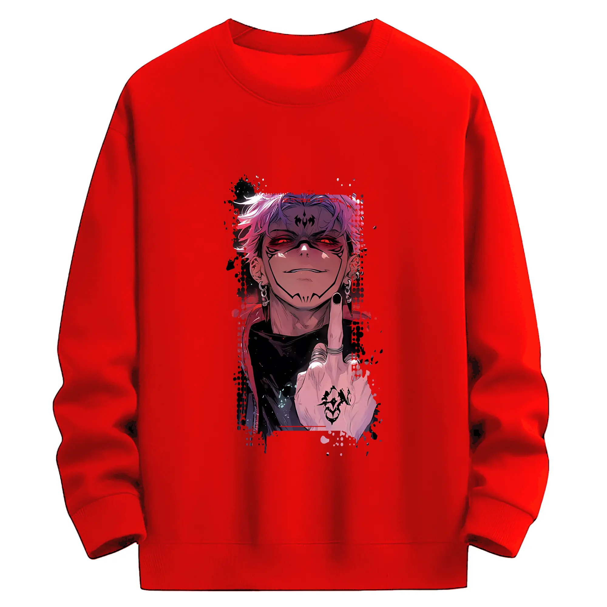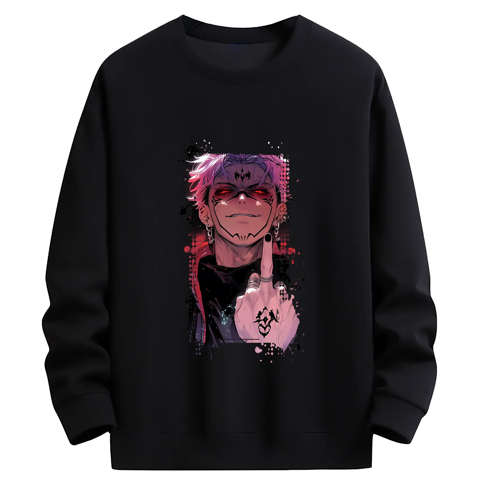 呪術廻戦 グッズ,両面宿儺 - 薄手 クルーネック スウェット 裏毛260g · ポリエステル 春秋向け カジュアル 男女兼用 · トレーナー デイリー スポーツ 散歩に最適
