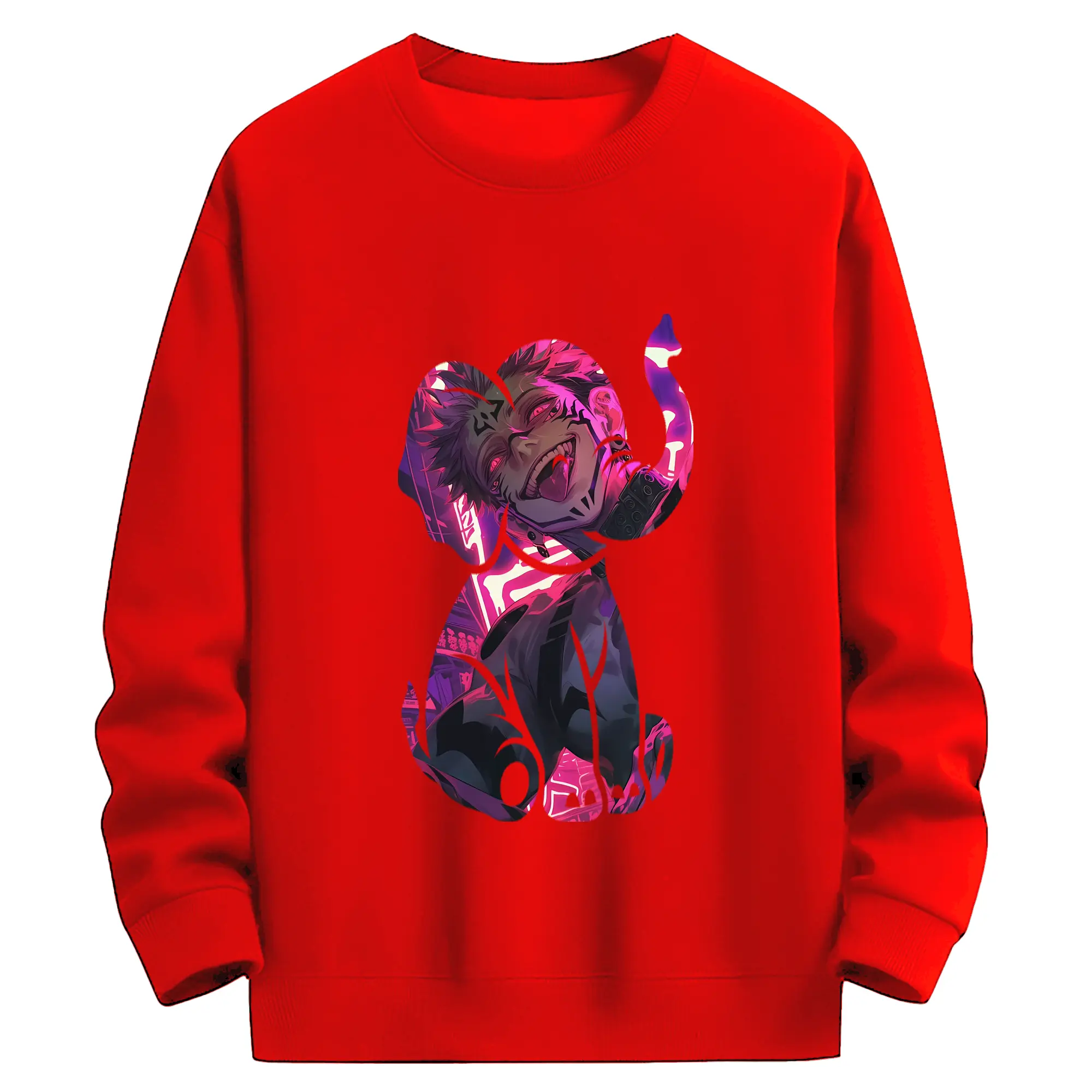 呪術廻戦 グッズ,両面宿儺 - 薄手 クルーネック スウェット 裏毛260g · ポリエステル 春秋向け カジュアル 男女兼用 · トレーナー デイリー スポーツ 散歩に最適