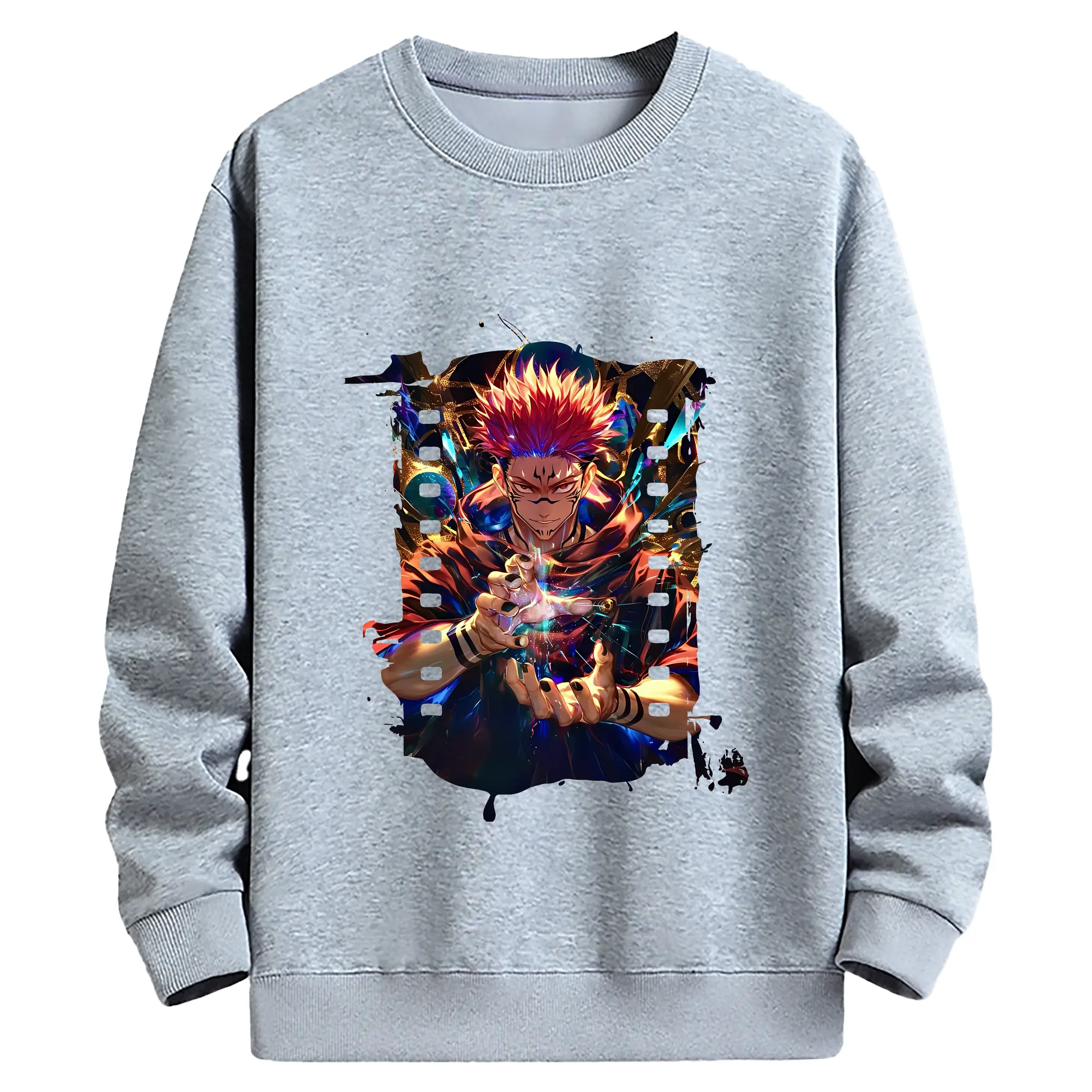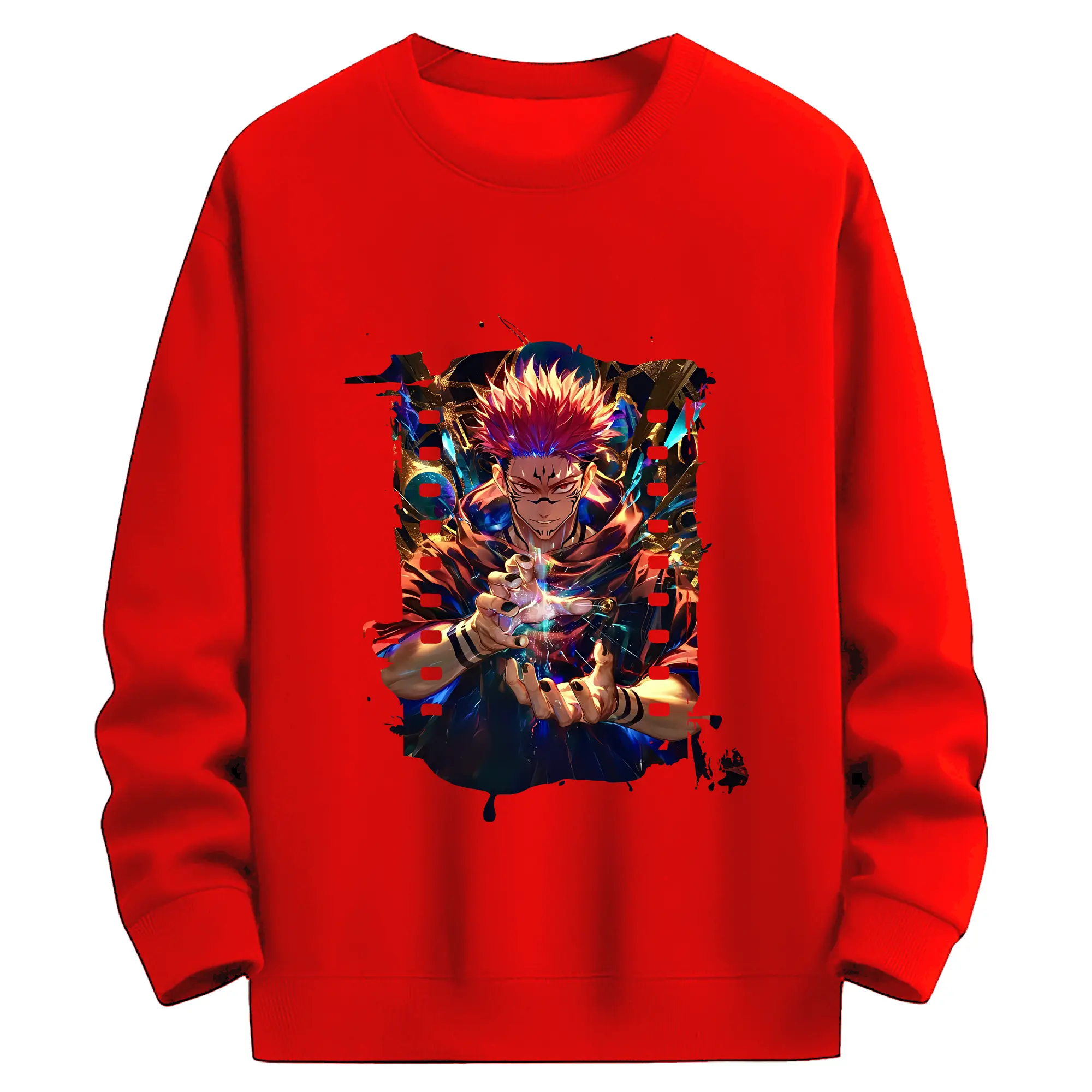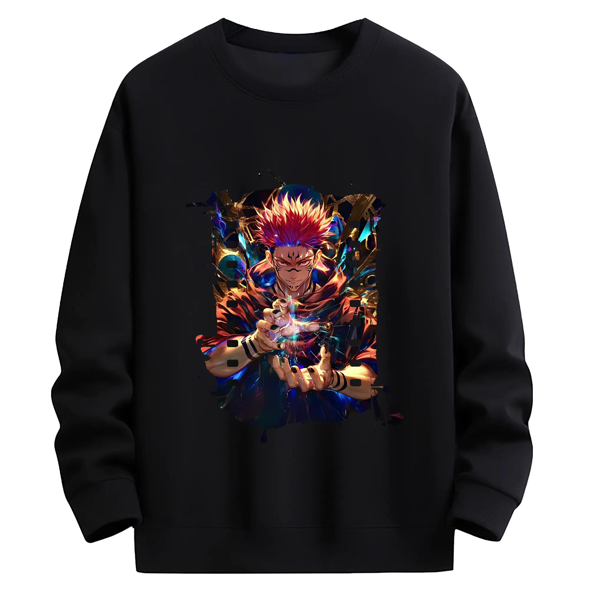 呪術廻戦 グッズ,両面宿儺 - 薄手 クルーネック スウェット 裏毛260g · ポリエステル 春秋向け カジュアル 男女兼用 · トレーナー デイリー スポーツ 散歩に最適