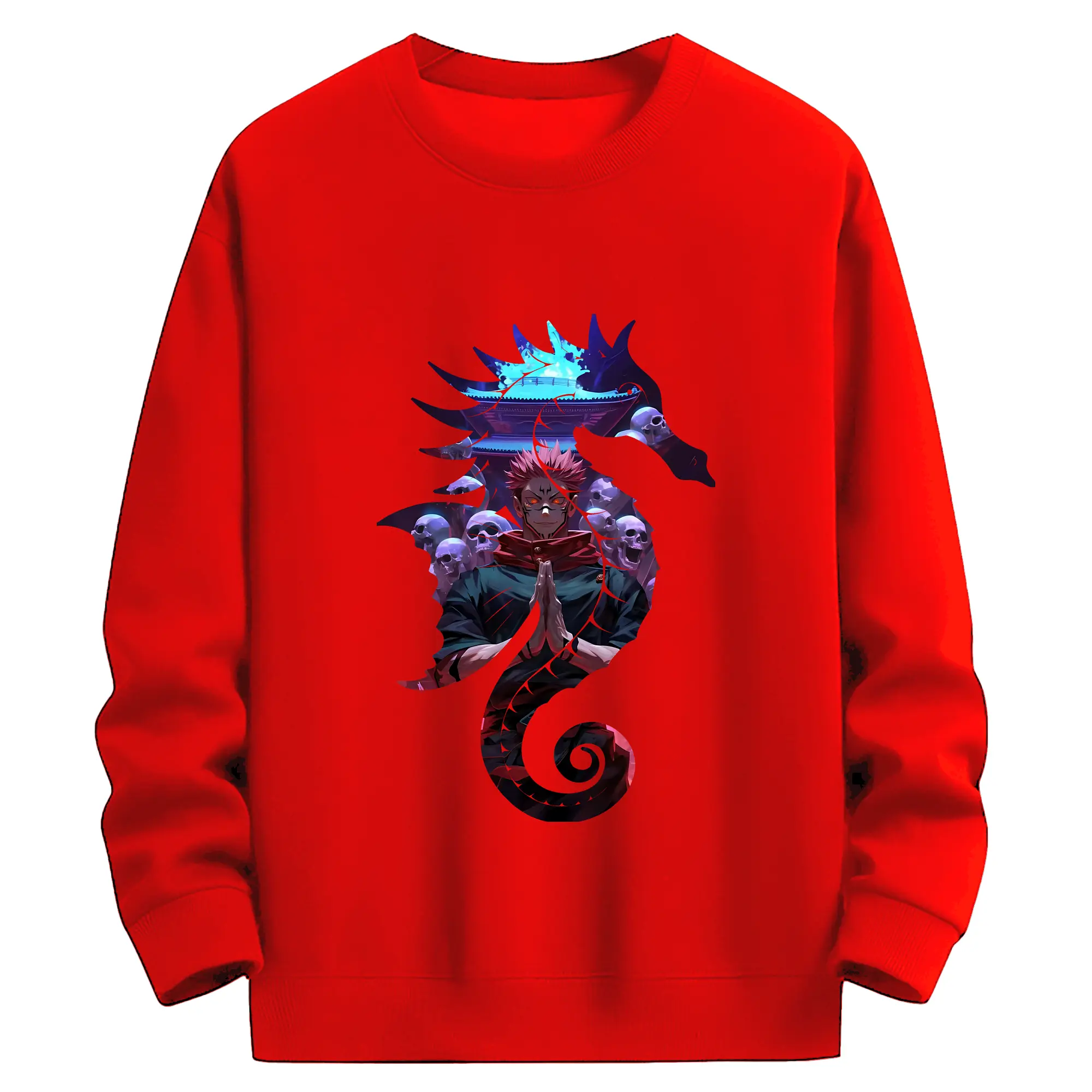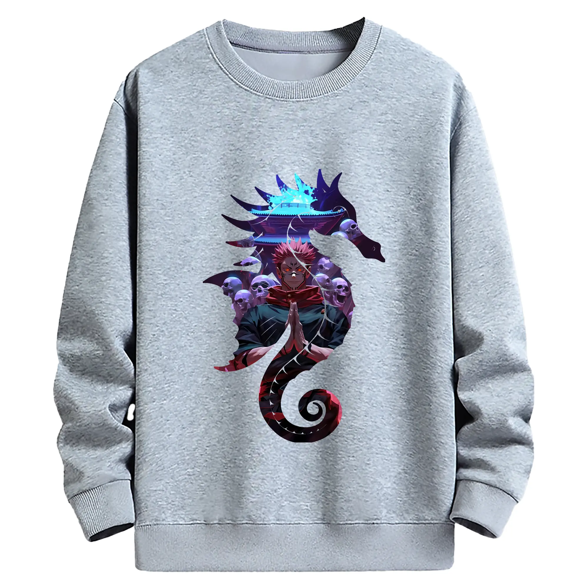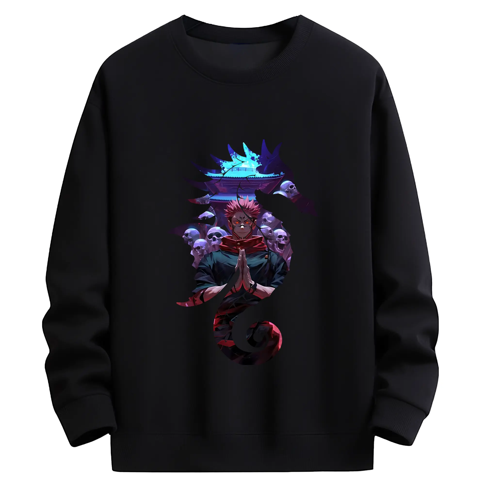 呪術廻戦 グッズ,両面宿儺 - 薄手 クルーネック スウェット 裏毛260g · ポリエステル 春秋向け カジュアル 男女兼用 · トレーナー デイリー スポーツ 散歩に最適