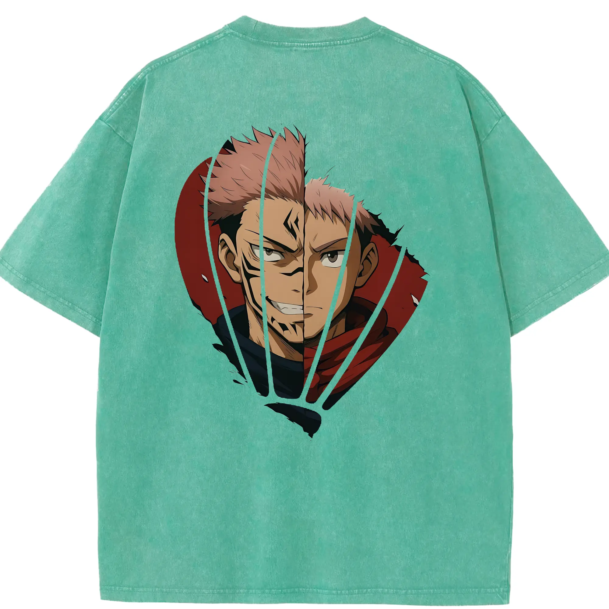 呪術廻戦 グッズ,両面宿儺 - 綿100% 半袖Tシャツ ・ フロントプリント ・ 快適 通気性 ・ 日常使い 散歩 スポーツ用