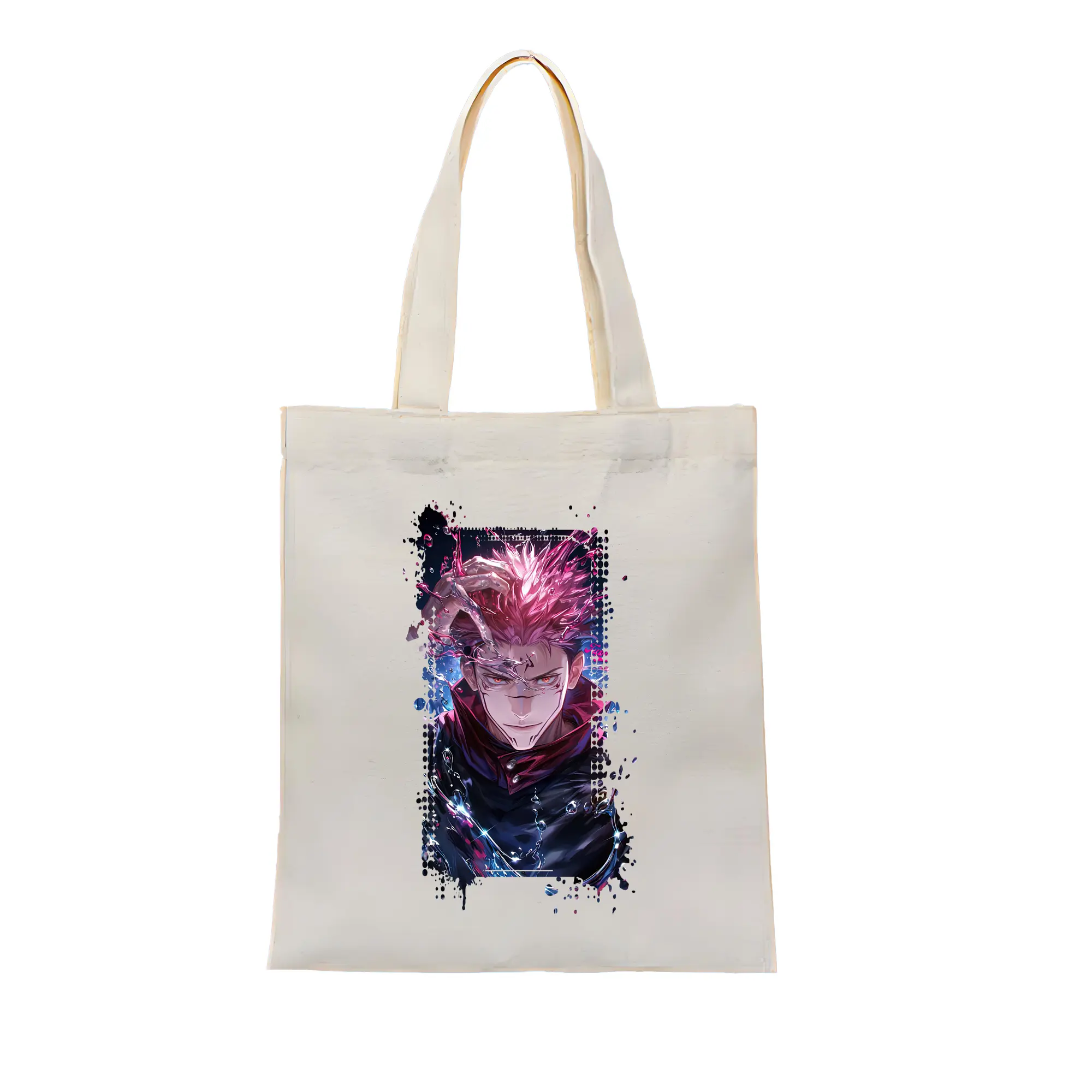 呪術廻戦 グッズ,両面宿儺 - 縦型キャンバス手提げバッグ(トートバッグ) ・ キャンバス素材 ・ ショッピング用 ・ 軽量 丈夫 お手入れ簡単