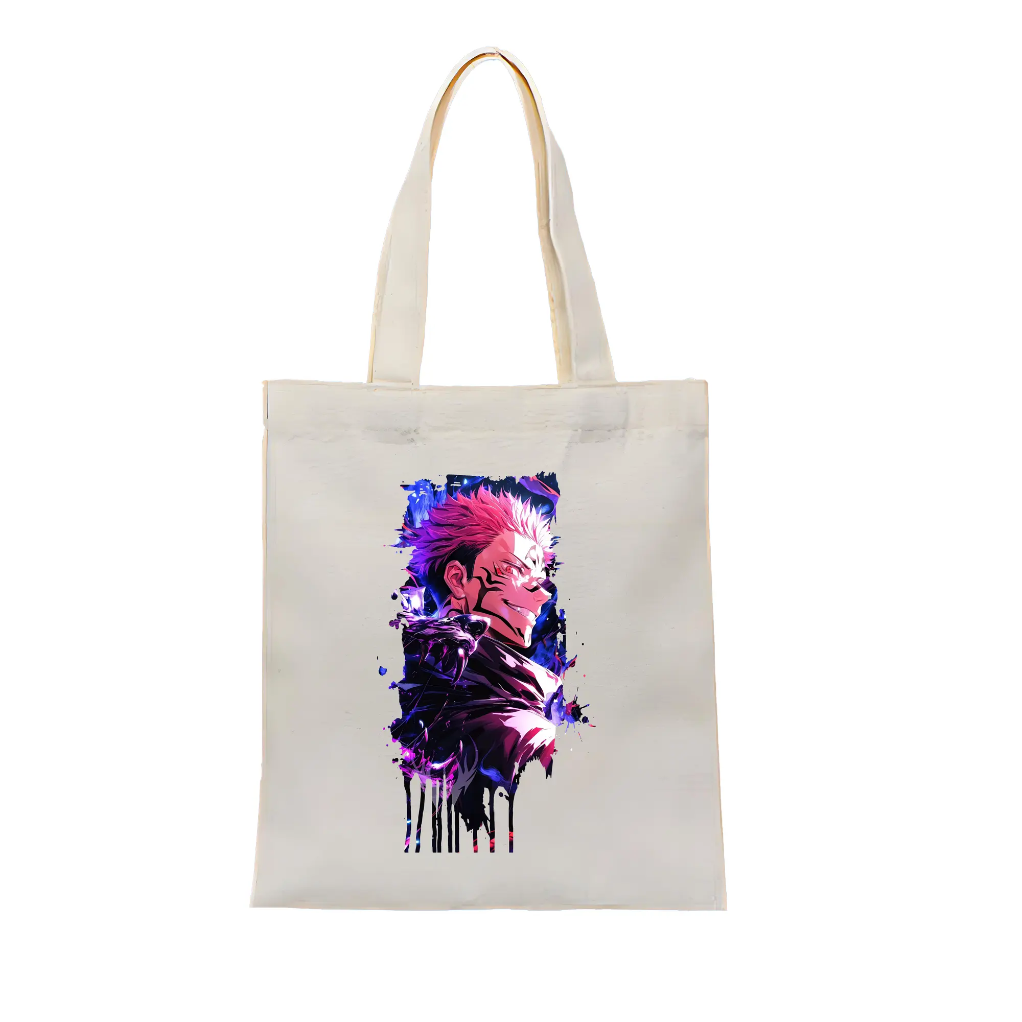 呪術廻戦 グッズ,両面宿儺 - 縦型キャンバス手提げバッグ(トートバッグ) ・ キャンバス素材 ・ ショッピング用 ・ 軽量 丈夫 お手入れ簡単