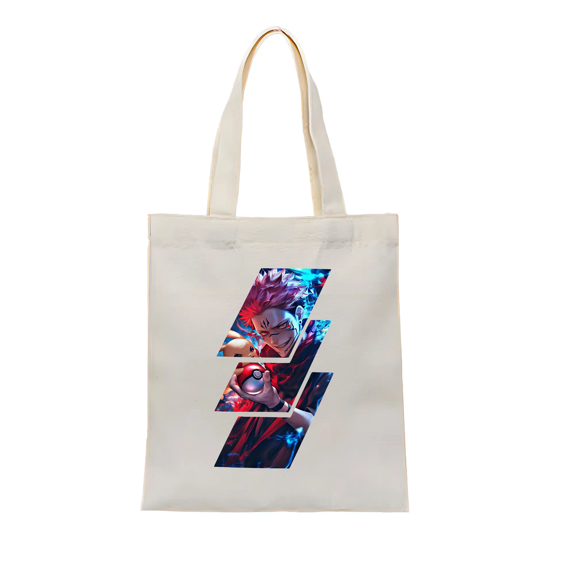 呪術廻戦 グッズ,両面宿儺 - 縦型キャンバス手提げバッグ(トートバッグ) ・ キャンバス素材 ・ ショッピング用 ・ 軽量 丈夫 お手入れ簡単
