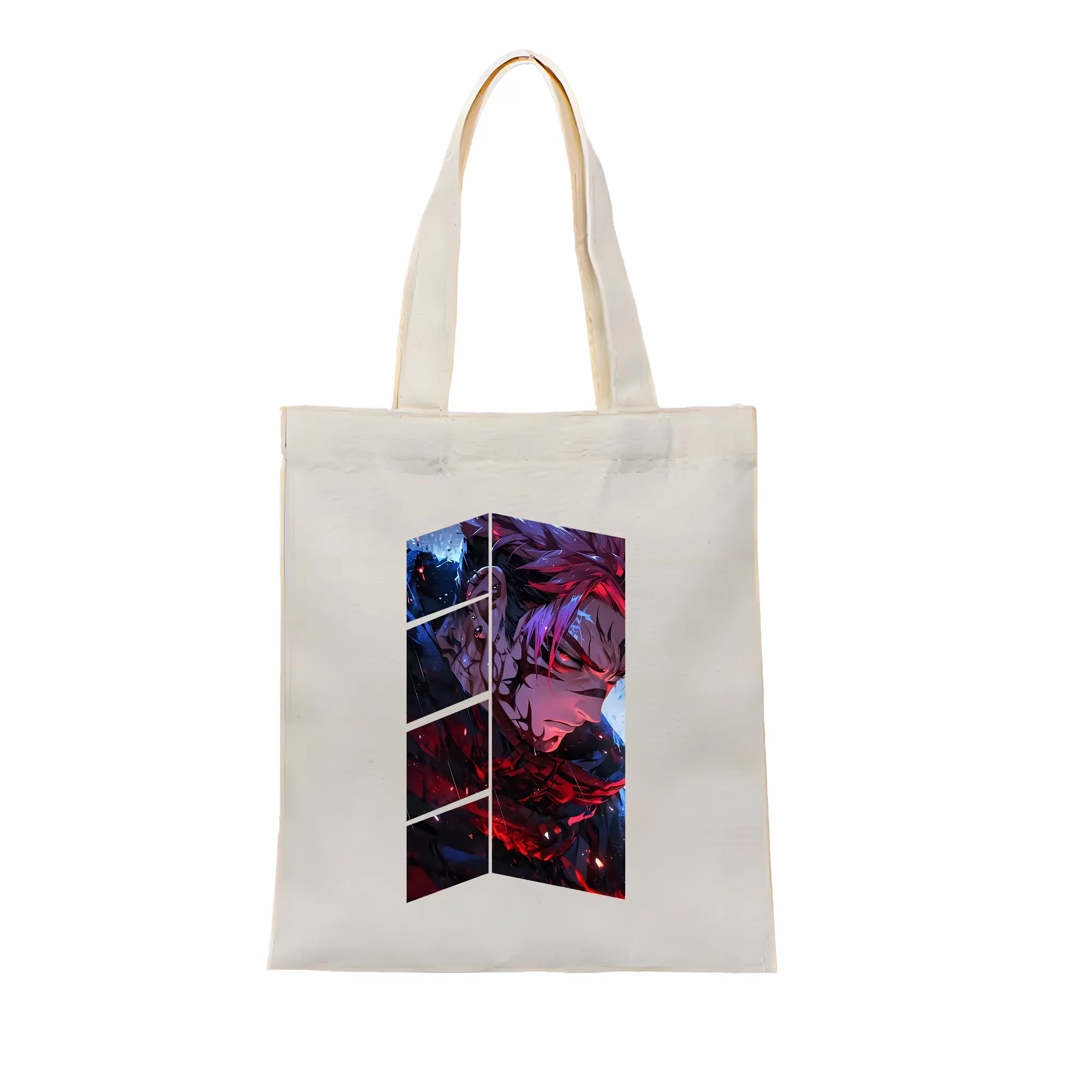 呪術廻戦 グッズ,両面宿儺 - 縦型キャンバス手提げバッグ(トートバッグ) ・ キャンバス素材 ・ ショッピング用 ・ 軽量 丈夫 お手入れ簡単