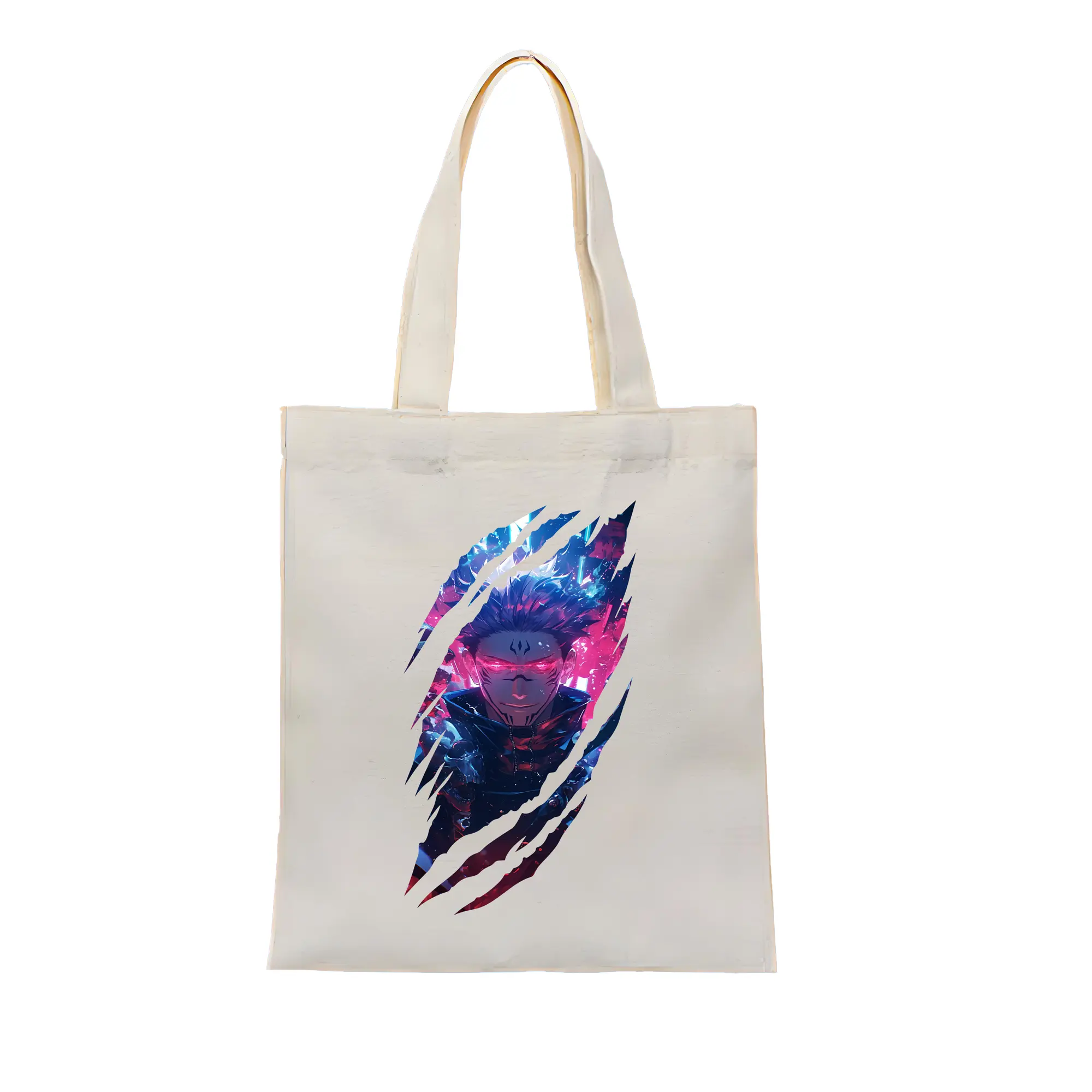 呪術廻戦 グッズ,両面宿儺 - 縦型キャンバス手提げバッグ(トートバッグ) ・ キャンバス素材 ・ ショッピング用 ・ 軽量 丈夫 お手入れ簡単