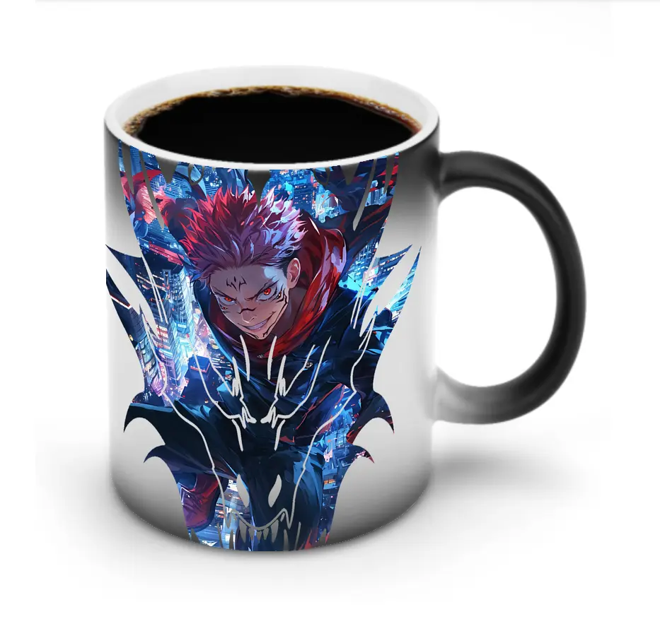 呪術廻戦 グッズ,両面宿儺 - 変色マグカップ ・ セラミック ・ 熱転写プリント ・ 耐久性 高品質 ・ ギフト・自宅用 コーヒー お茶