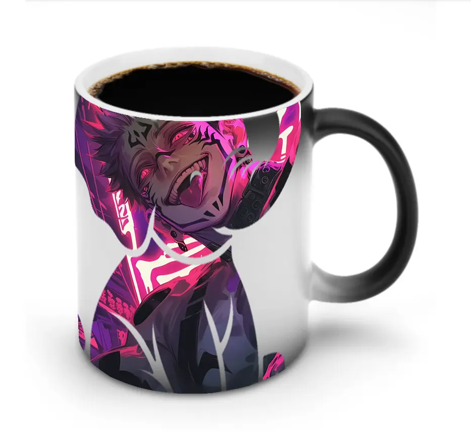 呪術廻戦 グッズ,両面宿儺 - 変色マグカップ ・ セラミック ・ 熱転写プリント ・ 耐久性 高品質 ・ ギフト・自宅用 コーヒー お茶