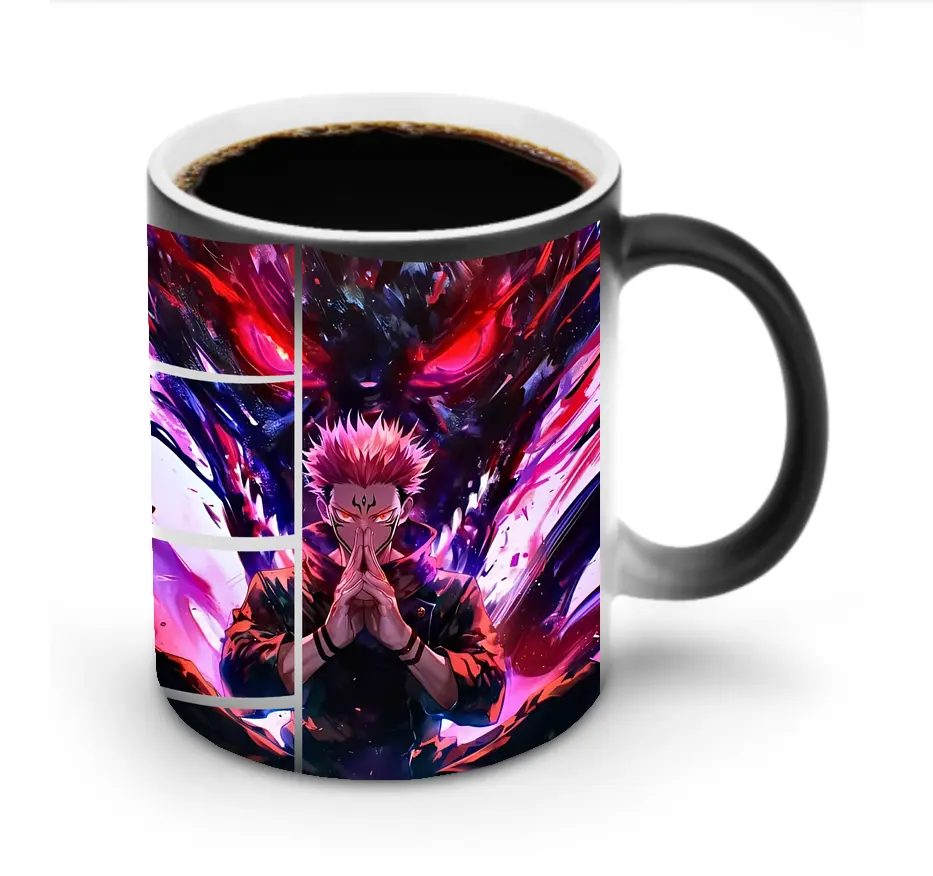 呪術廻戦 グッズ,両面宿儺 - 変色マグカップ ・ セラミック ・ 熱転写プリント ・ 耐久性 高品質 ・ ギフト・自宅用 コーヒー お茶