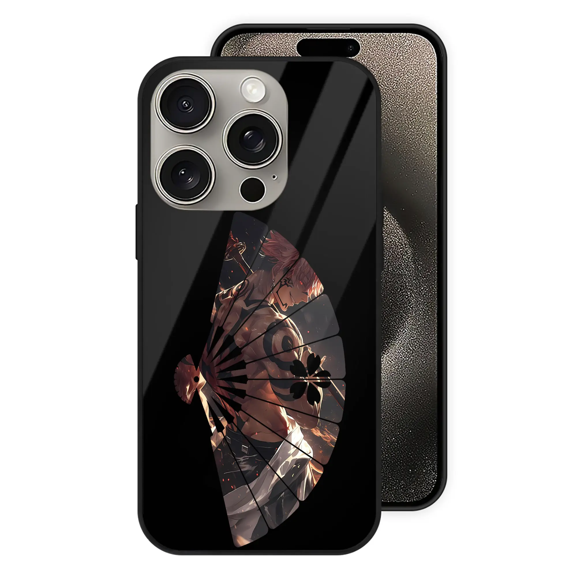 呪術廻戦 グッズ,両面宿儺 - IPhone15Pro対応 ・ スマホケース ・ 背面ガラス ・ TPU+強化ガラス ・ 耐衝撃 ・ 黄変防止 ・ ワイヤレス充電対応 ・ 3D立体ボタン