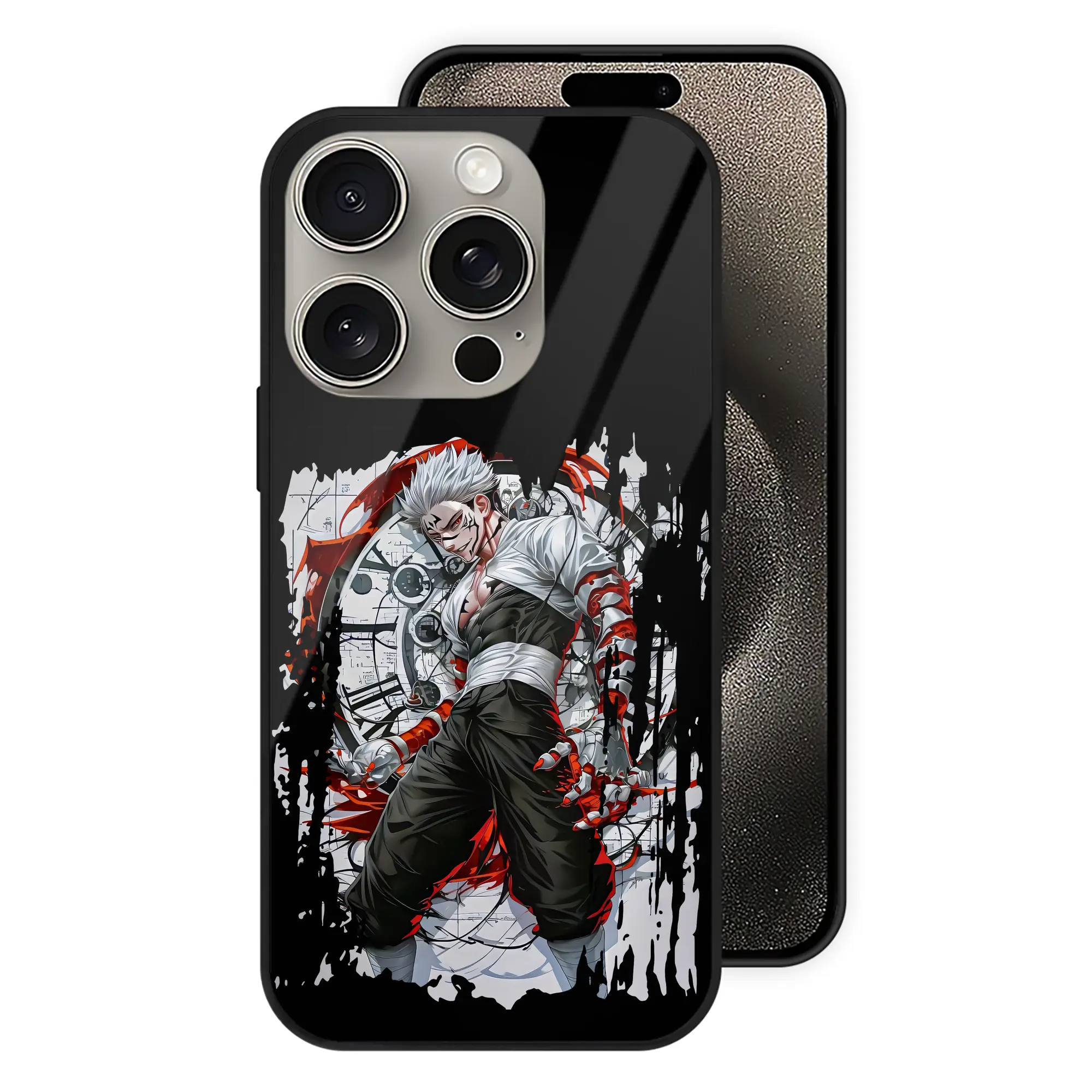 呪術廻戦 グッズ,両面宿儺 - IPhone15Pro対応 ・ スマホケース ・ 背面ガラス ・ TPU+強化ガラス ・ 耐衝撃 ・ 黄変防止 ・ ワイヤレス充電対応 ・ 3D立体ボタン
