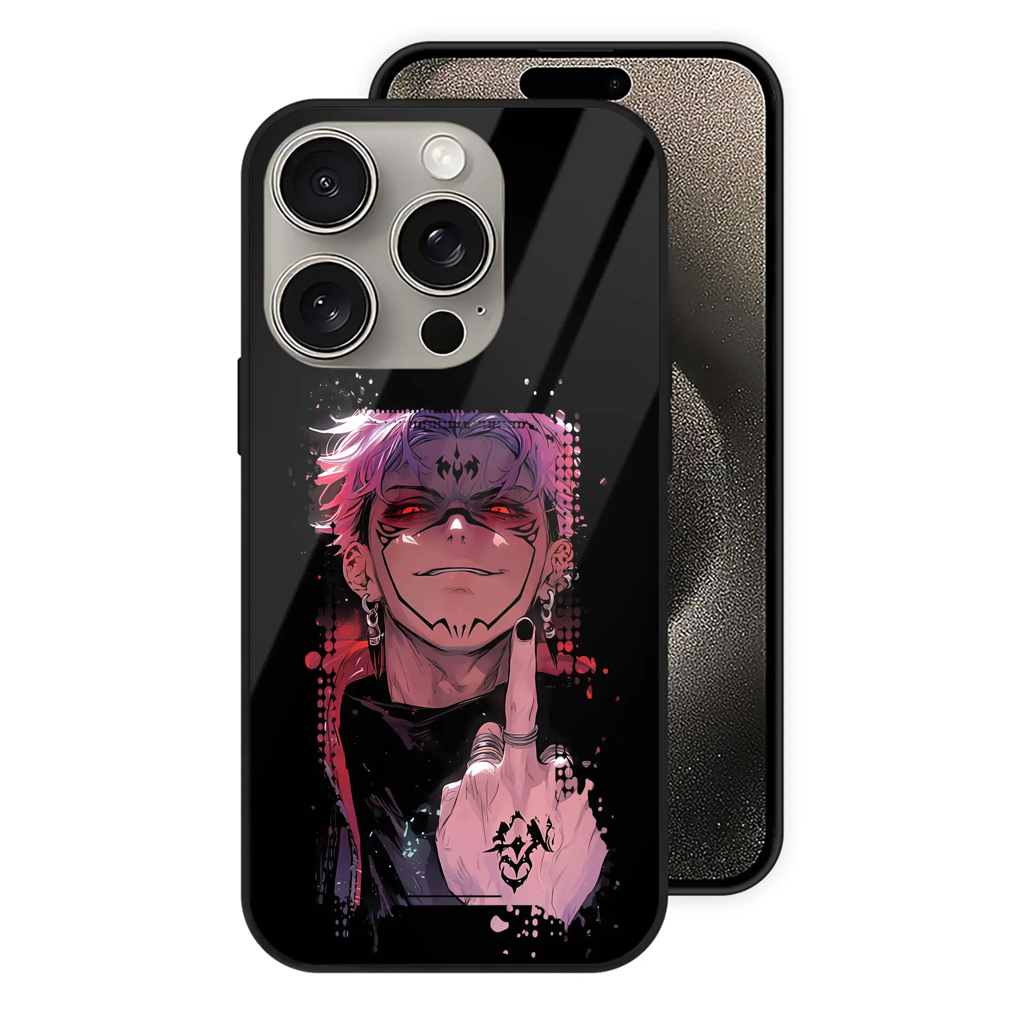 呪術廻戦 グッズ,両面宿儺 - IPhone15Pro対応 ・ スマホケース ・ 背面ガラス ・ TPU+強化ガラス ・ 耐衝撃 ・ 黄変防止 ・ ワイヤレス充電対応 ・ 3D立体ボタン