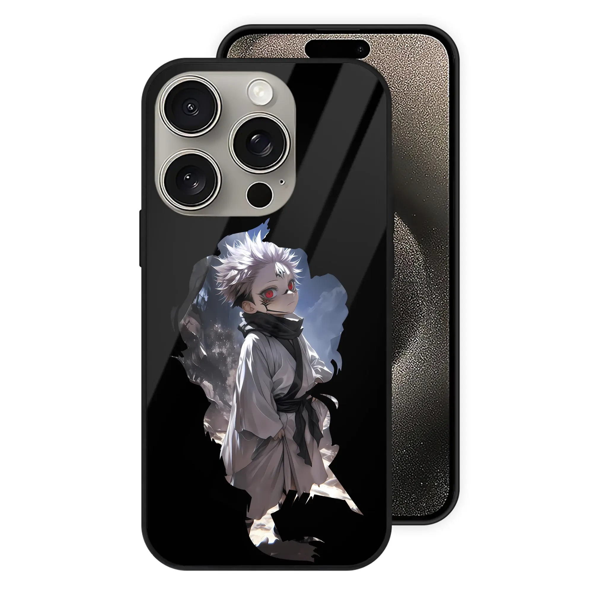 呪術廻戦 グッズ,両面宿儺 - IPhone15Pro対応 ・ スマホケース ・ 背面ガラス ・ TPU+強化ガラス ・ 耐衝撃 ・ 黄変防止 ・ ワイヤレス充電対応 ・ 3D立体ボタン