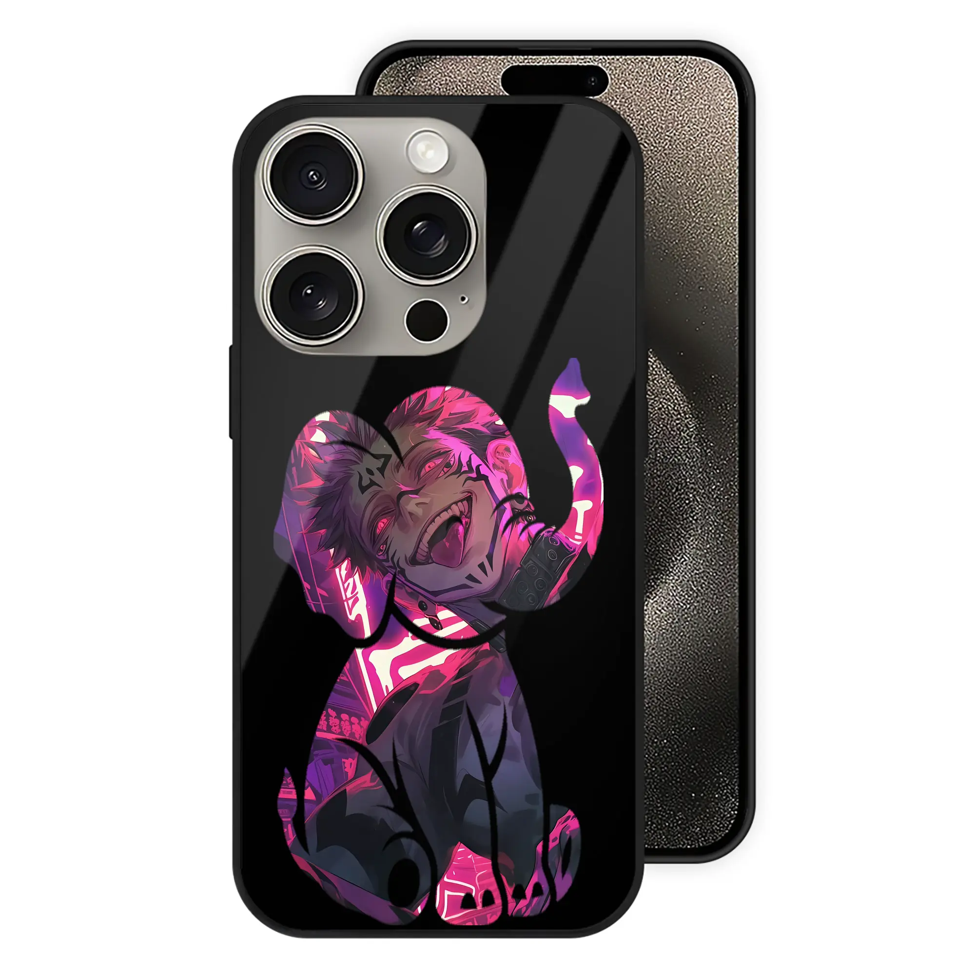 呪術廻戦 グッズ,両面宿儺 - IPhone15Pro対応 ・ スマホケース ・ 背面ガラス ・ TPU+強化ガラス ・ 耐衝撃 ・ 黄変防止 ・ ワイヤレス充電対応 ・ 3D立体ボタン