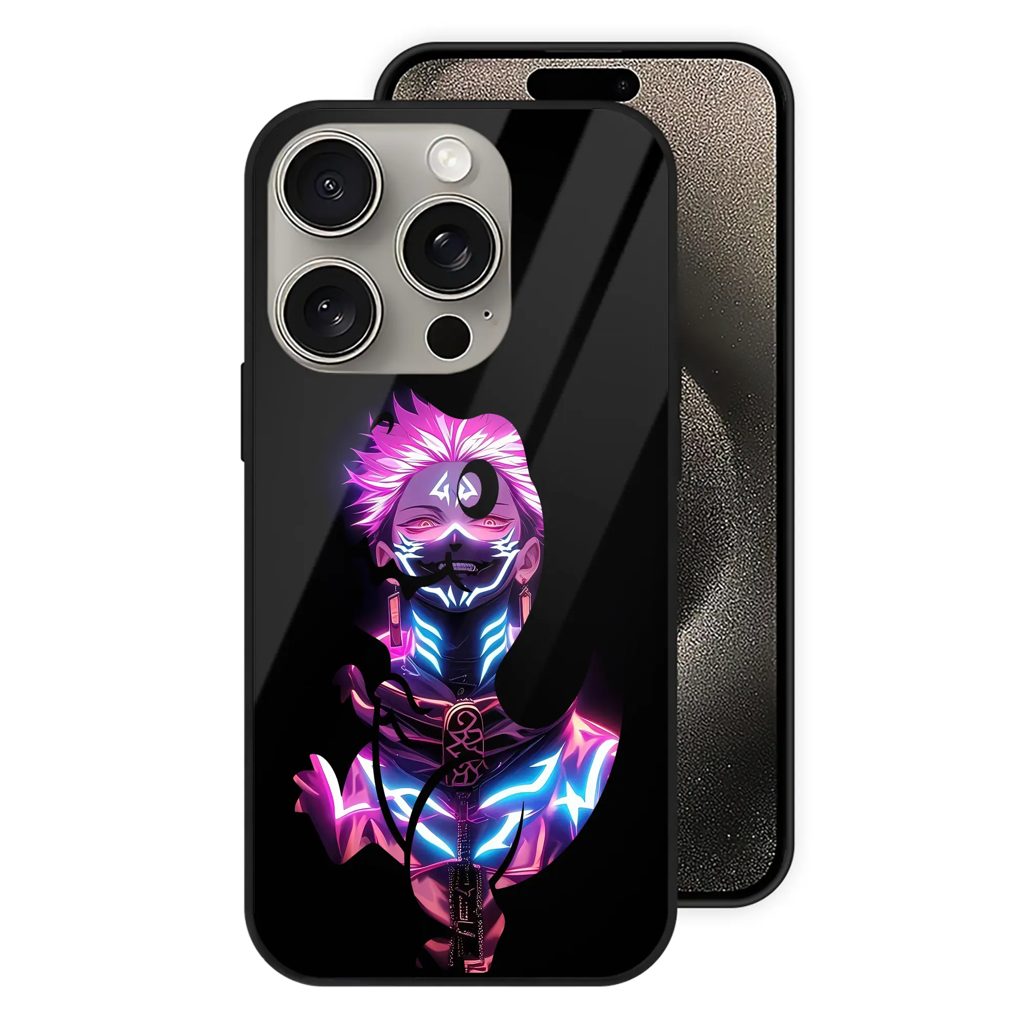 呪術廻戦 グッズ,両面宿儺 - IPhone15Pro対応 ・ スマホケース ・ 背面ガラス ・ TPU+強化ガラス ・ 耐衝撃 ・ 黄変防止 ・ ワイヤレス充電対応 ・ 3D立体ボタン