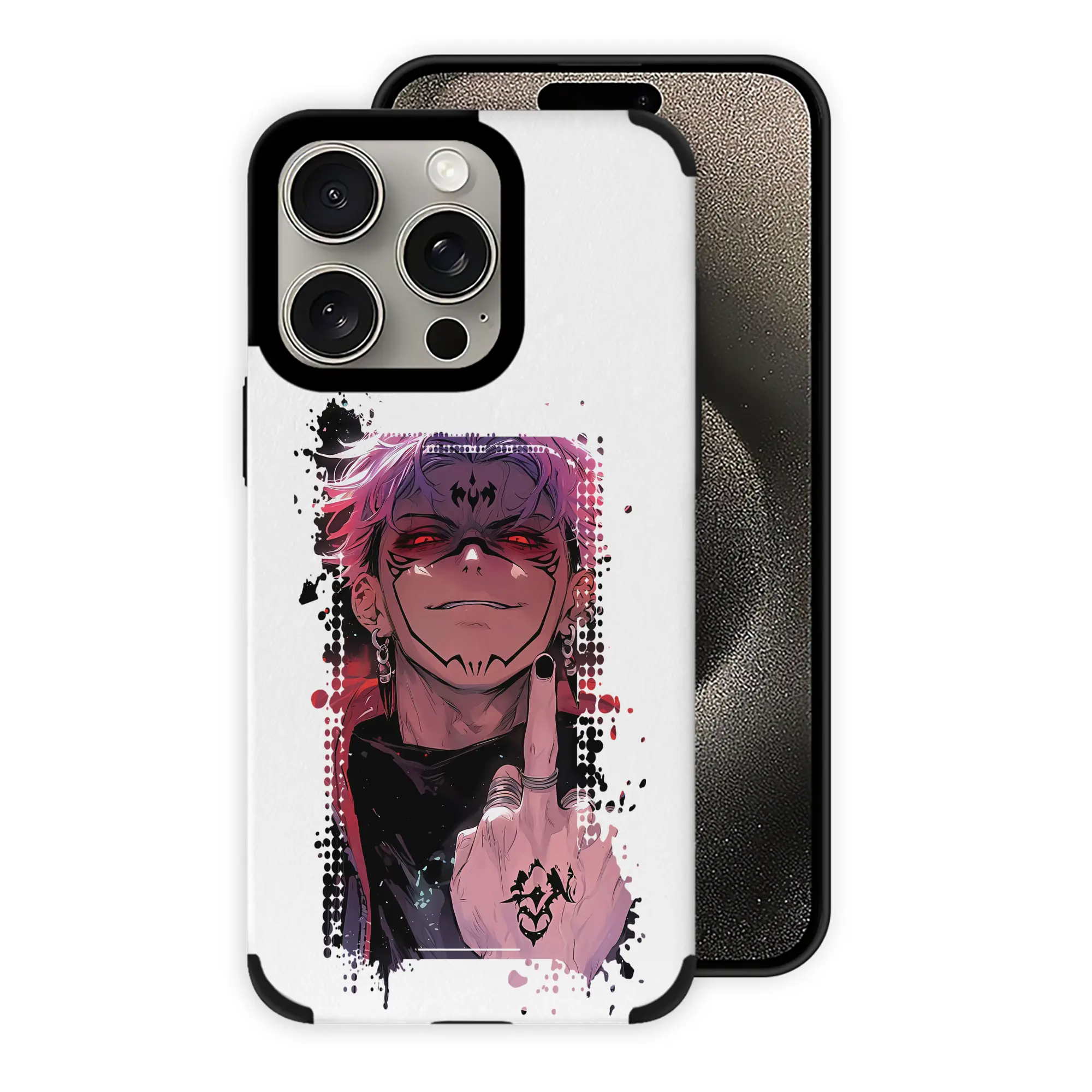 呪術廻戦 グッズ,両面宿儺 - IPhone15ProMax対応 ・ PUレザースマホケース ・ 耐衝撃 ・ 黄変防止 ・ 360度全面保護 ・ 柔らか手触り ・ 3D立体ボタン