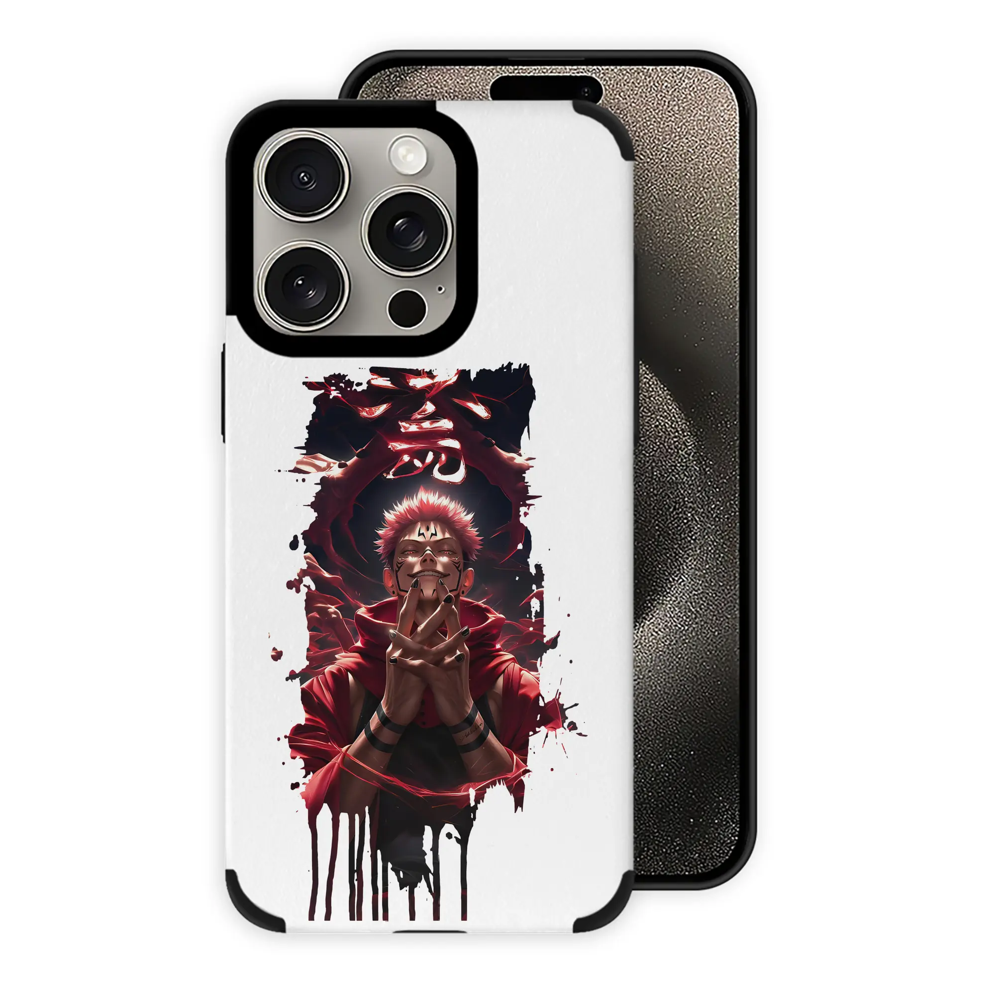 呪術廻戦 グッズ,両面宿儺 - IPhone15ProMax対応 ・ PUレザースマホケース ・ 耐衝撃 ・ 黄変防止 ・ 360度全面保護 ・ 柔らか手触り ・ 3D立体ボタン