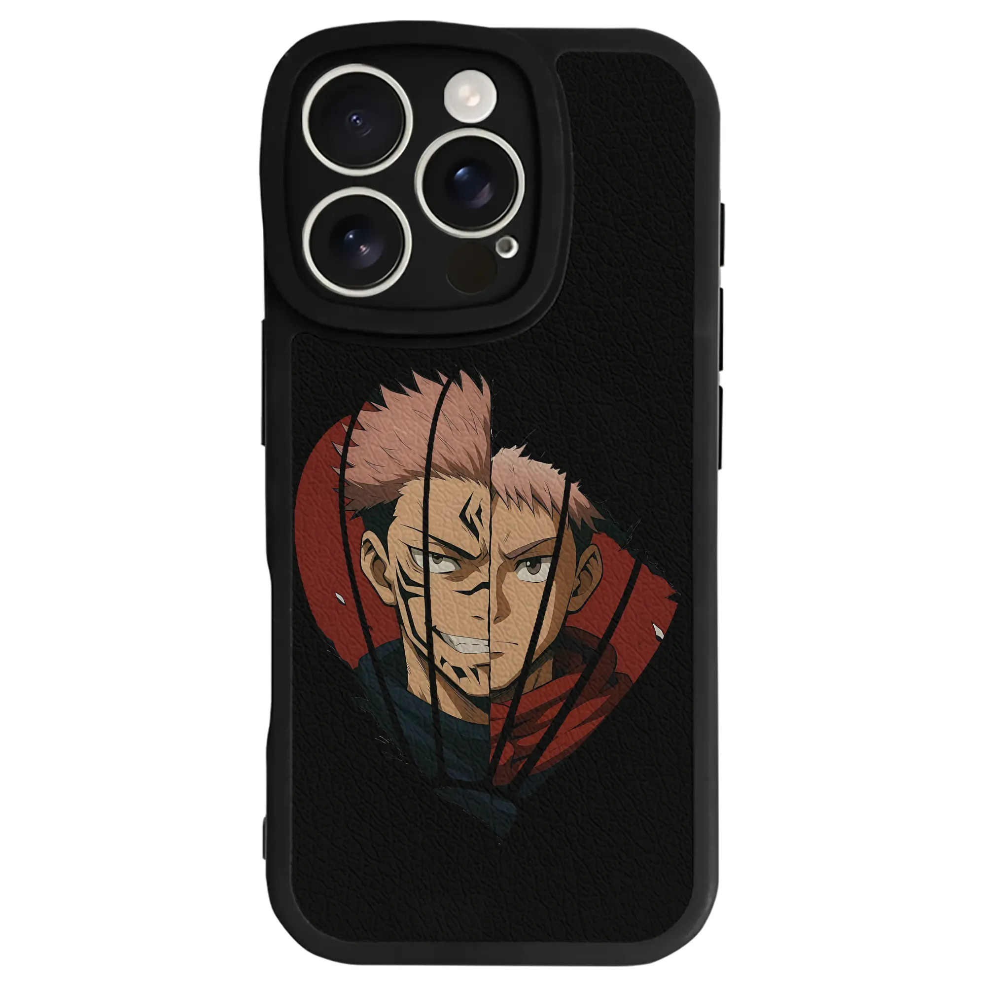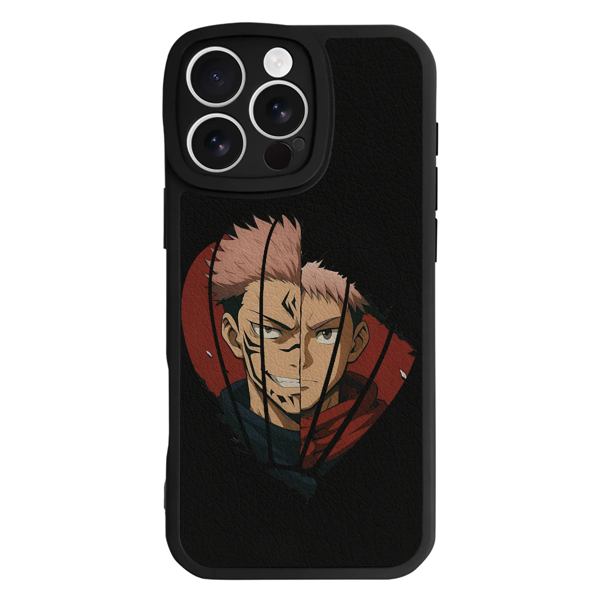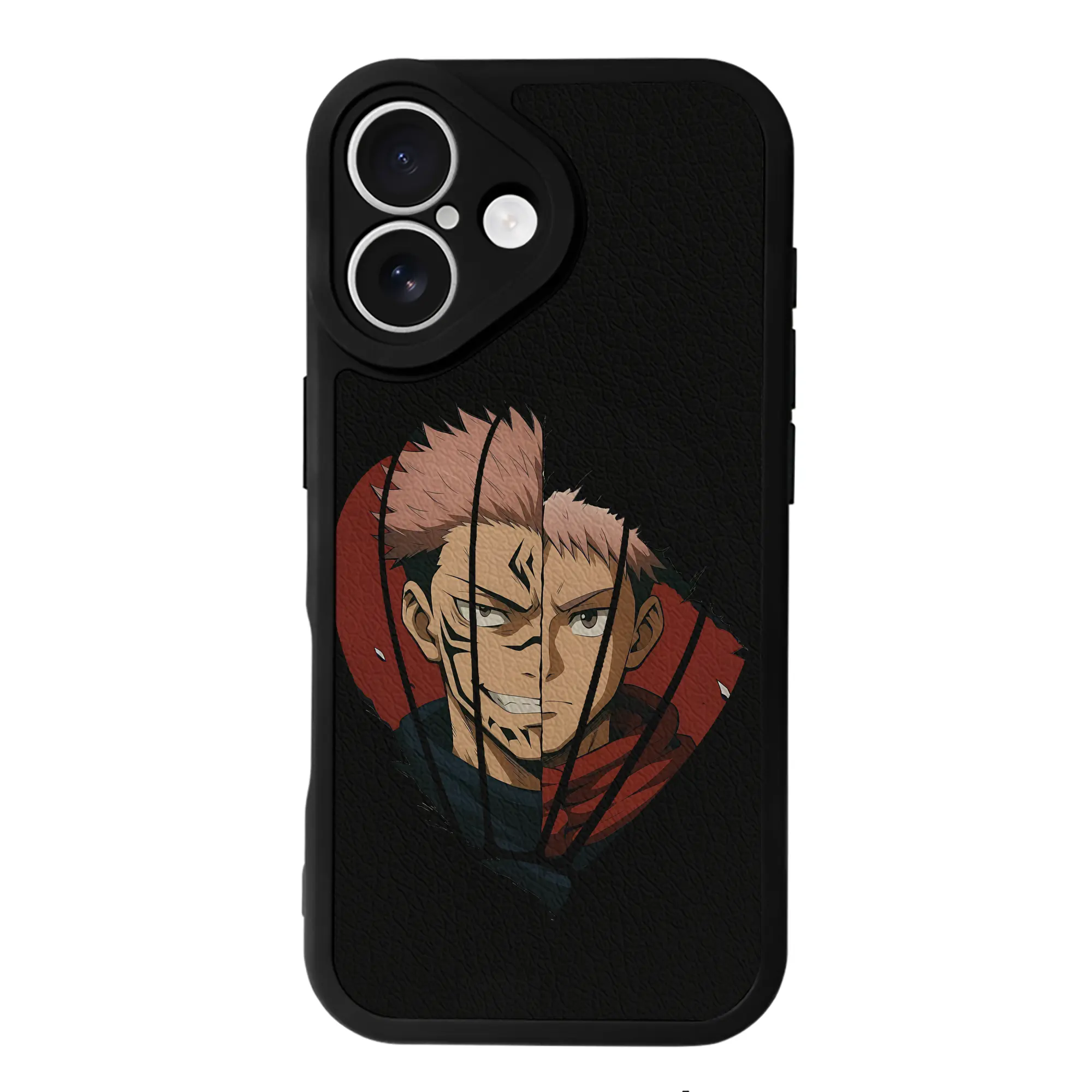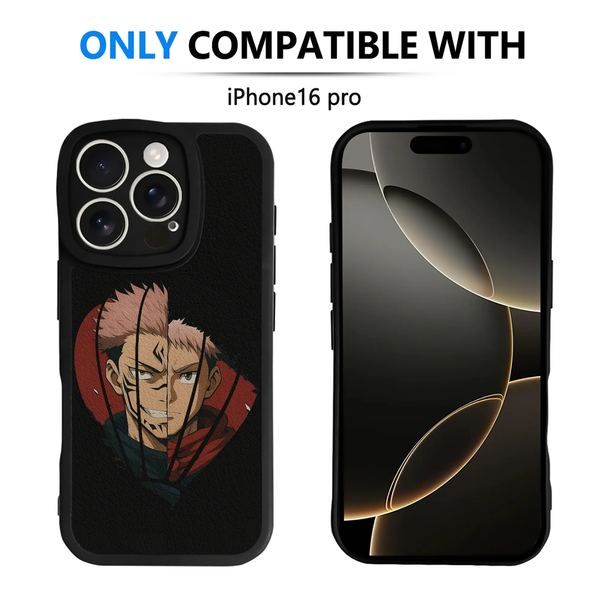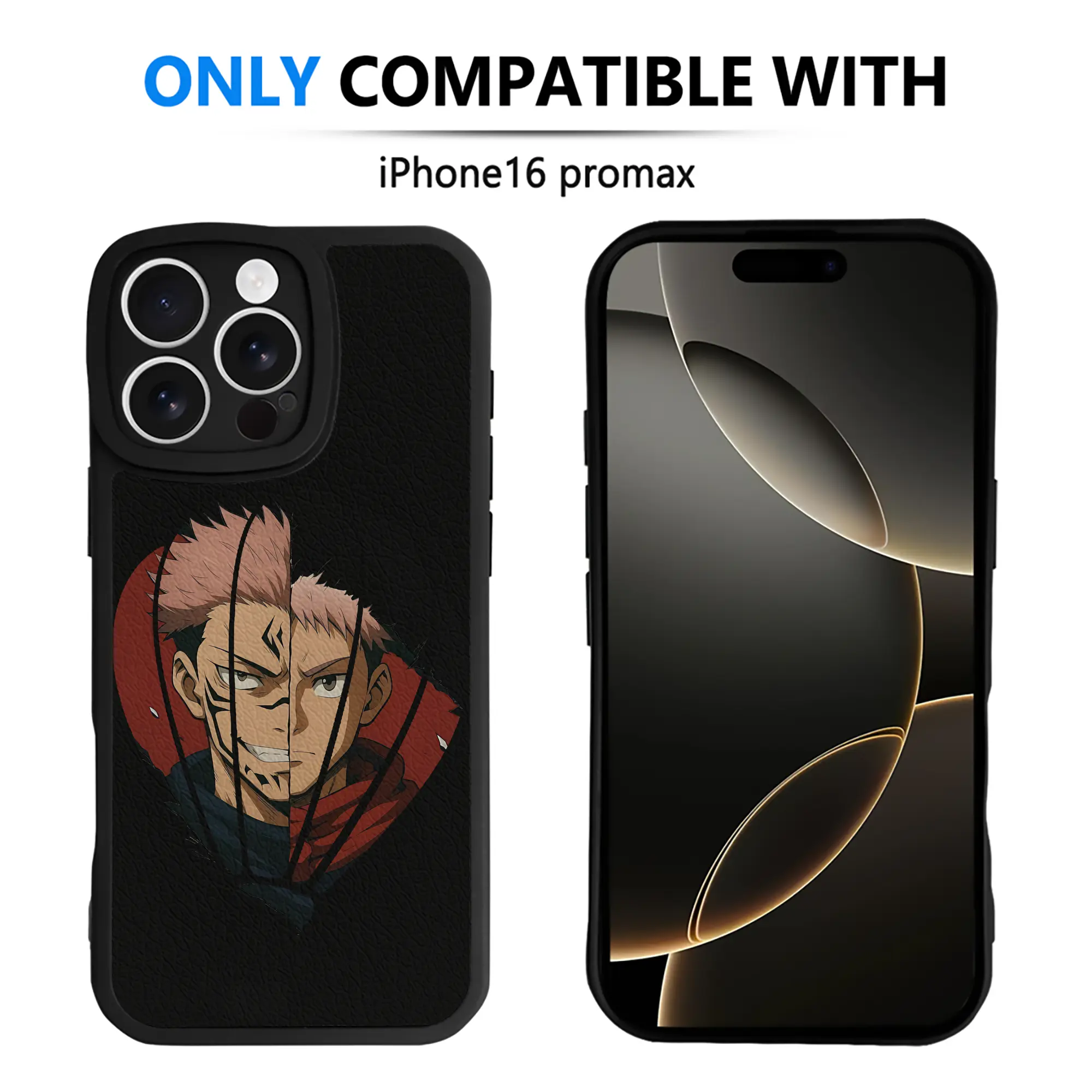 呪術廻戦 グッズ,両面宿儺 - IPhone 16シリーズ対応 ・ シリコンスマホケース ・ レザー調 ・ 高精度フィット ・ 耐衝撃 ・ ワイヤレス充電対応 ・ 精密カット