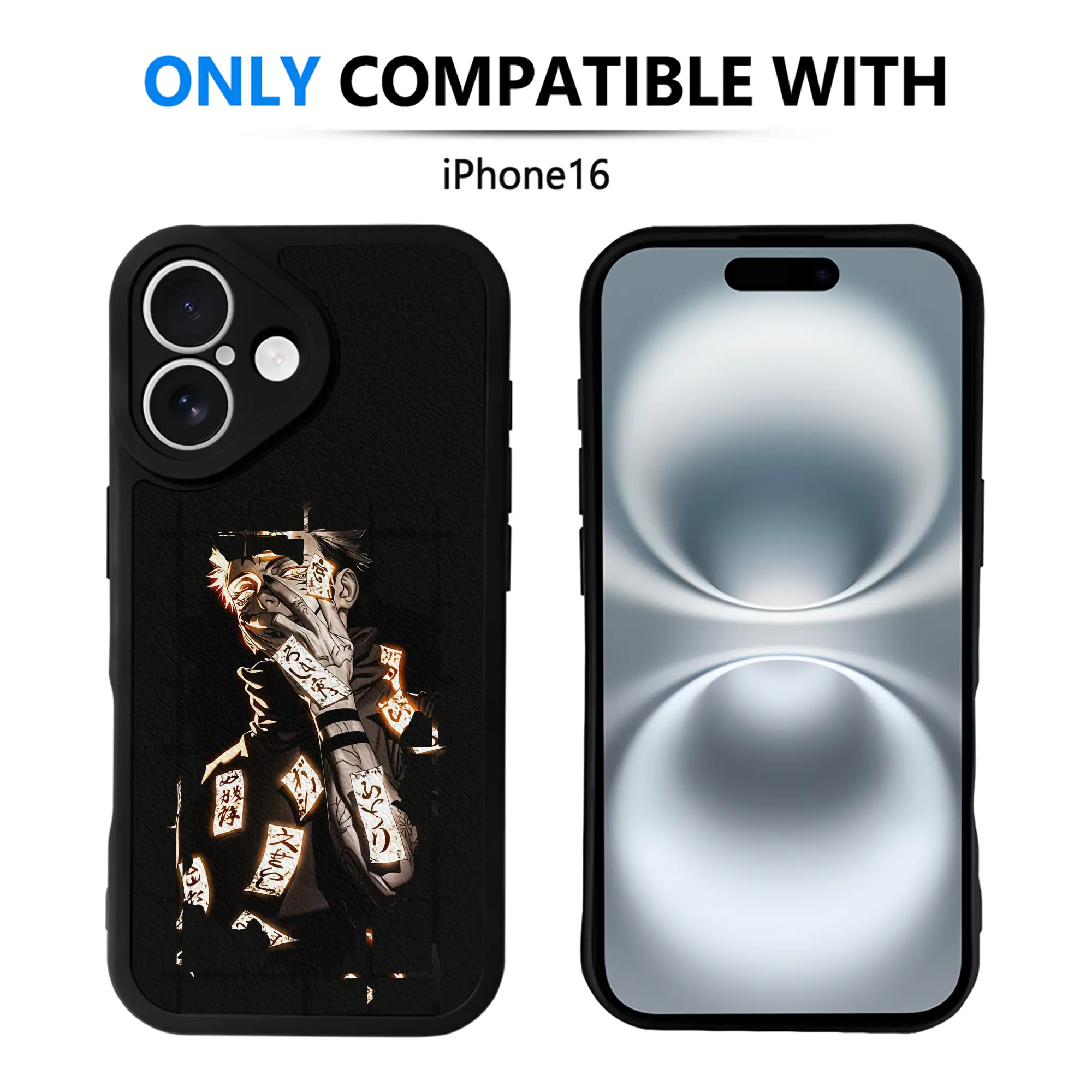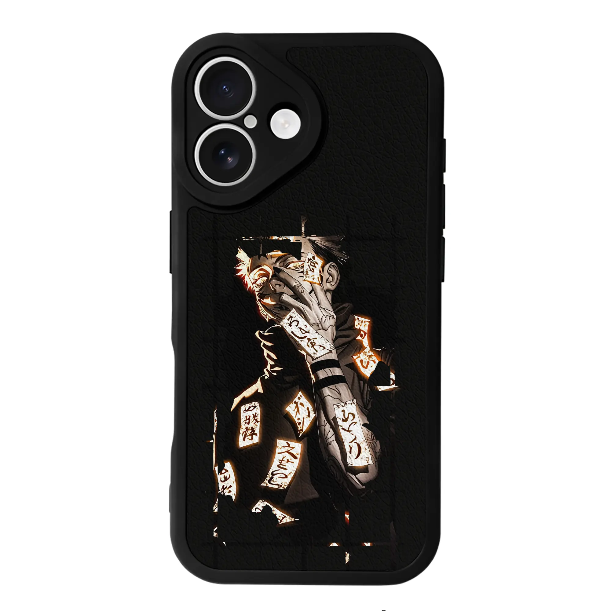 呪術廻戦 グッズ,両面宿儺 - IPhone 16シリーズ対応 ・ シリコンスマホケース ・ レザー調 ・ 高精度フィット ・ 耐衝撃 ・ ワイヤレス充電対応 ・ 精密カット