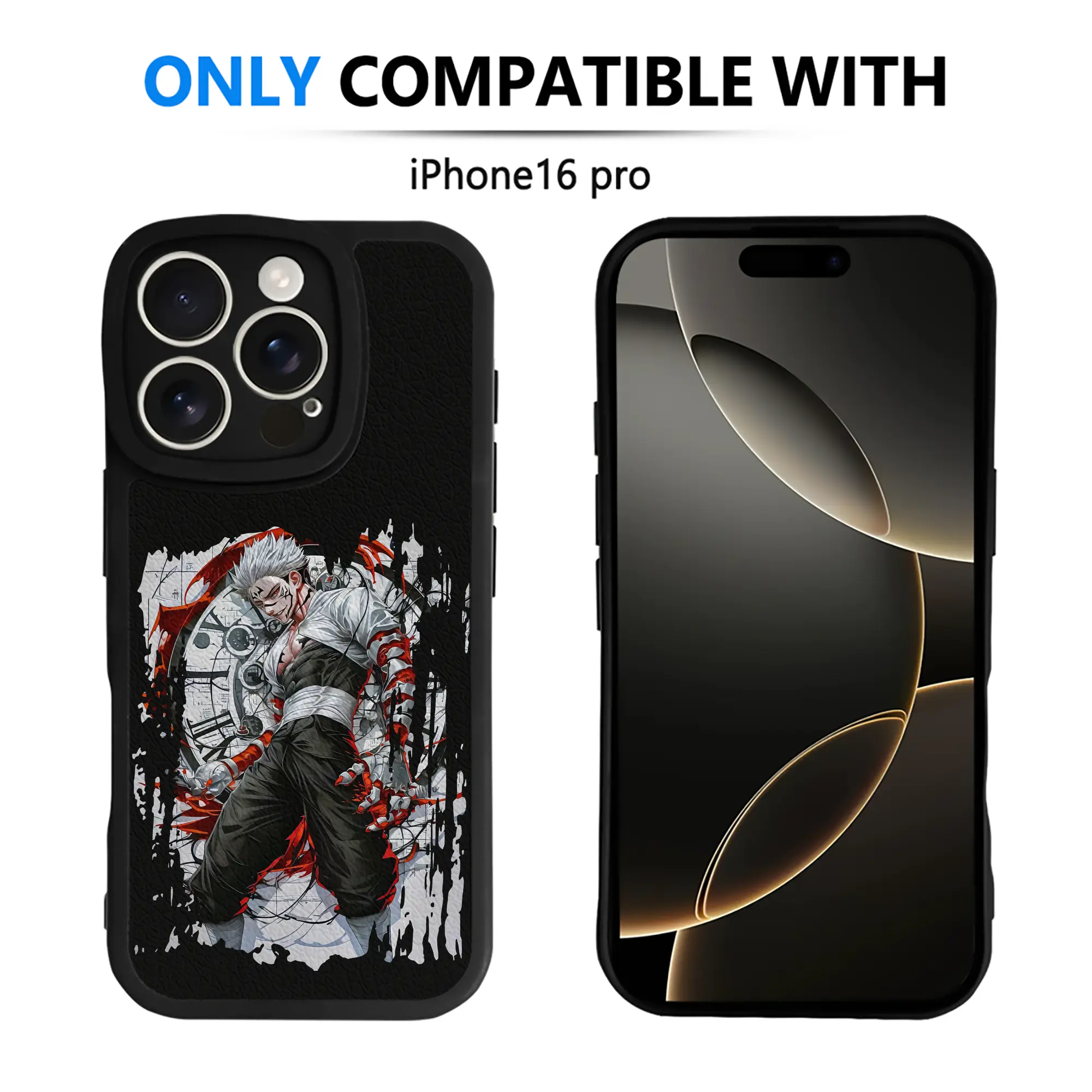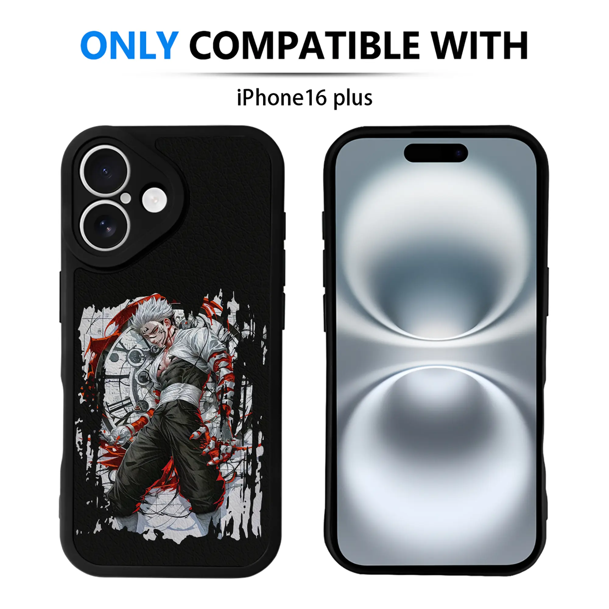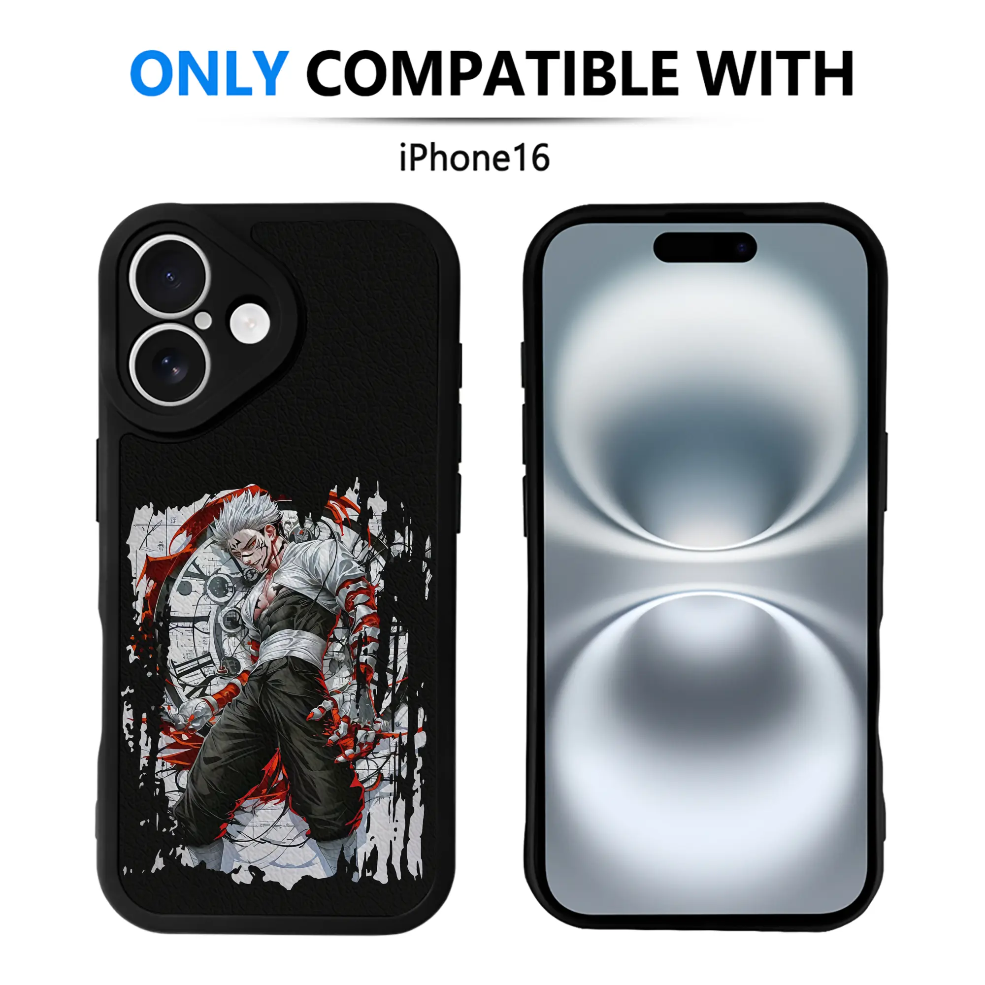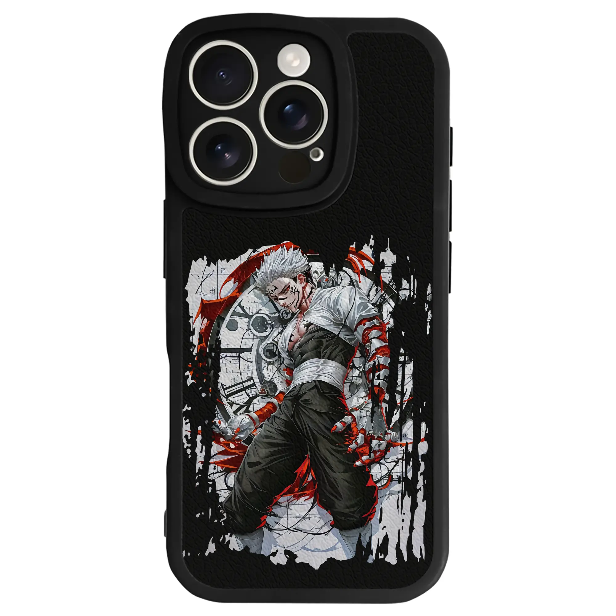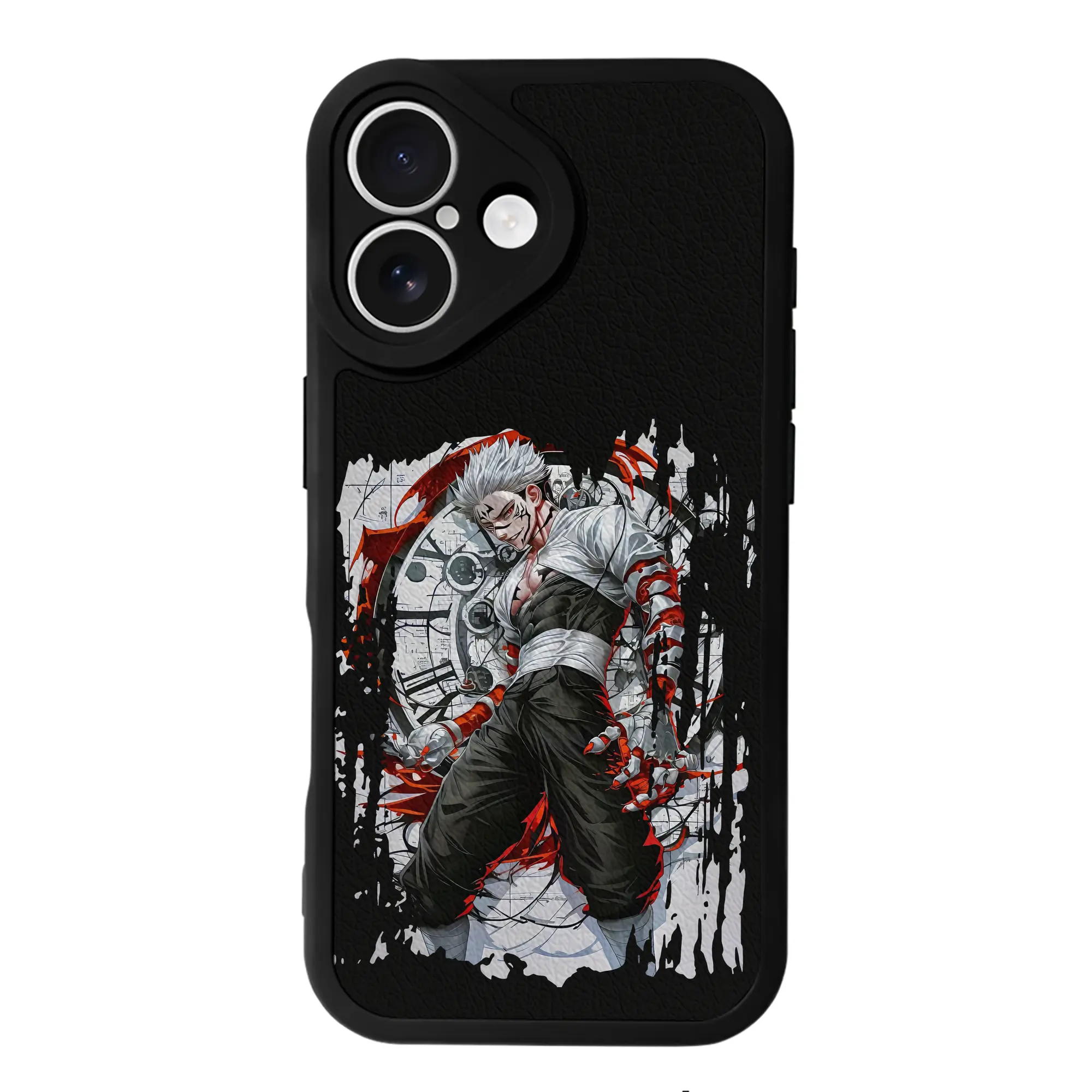呪術廻戦 グッズ,両面宿儺 - IPhone 16シリーズ対応 ・ シリコンスマホケース ・ レザー調 ・ 高精度フィット ・ 耐衝撃 ・ ワイヤレス充電対応 ・ 精密カット