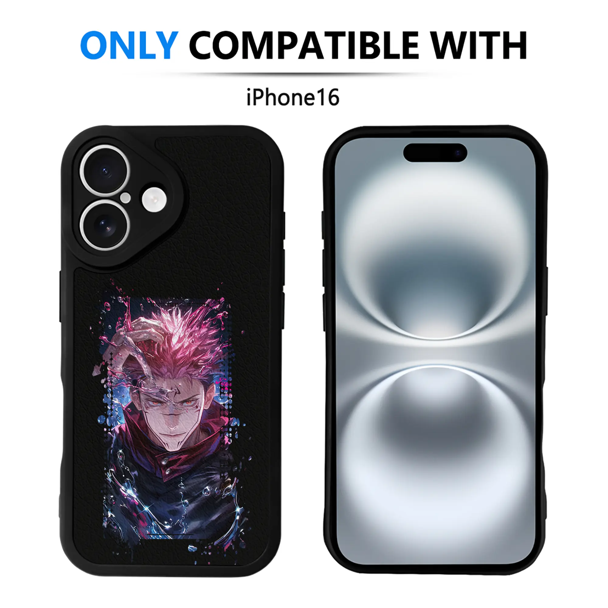 呪術廻戦 グッズ,両面宿儺 - IPhone 16シリーズ対応 ・ シリコンスマホケース ・ レザー調 ・ 高精度フィット ・ 耐衝撃 ・ ワイヤレス充電対応 ・ 精密カット