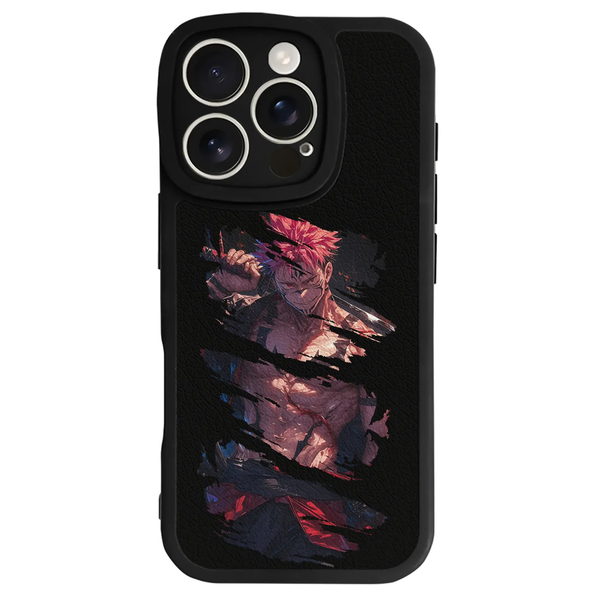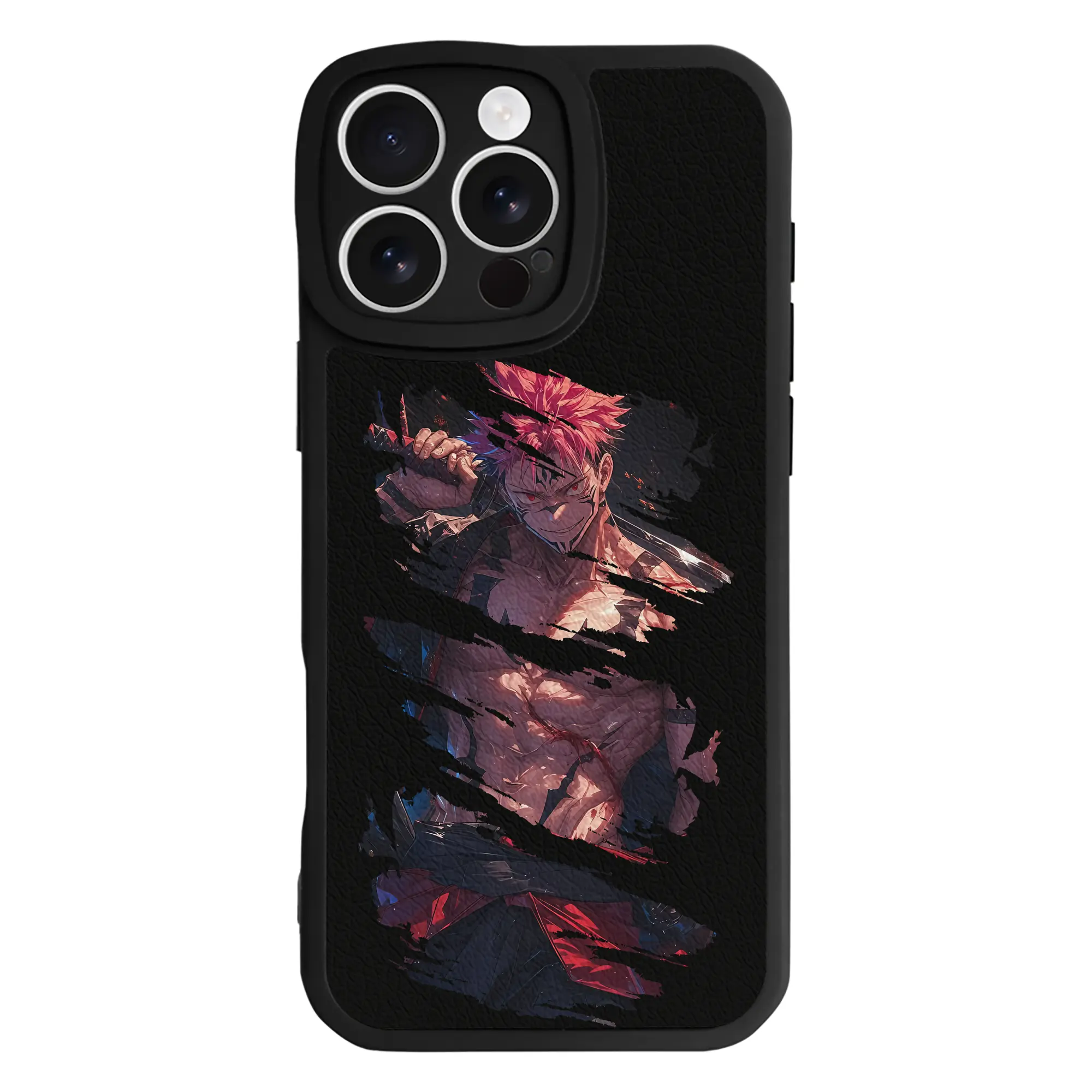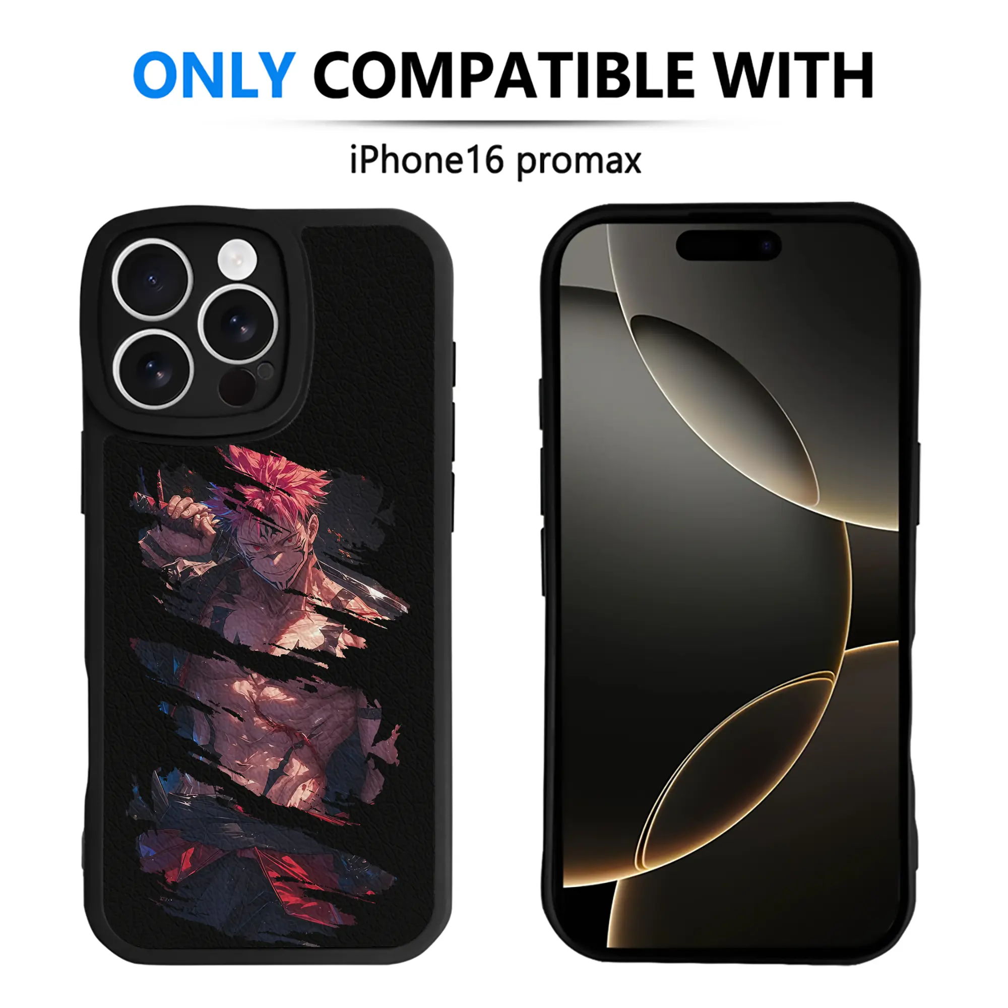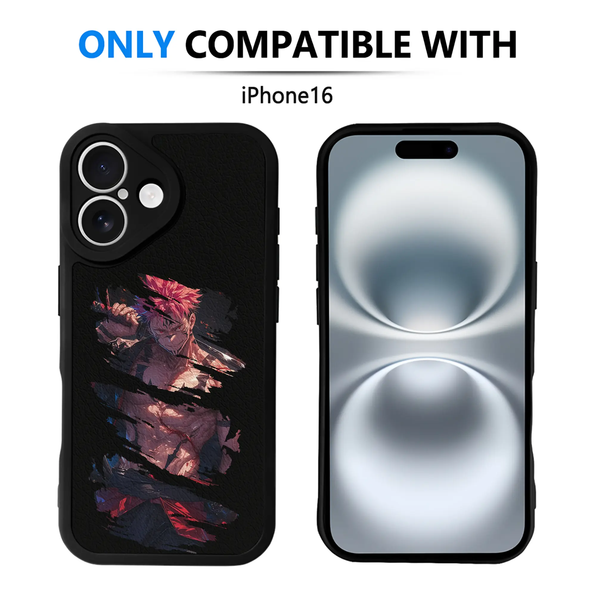 呪術廻戦 グッズ,両面宿儺 - IPhone 16シリーズ対応 ・ シリコンスマホケース ・ レザー調 ・ 高精度フィット ・ 耐衝撃 ・ ワイヤレス充電対応 ・ 精密カット