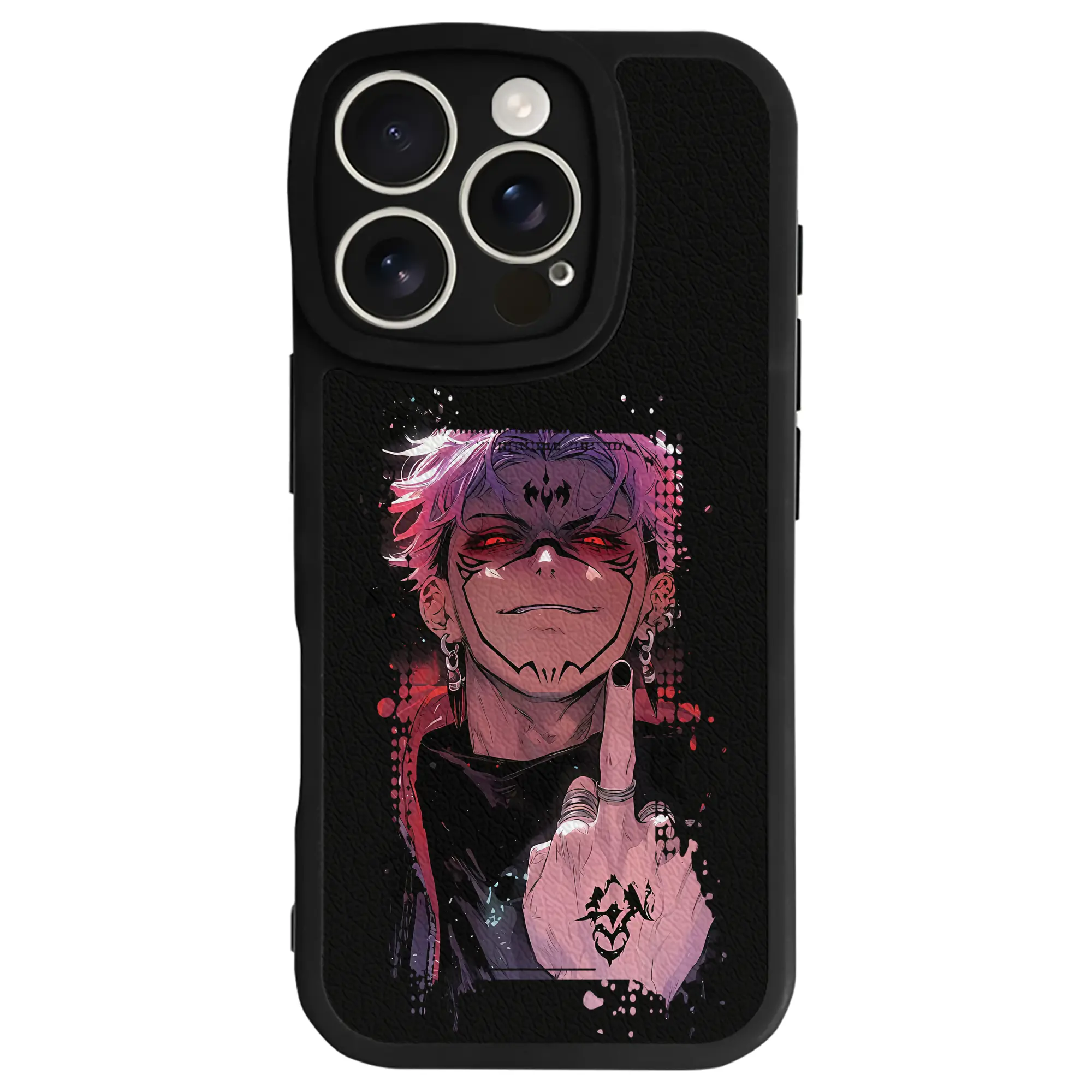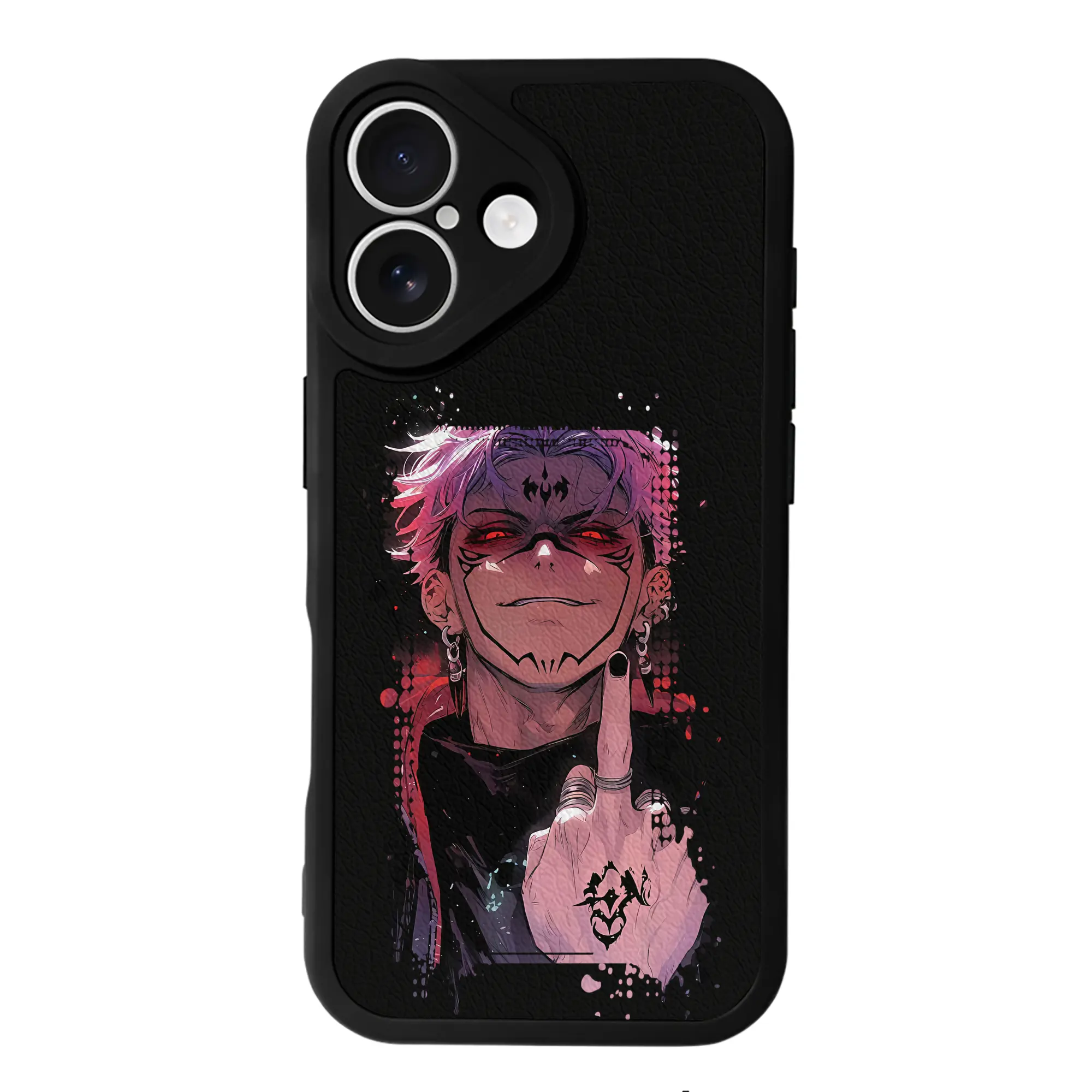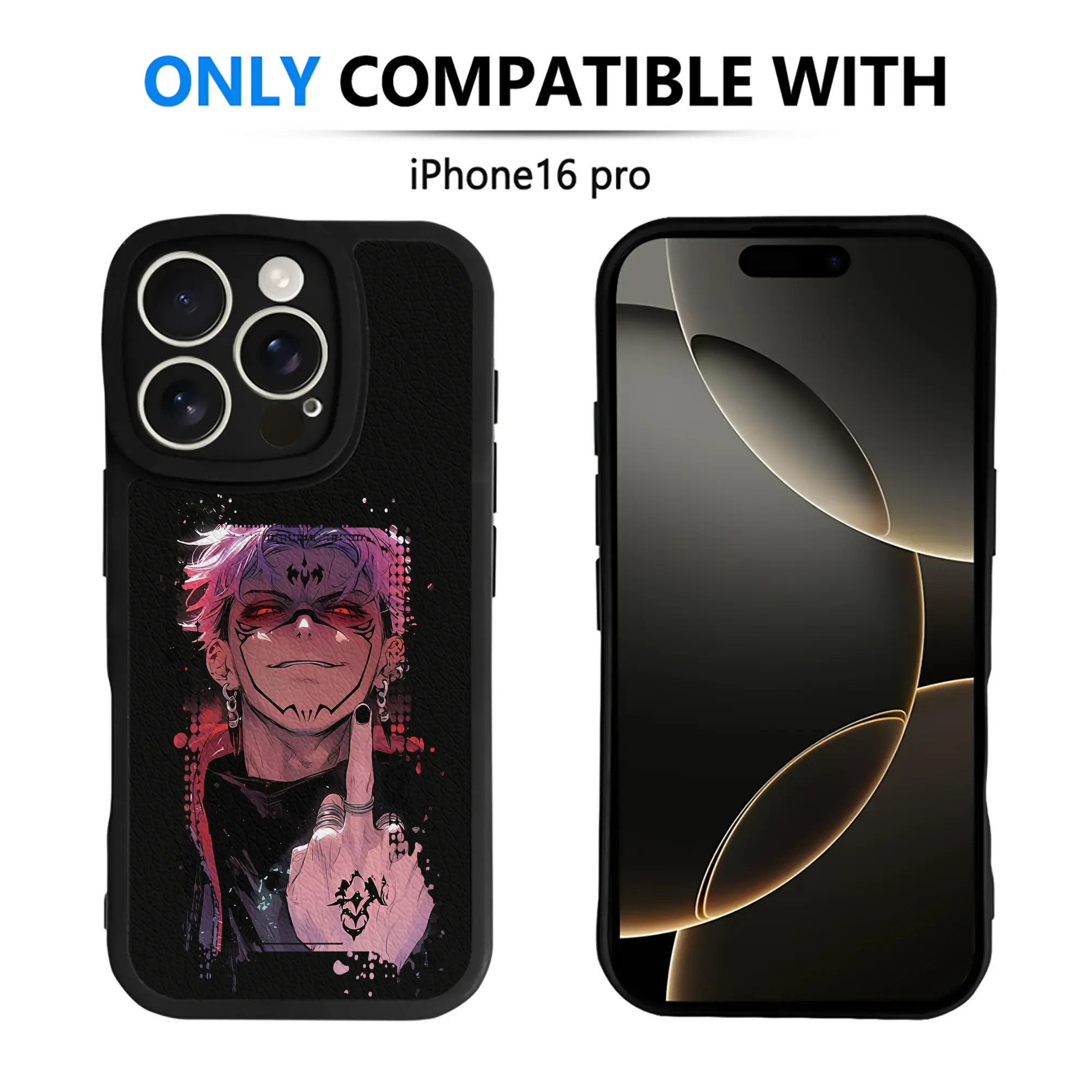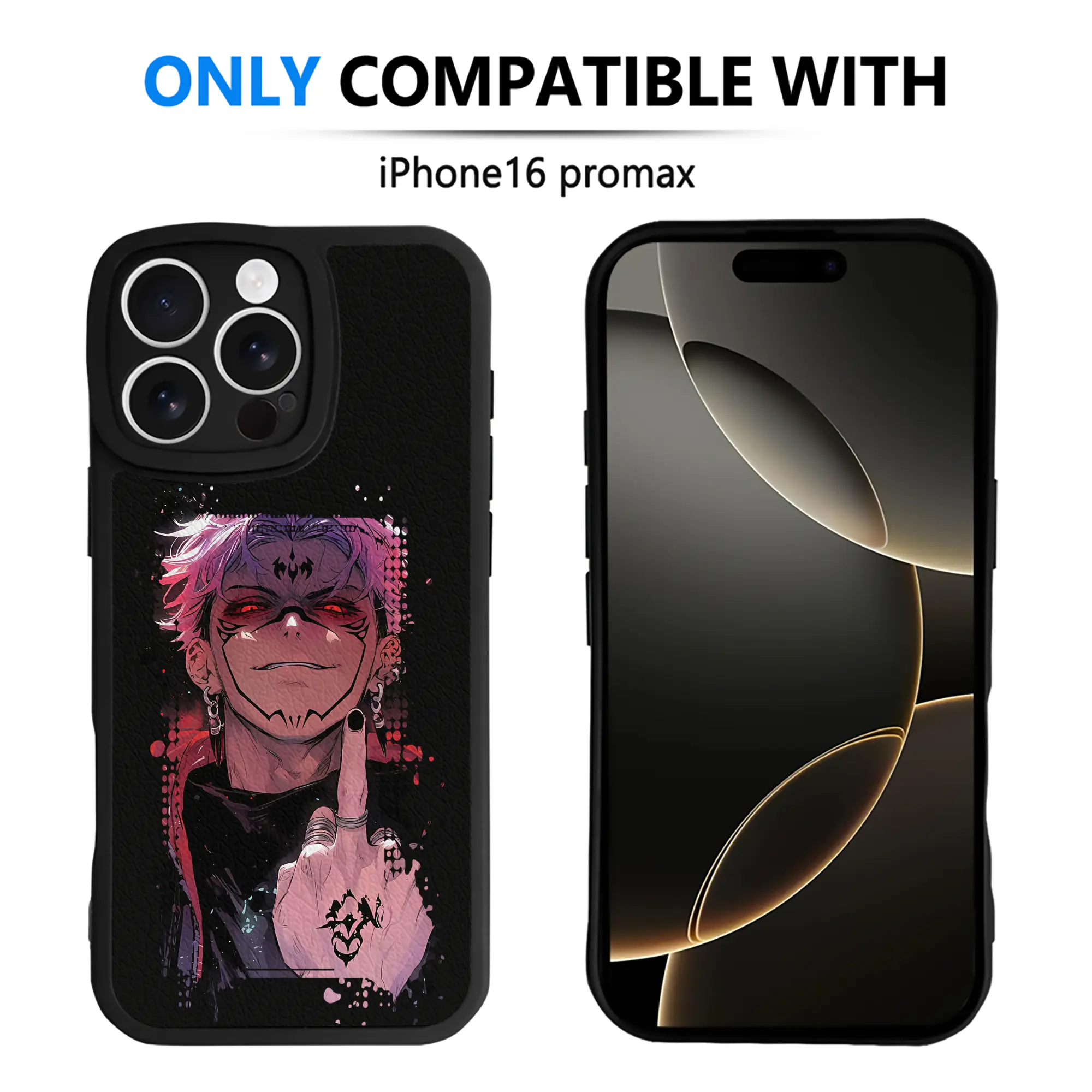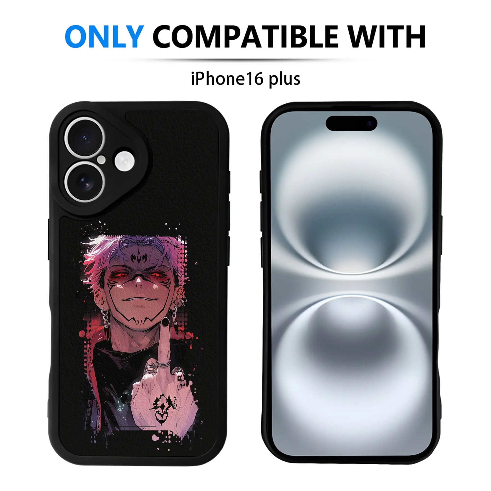 呪術廻戦 グッズ,両面宿儺 - IPhone 16シリーズ対応 ・ シリコンスマホケース ・ レザー調 ・ 高精度フィット ・ 耐衝撃 ・ ワイヤレス充電対応 ・ 精密カット