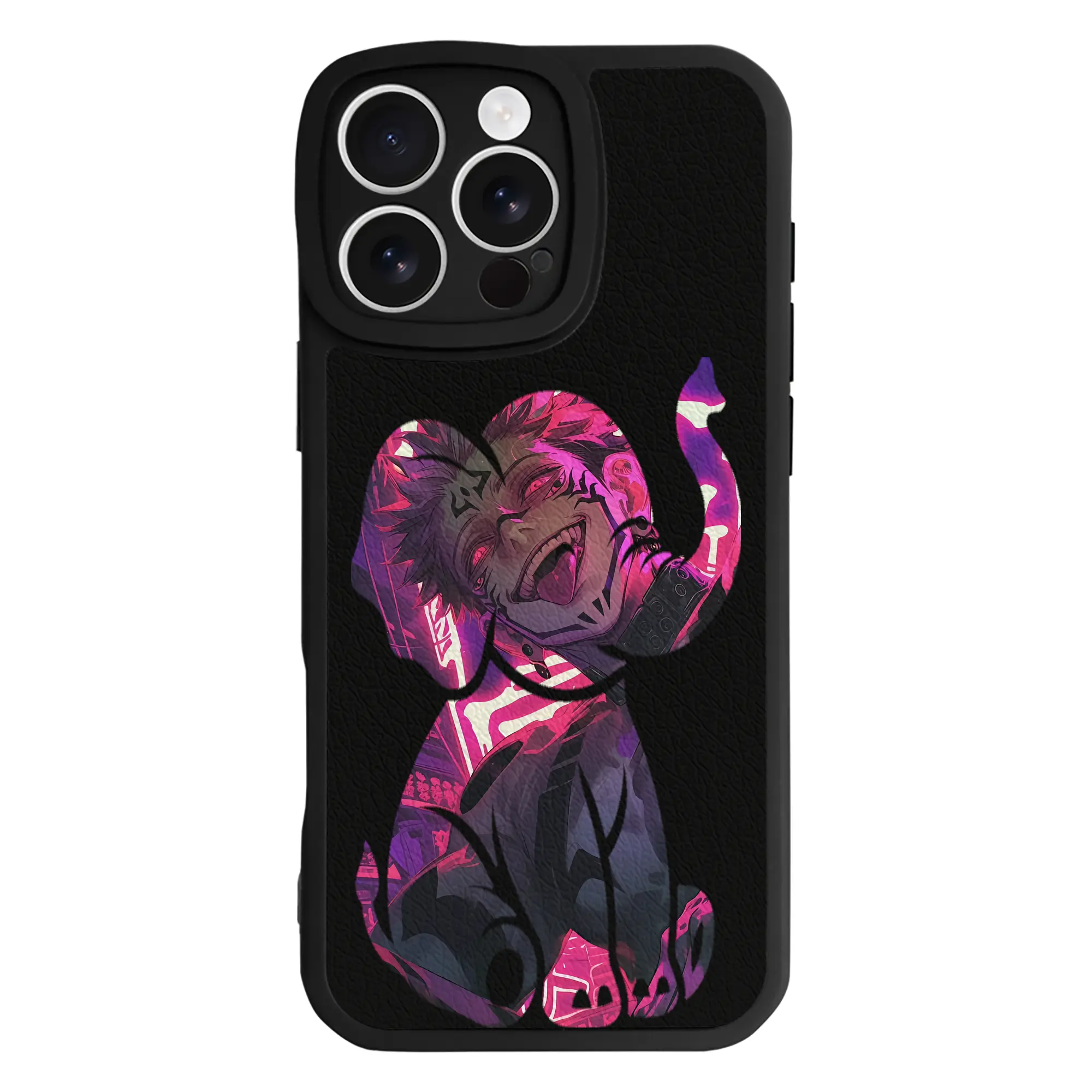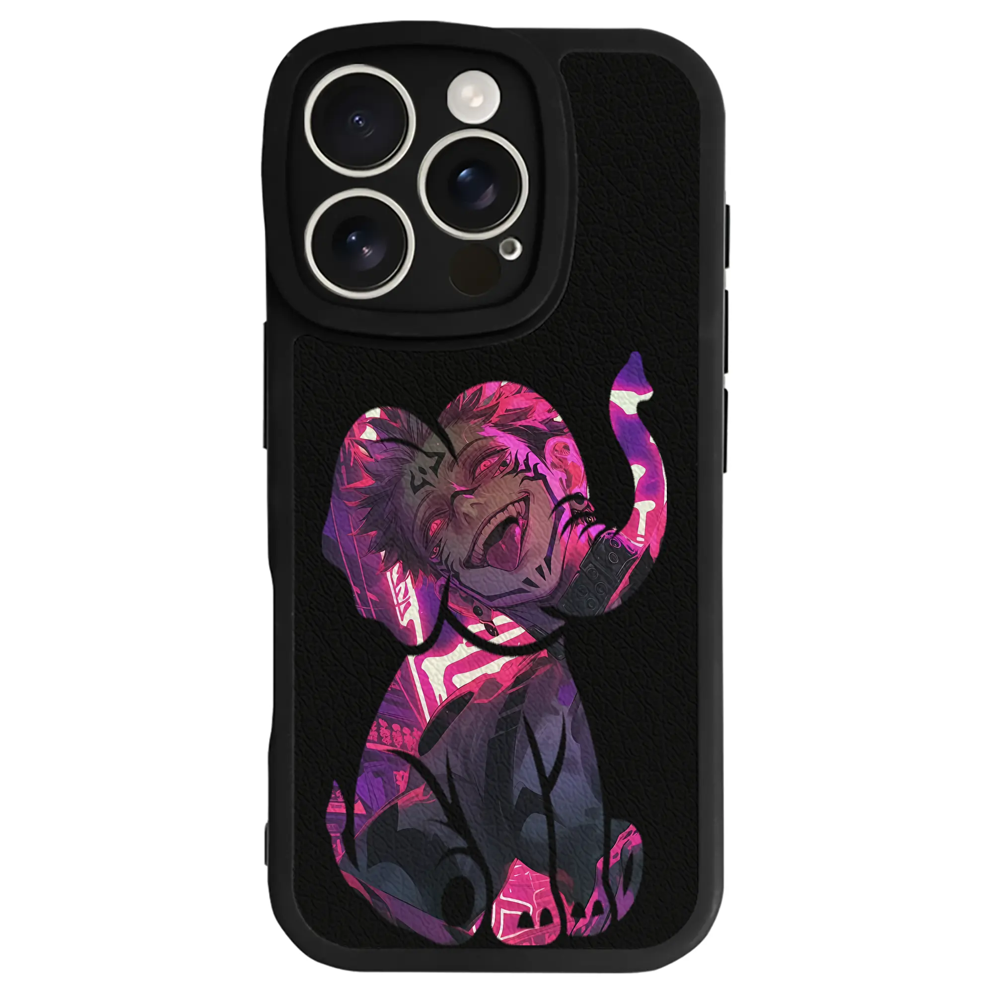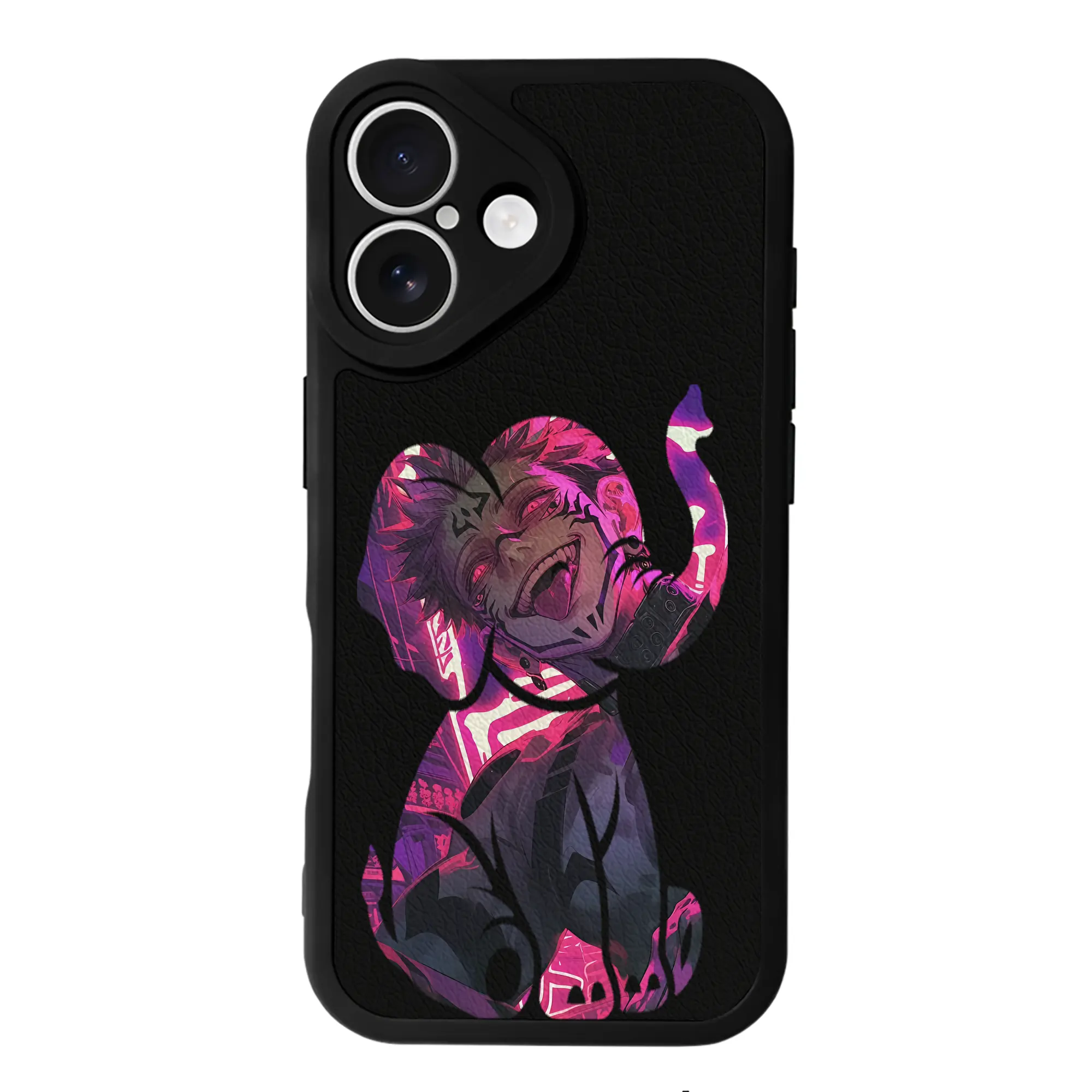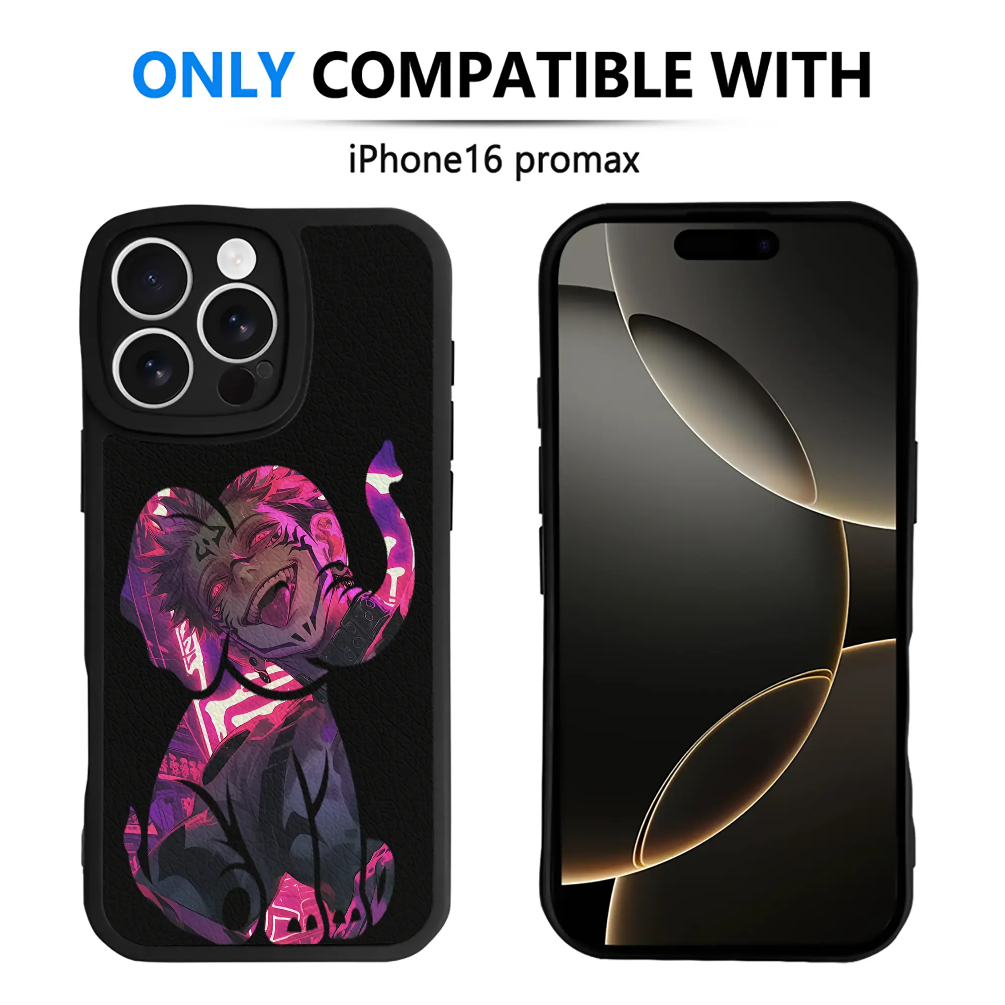 呪術廻戦 グッズ,両面宿儺 - IPhone 16シリーズ対応 ・ シリコンスマホケース ・ レザー調 ・ 高精度フィット ・ 耐衝撃 ・ ワイヤレス充電対応 ・ 精密カット