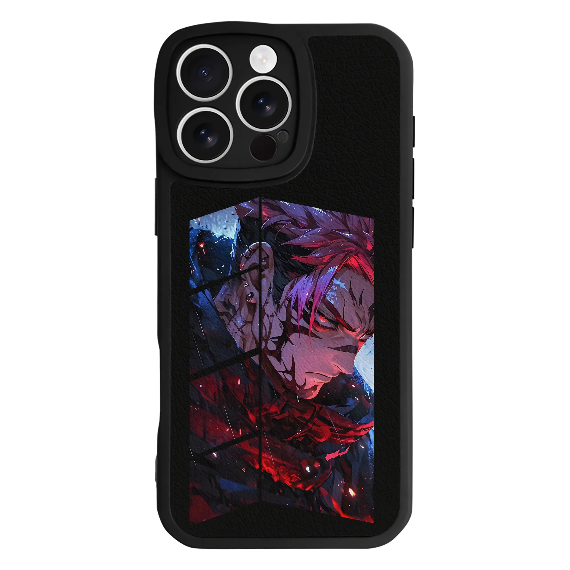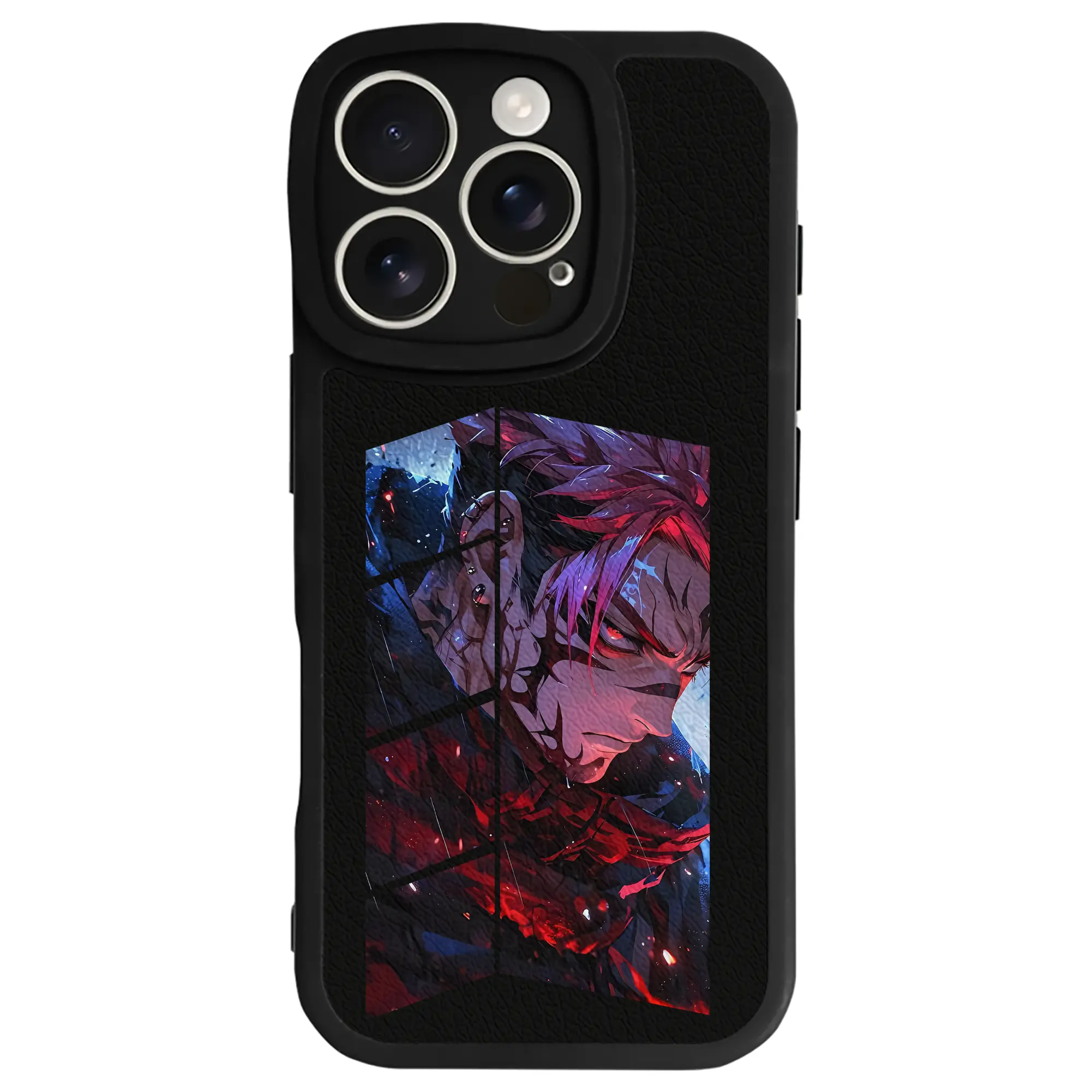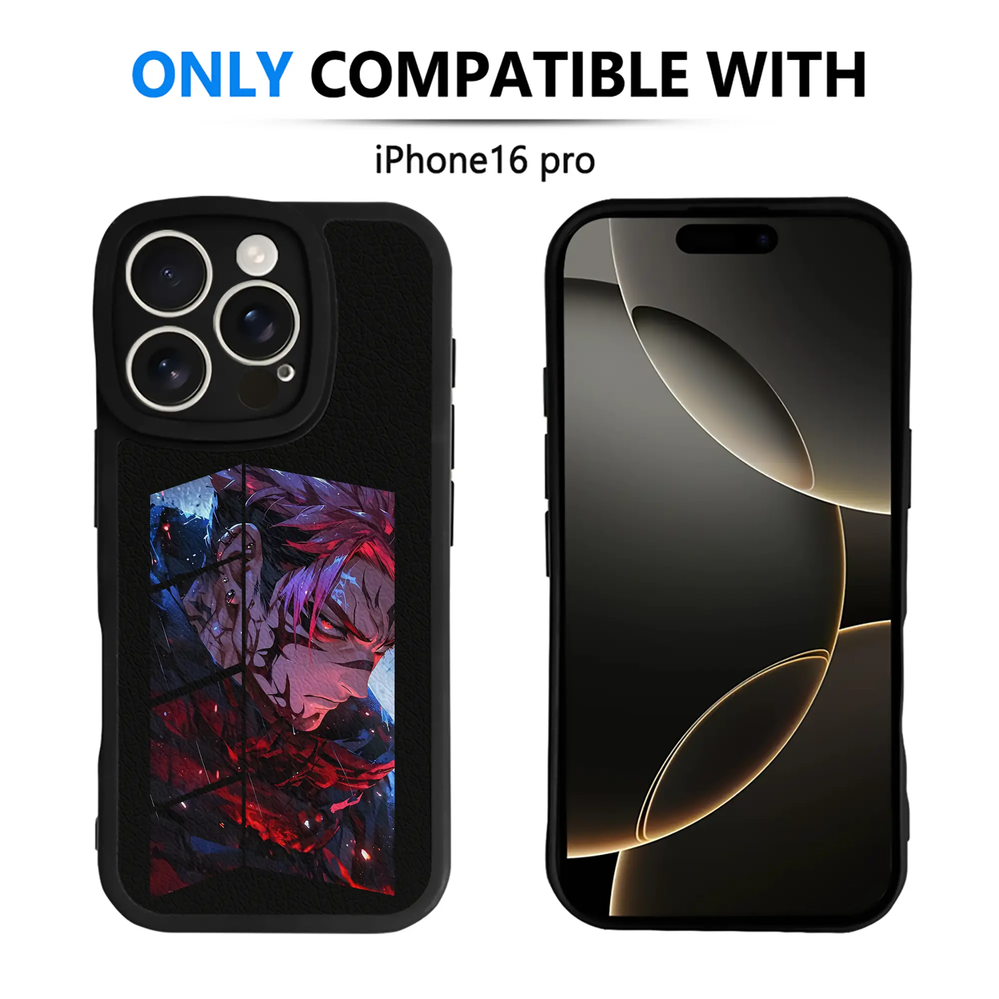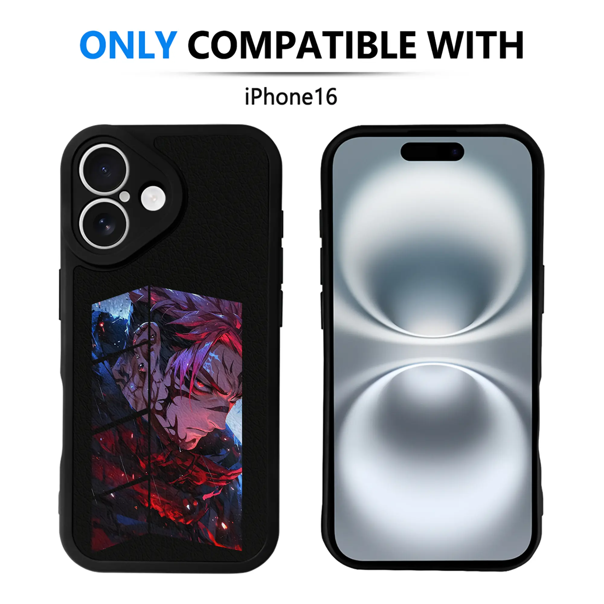 呪術廻戦 グッズ,両面宿儺 - IPhone 16シリーズ対応 ・ シリコンスマホケース ・ レザー調 ・ 高精度フィット ・ 耐衝撃 ・ ワイヤレス充電対応 ・ 精密カット