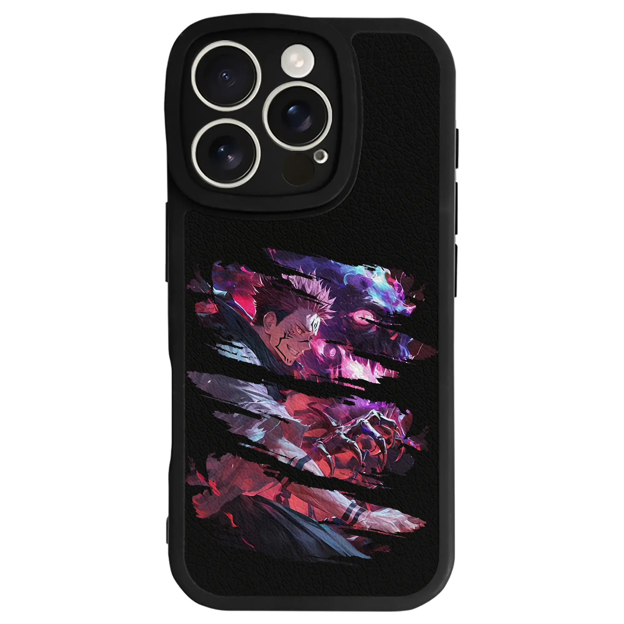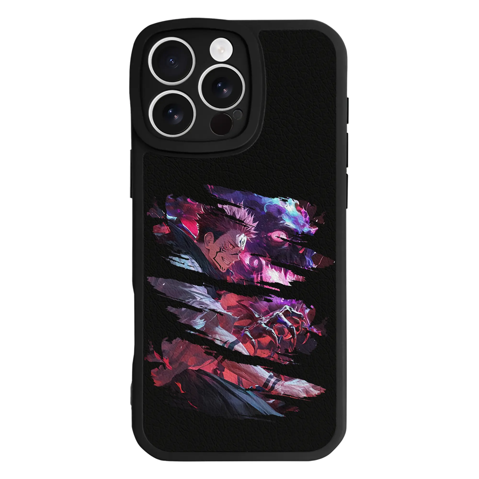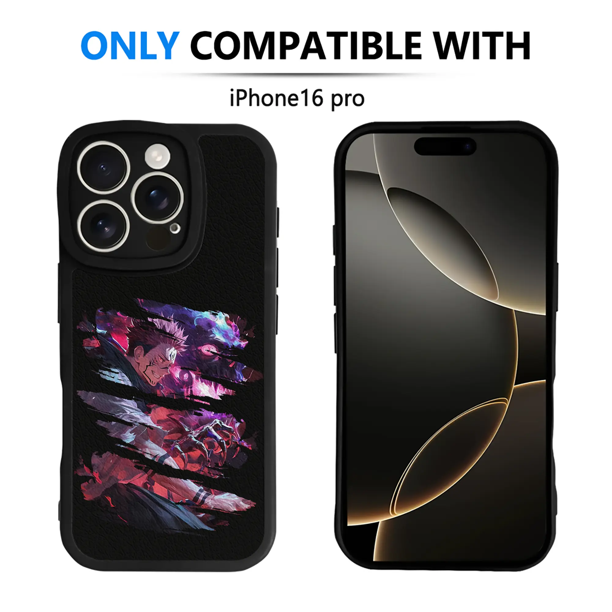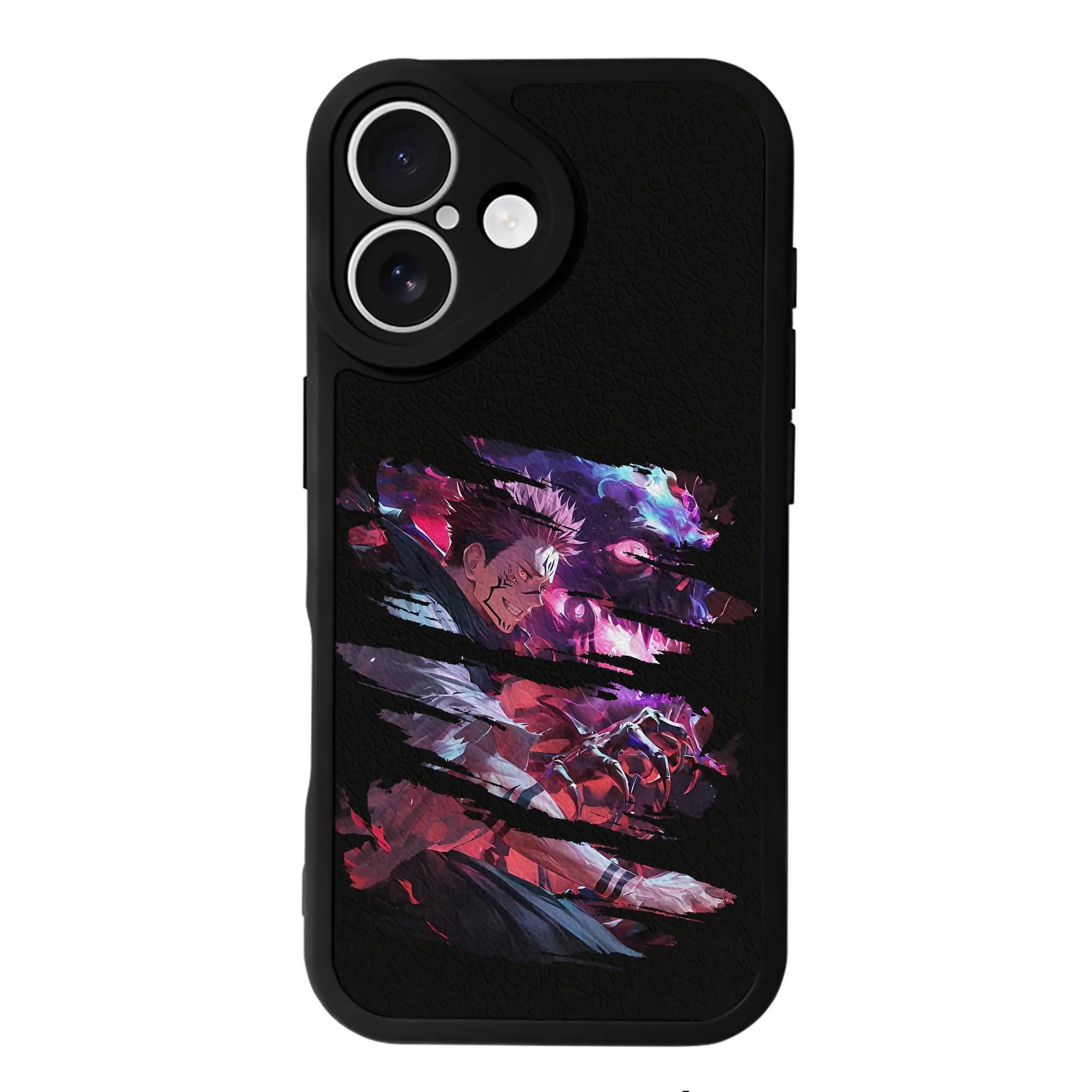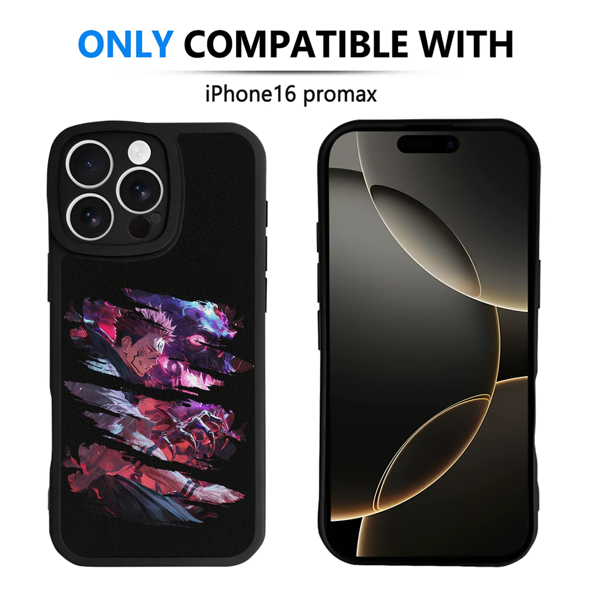 呪術廻戦 グッズ,両面宿儺 - IPhone 16シリーズ対応 ・ シリコンスマホケース ・ レザー調 ・ 高精度フィット ・ 耐衝撃 ・ ワイヤレス充電対応 ・ 精密カット