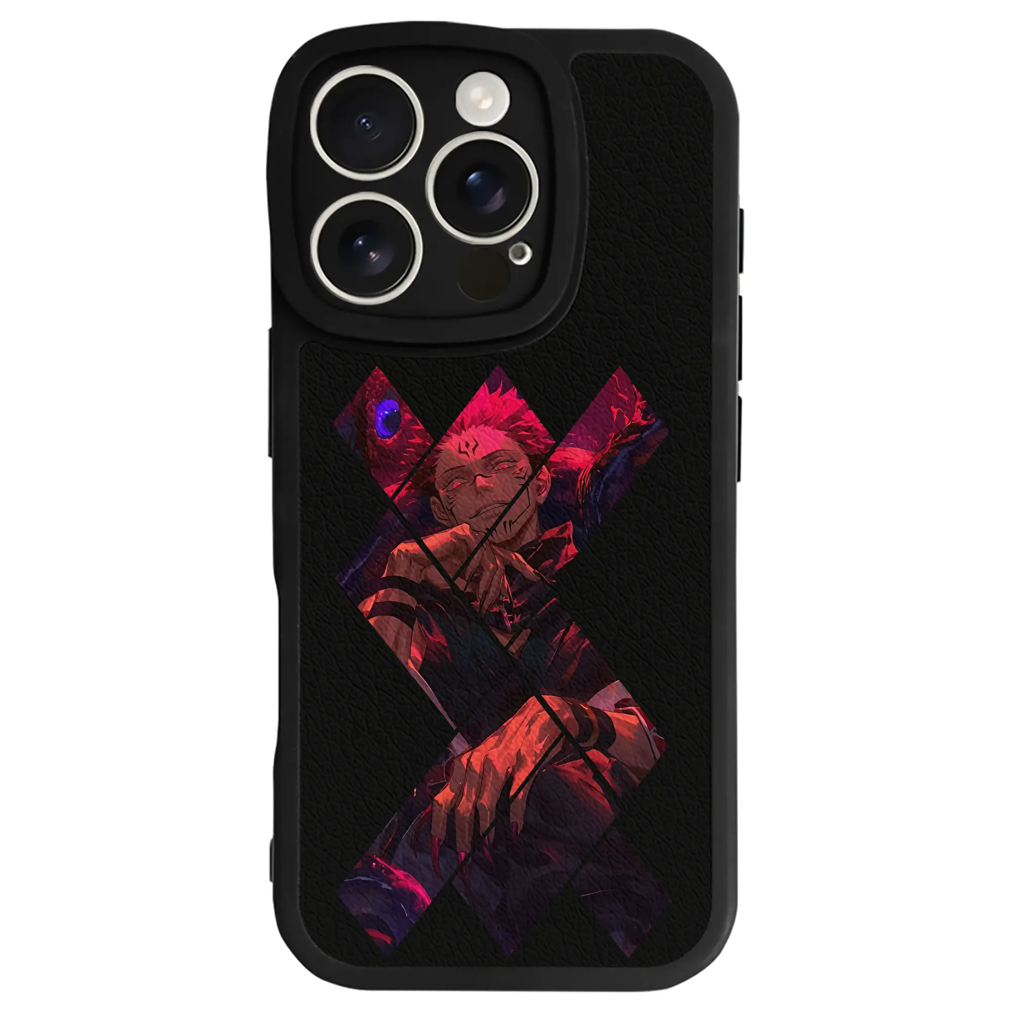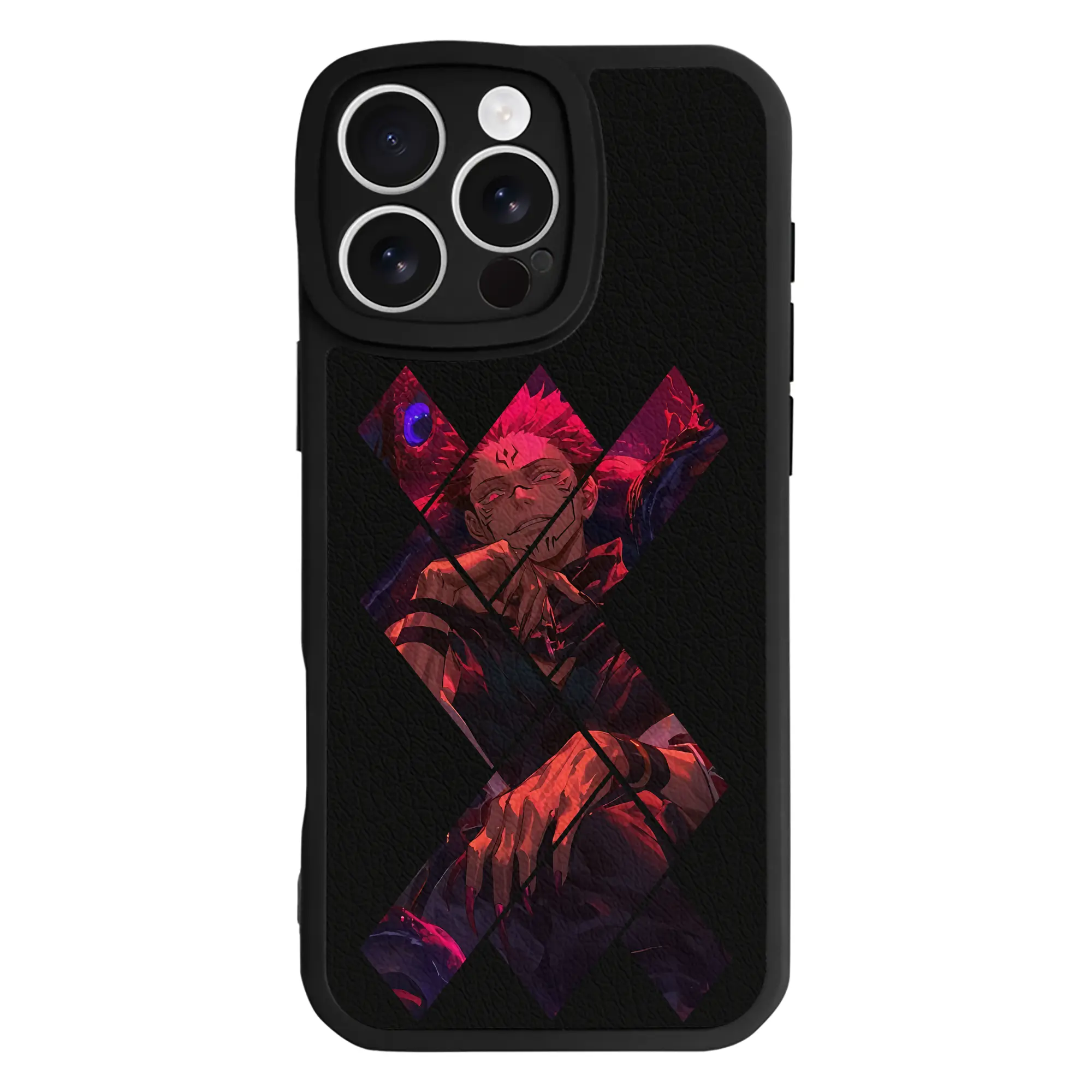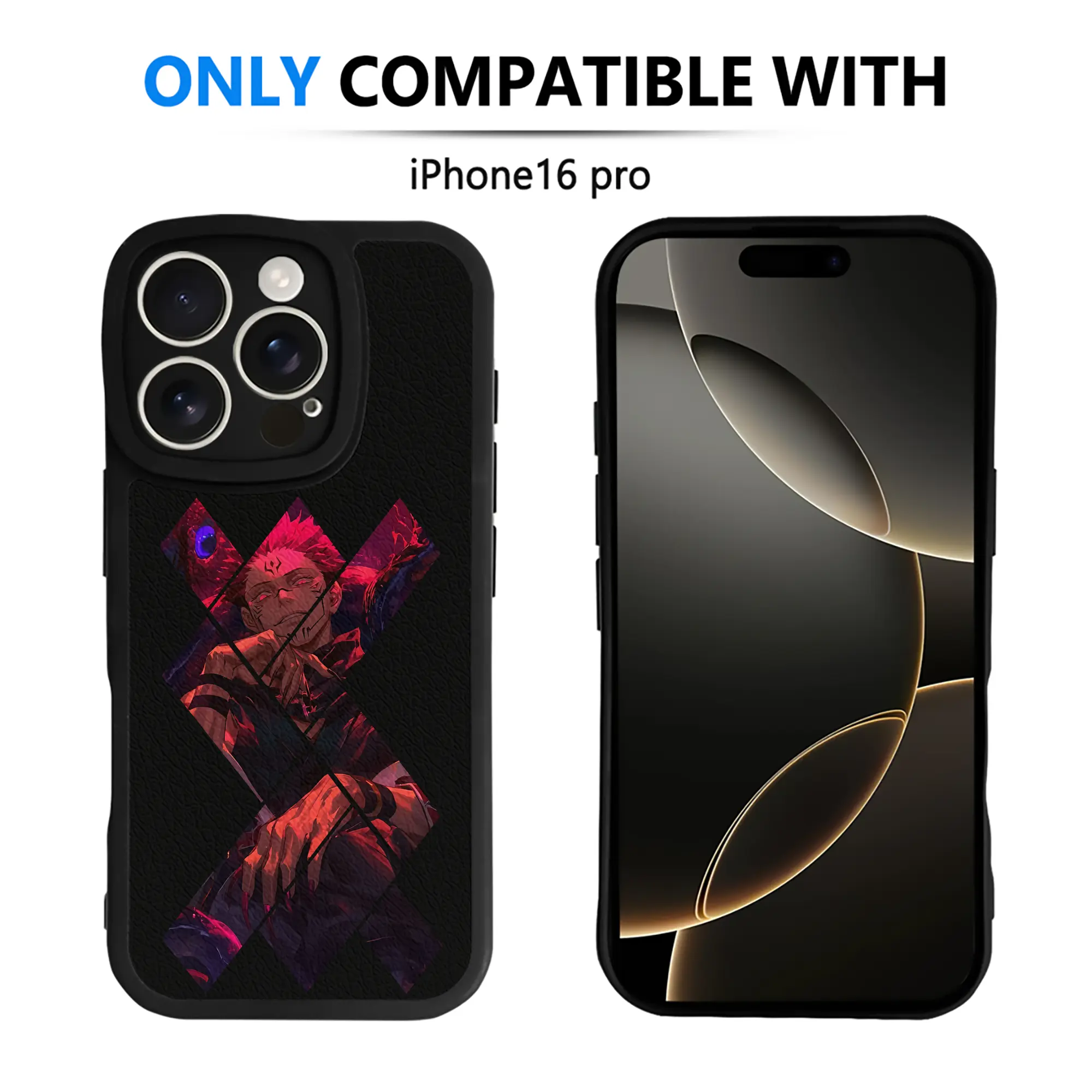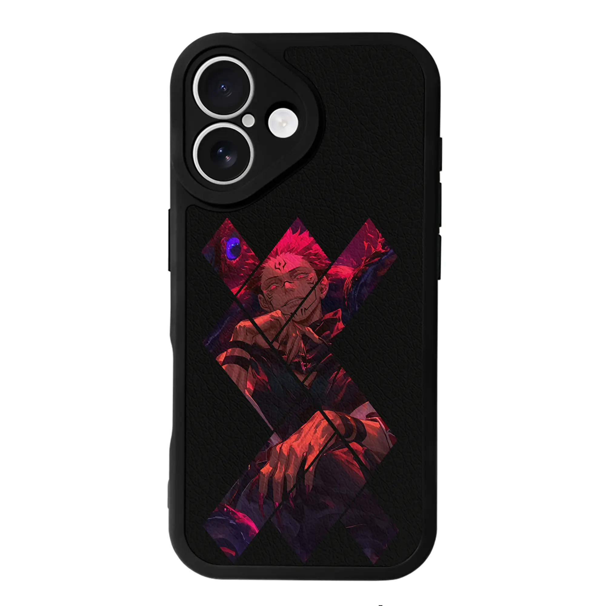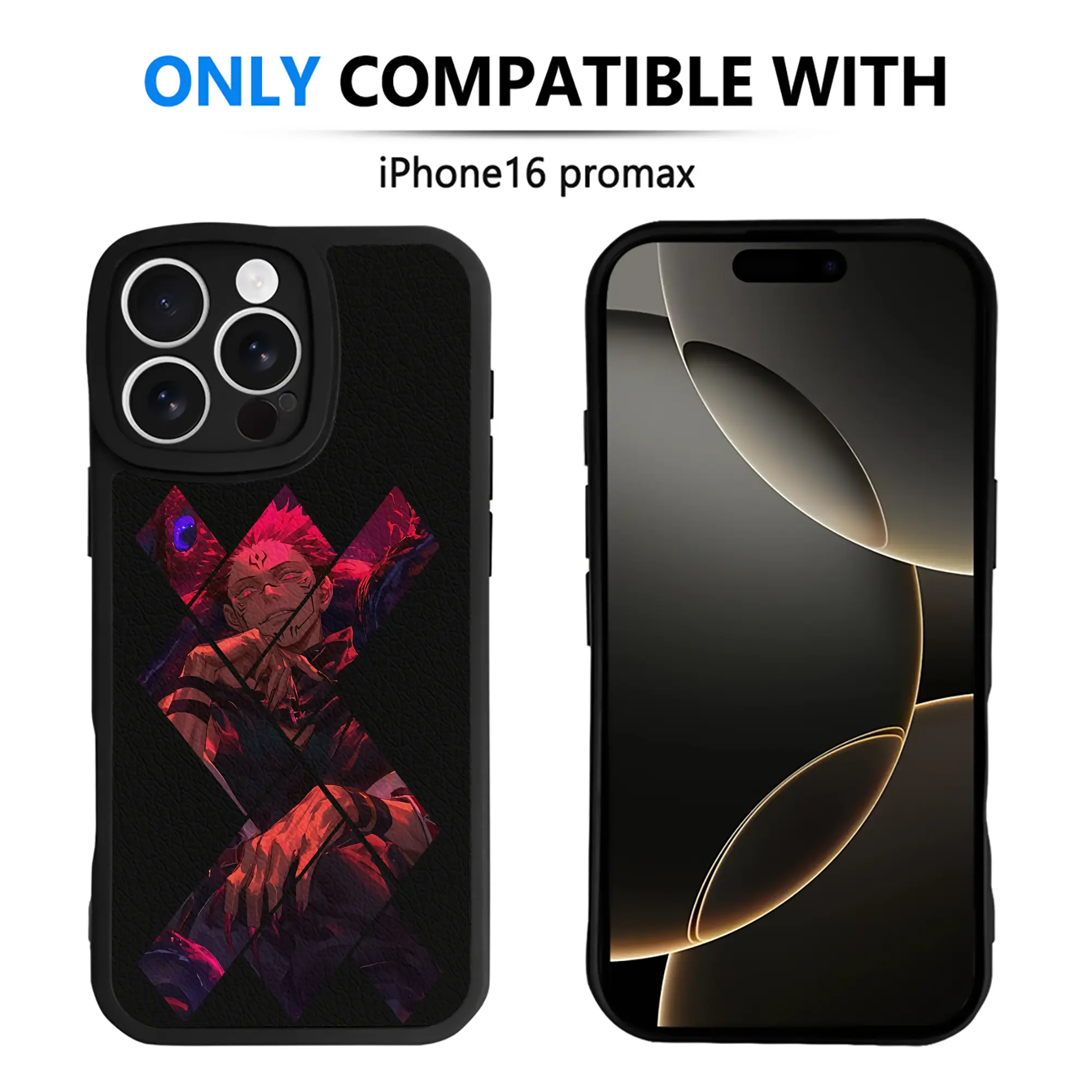 呪術廻戦 グッズ,両面宿儺 - IPhone 16シリーズ対応 ・ シリコンスマホケース ・ レザー調 ・ 高精度フィット ・ 耐衝撃 ・ ワイヤレス充電対応 ・ 精密カット