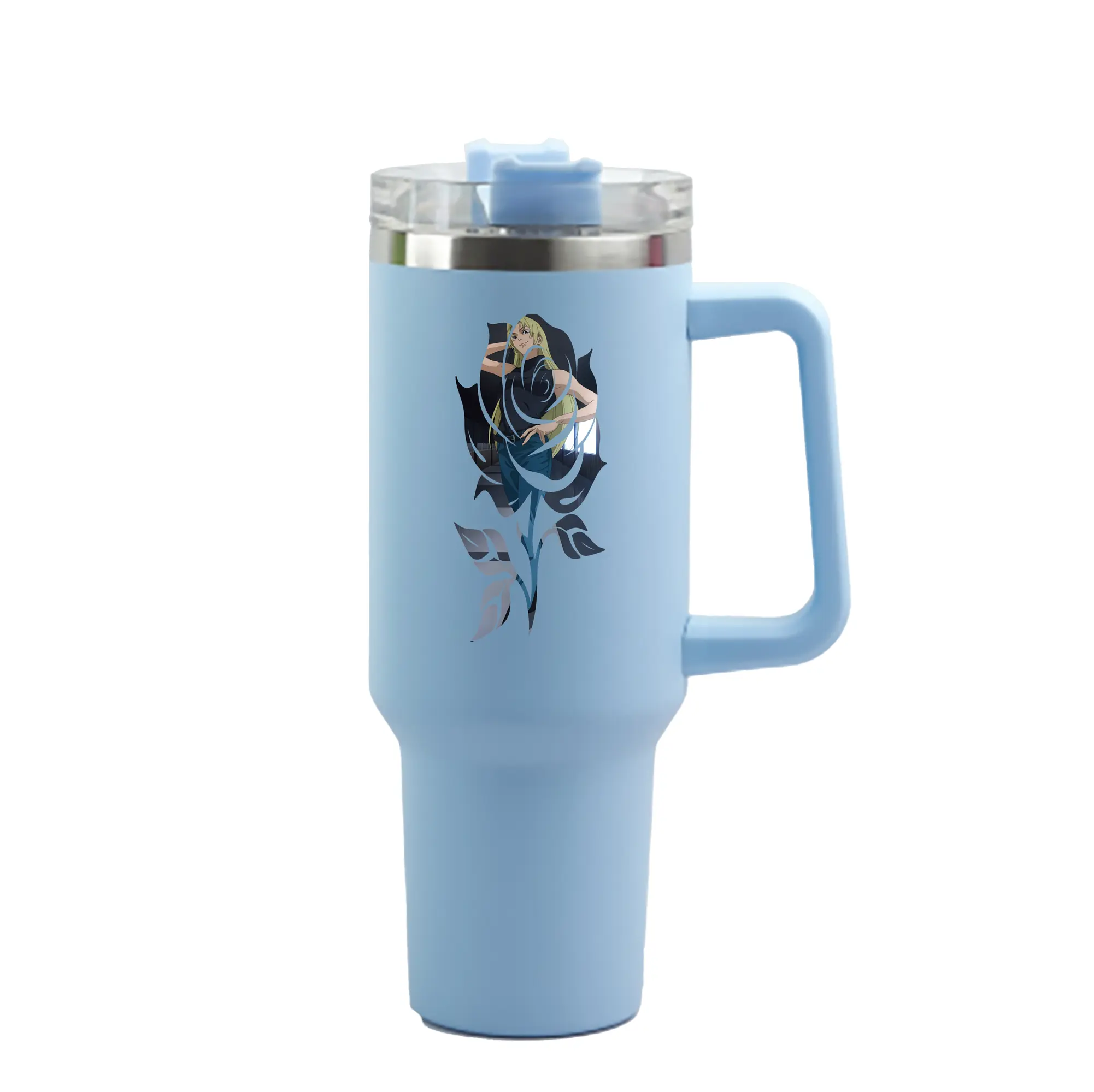 1200mL(40オンス)の大容量ハンドル付きカータンブラー。キラキラと輝くクリスタルステッカーデザインが、毎日の使用に華やかさをプラスします。食品グレード304ステンレスの内側と頑丈な201ステンレスの外側を採用し、耐久性・耐腐食性・安全性を兼ね備えています。