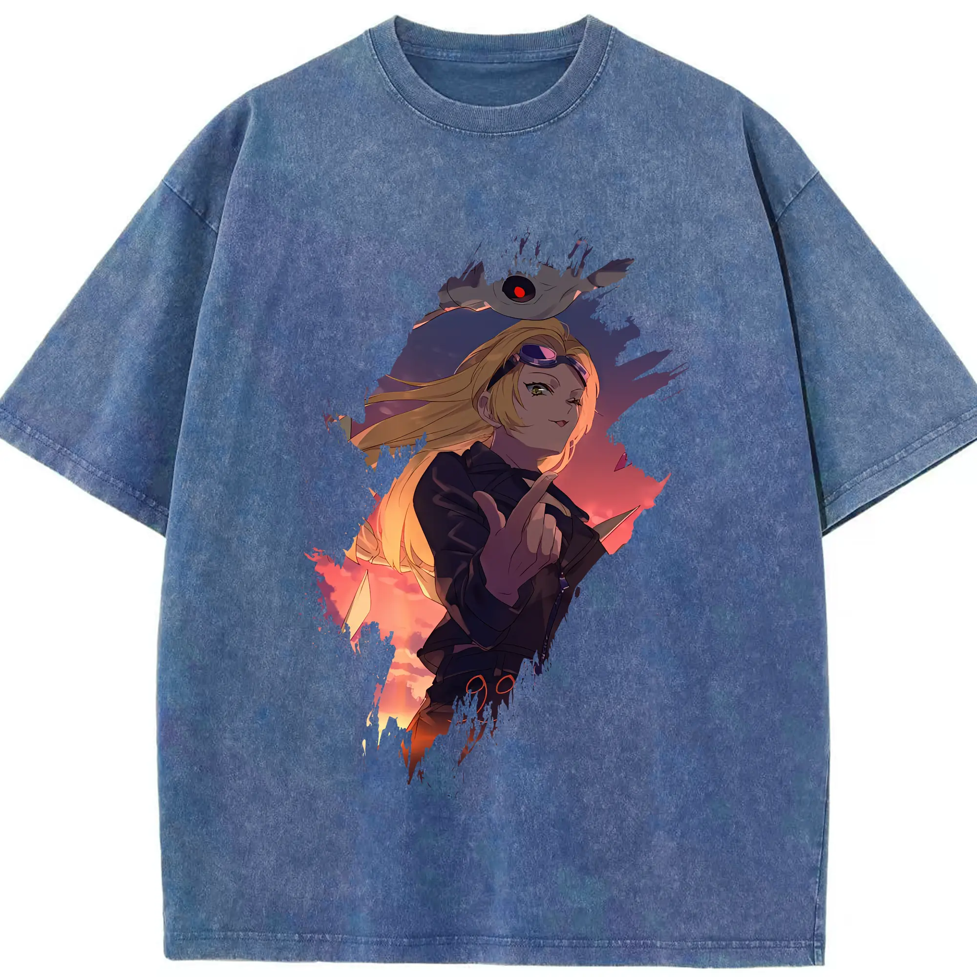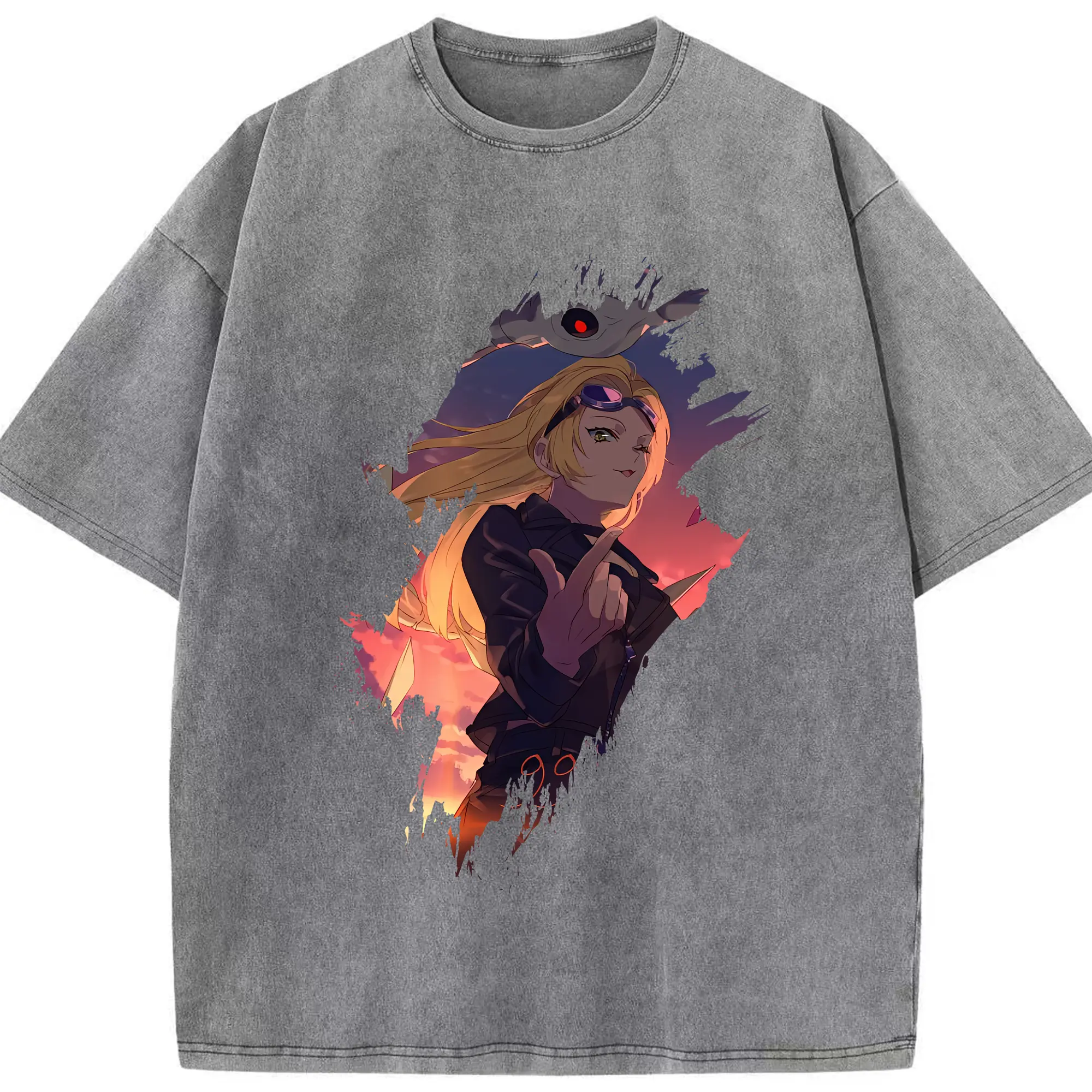 鳴潮 グッズ カルロッタ - 綿100% ヴィンテージ風 半袖Tシャツ ・ フロントプリント ・ 柔らか肌触り ・ 通気性 快適 ・ スポーツ カジュアル 外出用