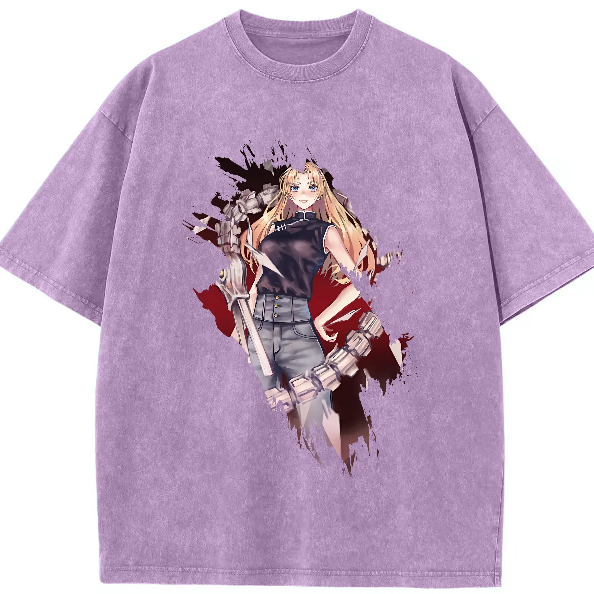 鳴潮 グッズ フィービー - 綿100% ヴィンテージ風 半袖Tシャツ ・ フロントプリント ・ 柔らか肌触り ・ 通気性 快適 ・ スポーツ カジュアル 外出用