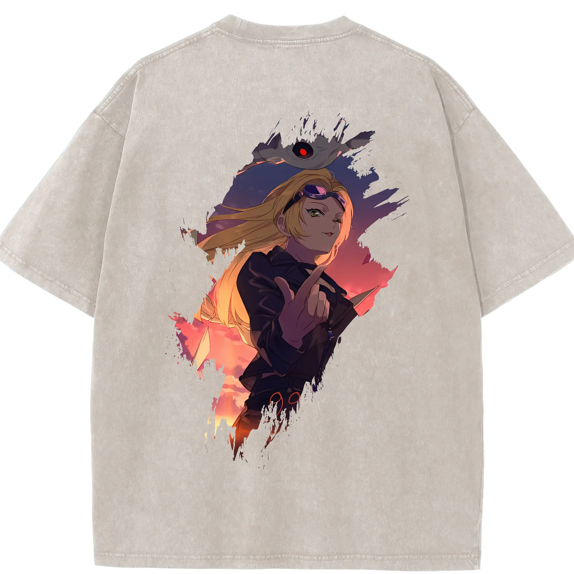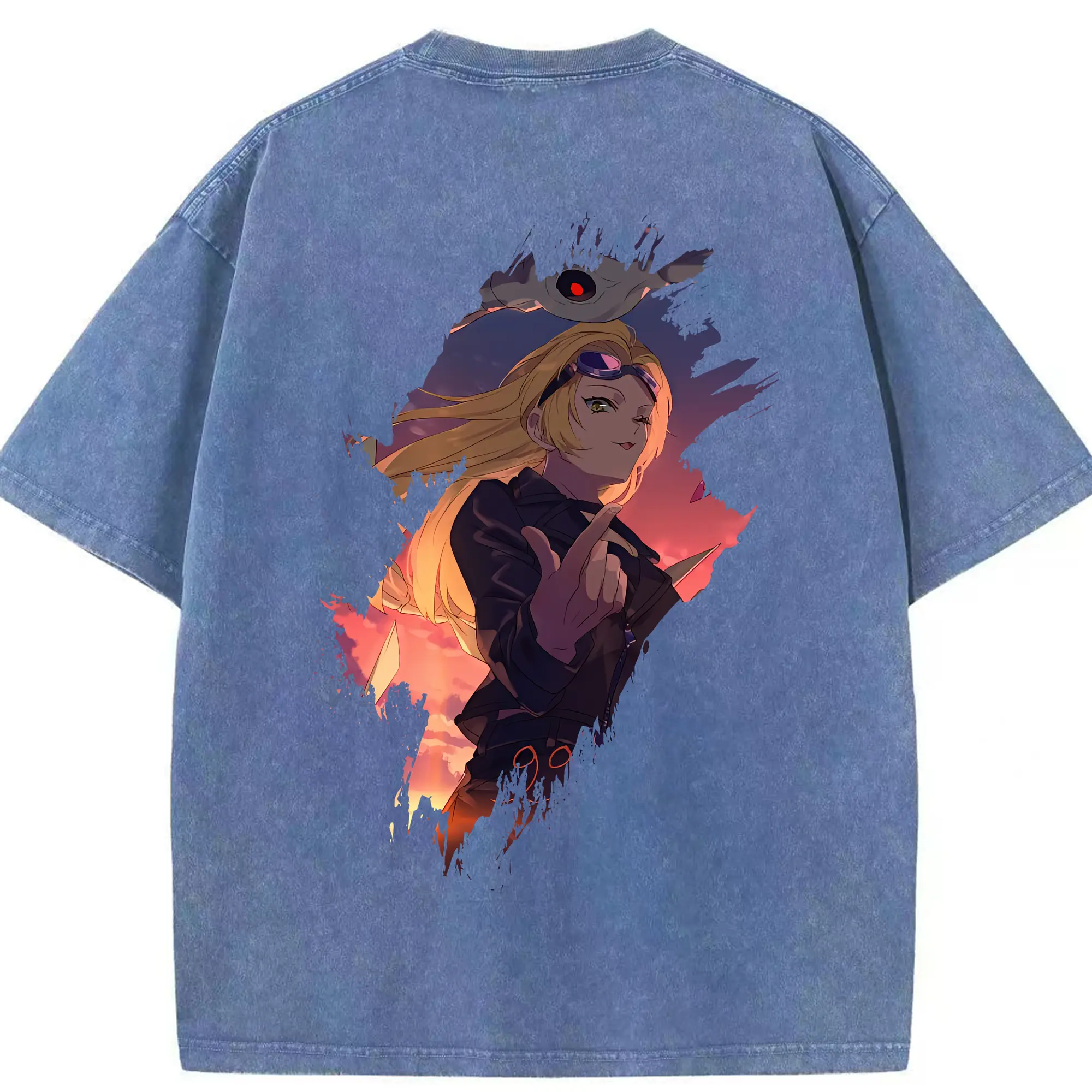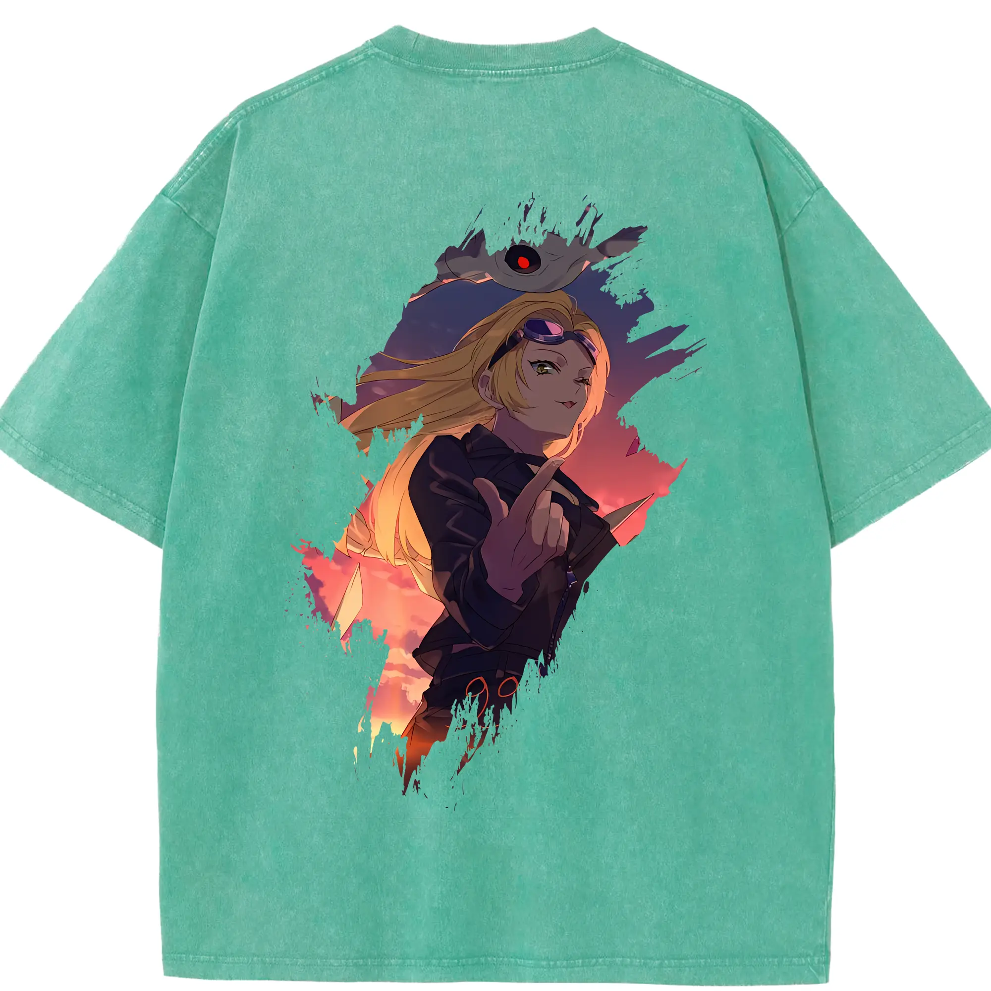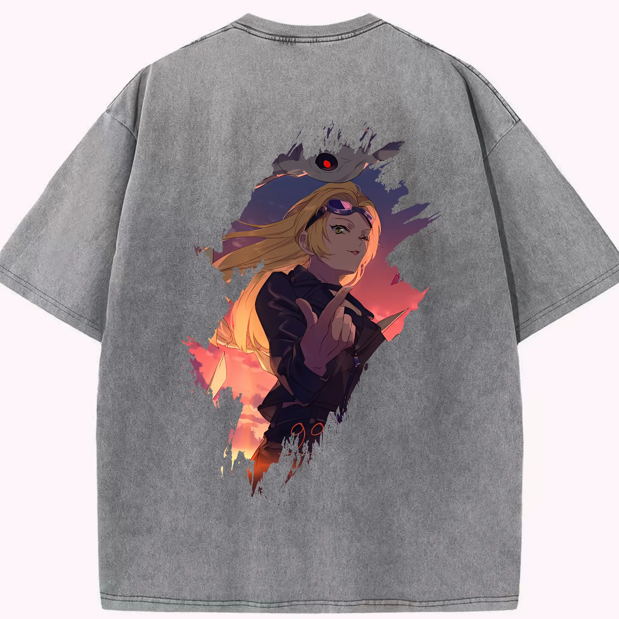 ドクターストーン グッズ,司 - 綿100% ヴィンテージ風 半袖Tシャツ ・ 背面プリント ・ 柔らか肌触り ・ 通気性 快適 ・ スポーツ カジュアル 外出用