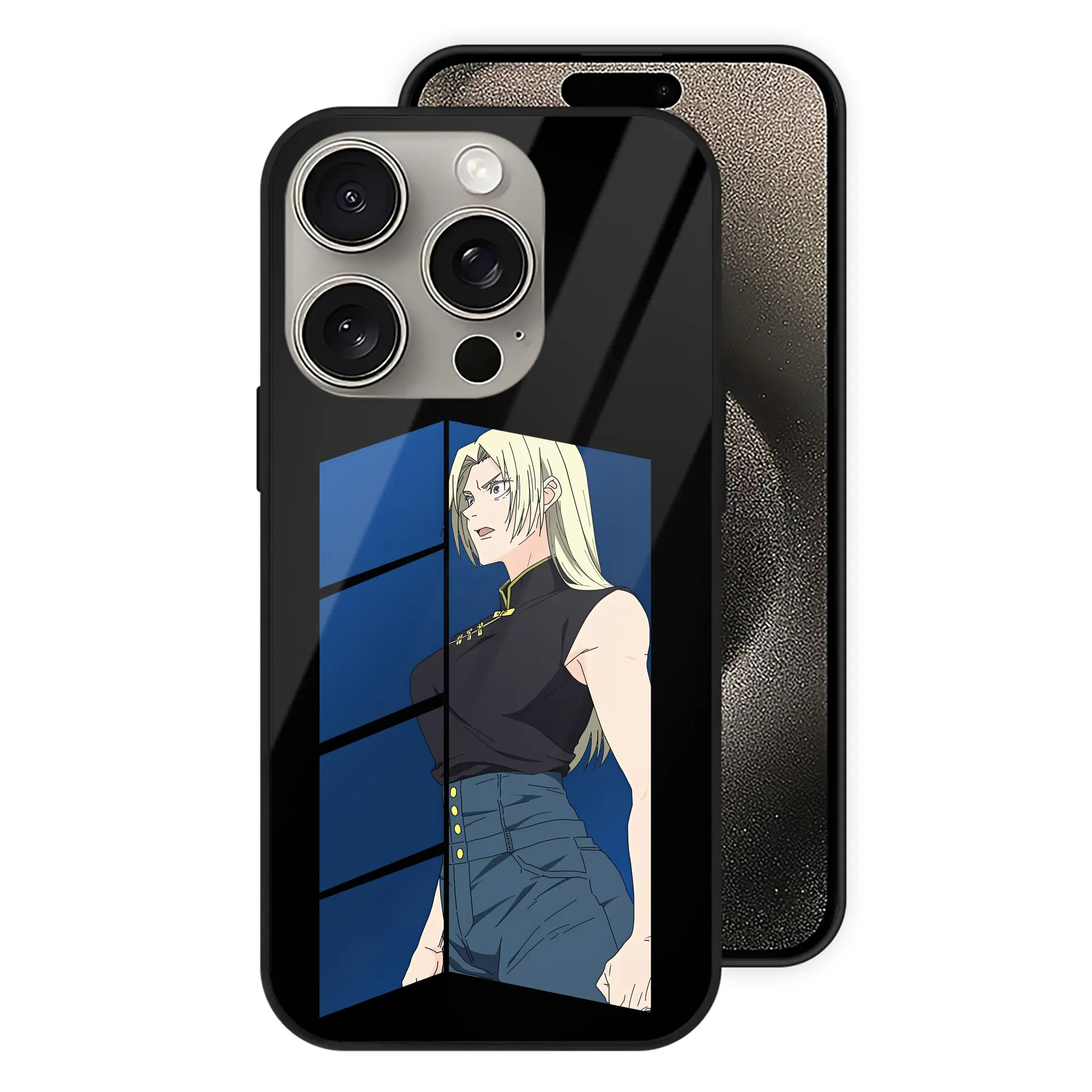 呪術廻戦 グッズ,九十九 由基 - IPhone15Pro対応 ・ スマホケース ・ 背面ガラス ・ TPU+強化ガラス ・ 耐衝撃 ・ 黄変防止 ・ ワイヤレス充電対応 ・ 3D立体ボタン