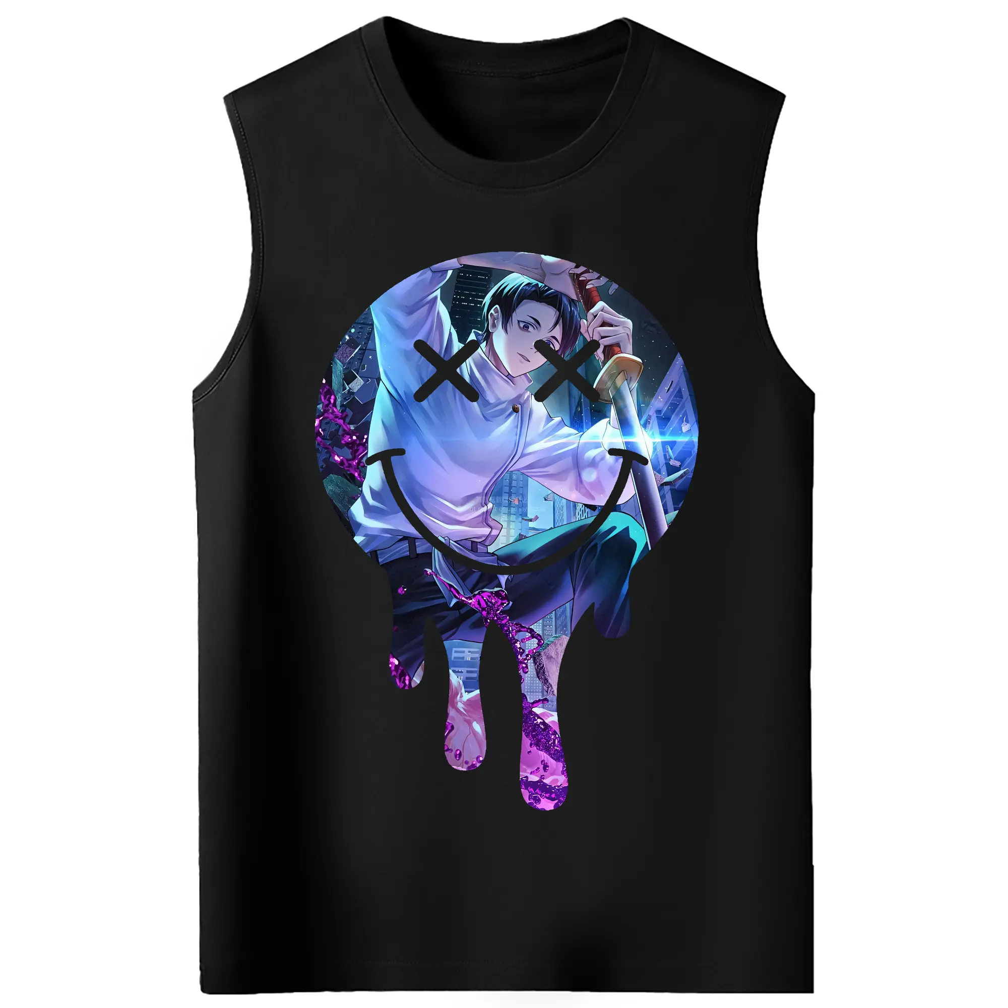 呪術廻戦 グッズ,乙骨 憂太 - コットン100% タンクトップ ・ フロントプリント ・ タイトフィット ・ 快適 通気性 ・ スポーツ カジュアル 散歩用