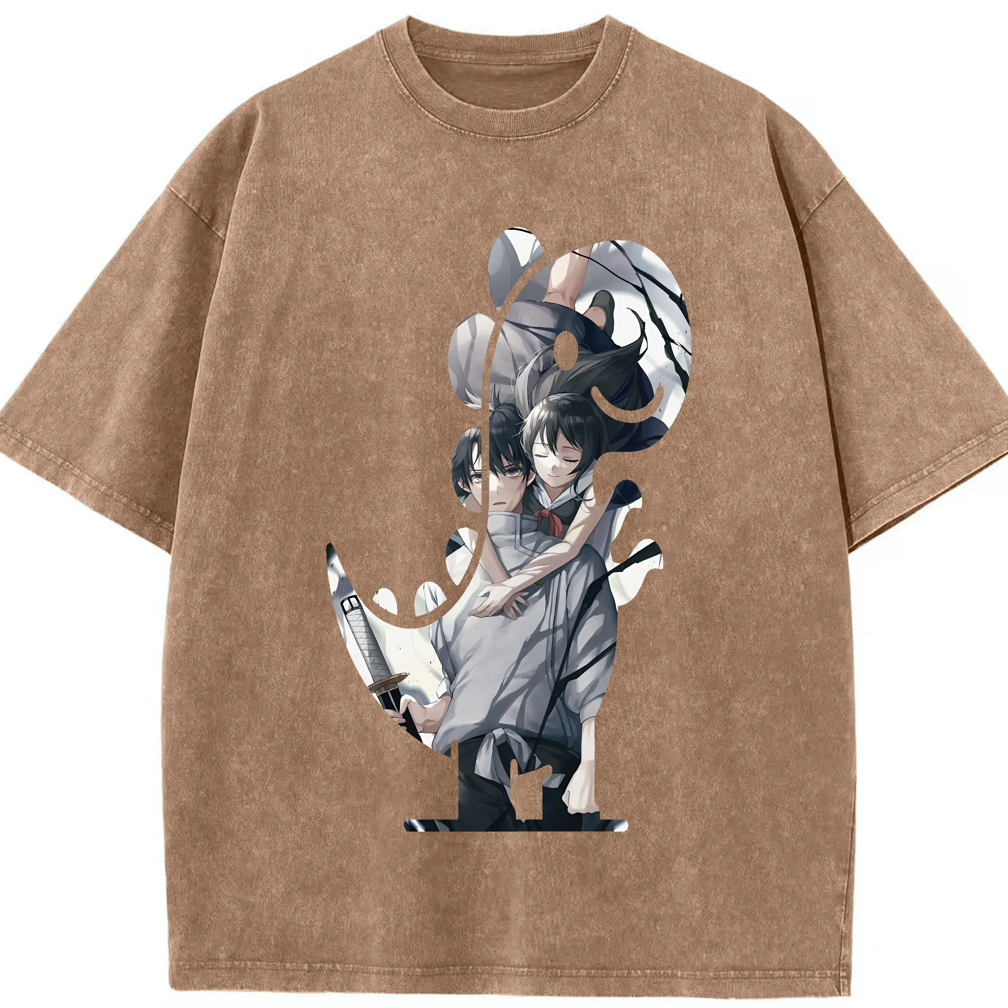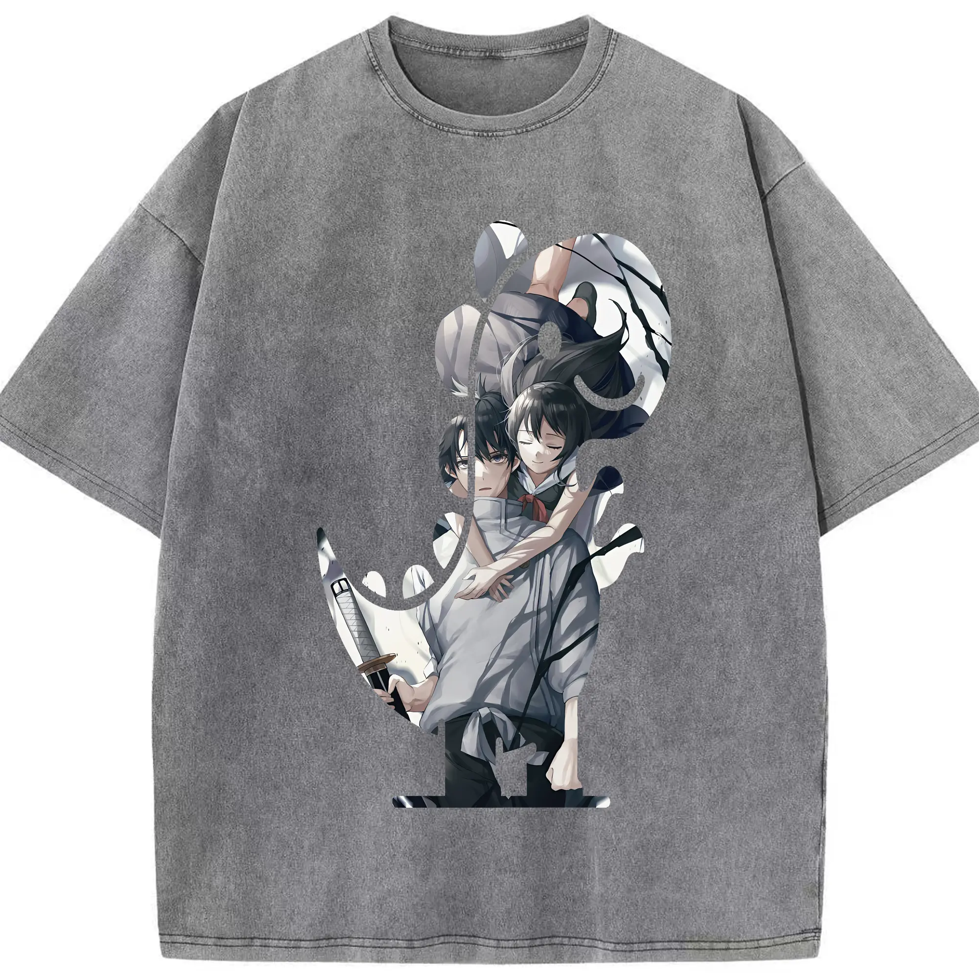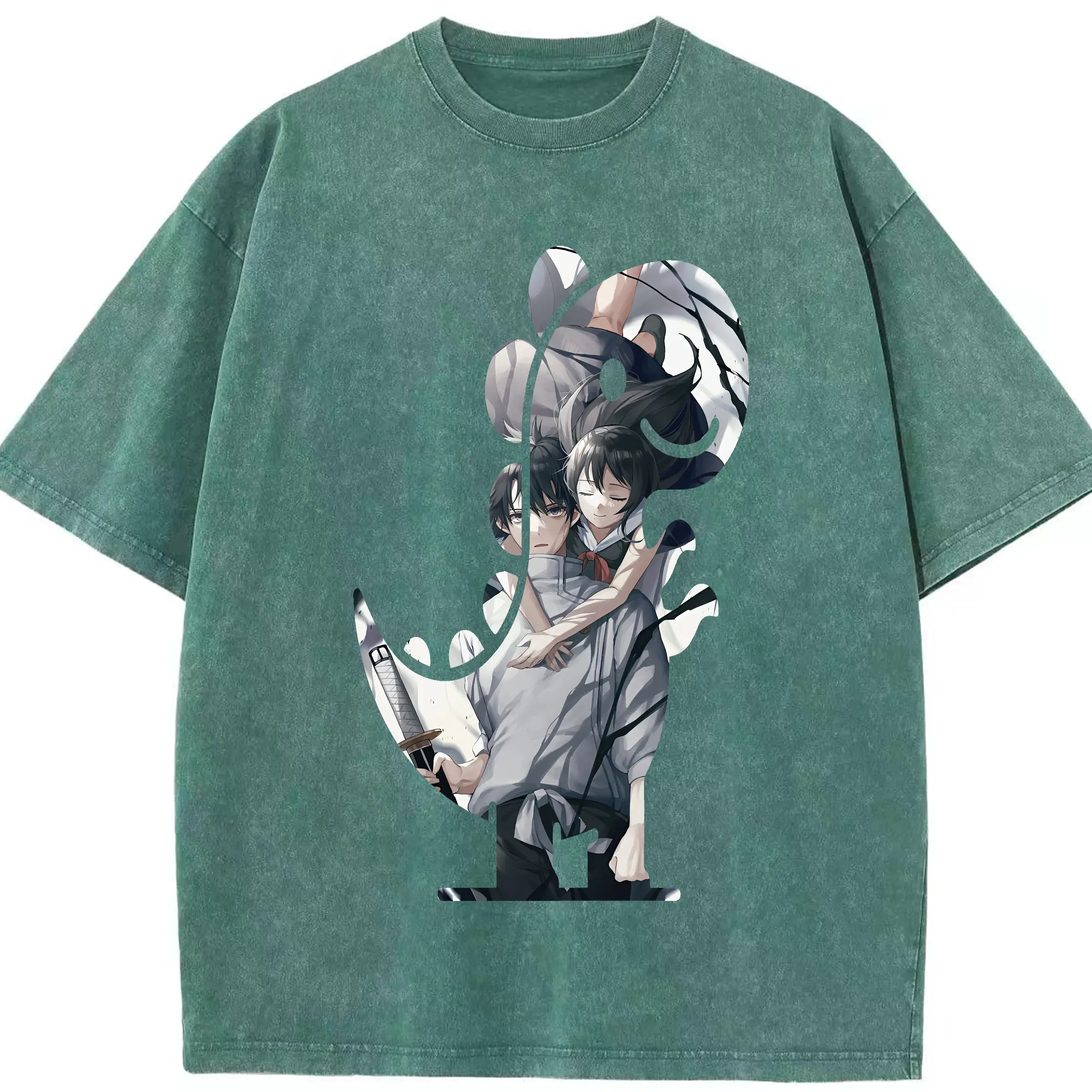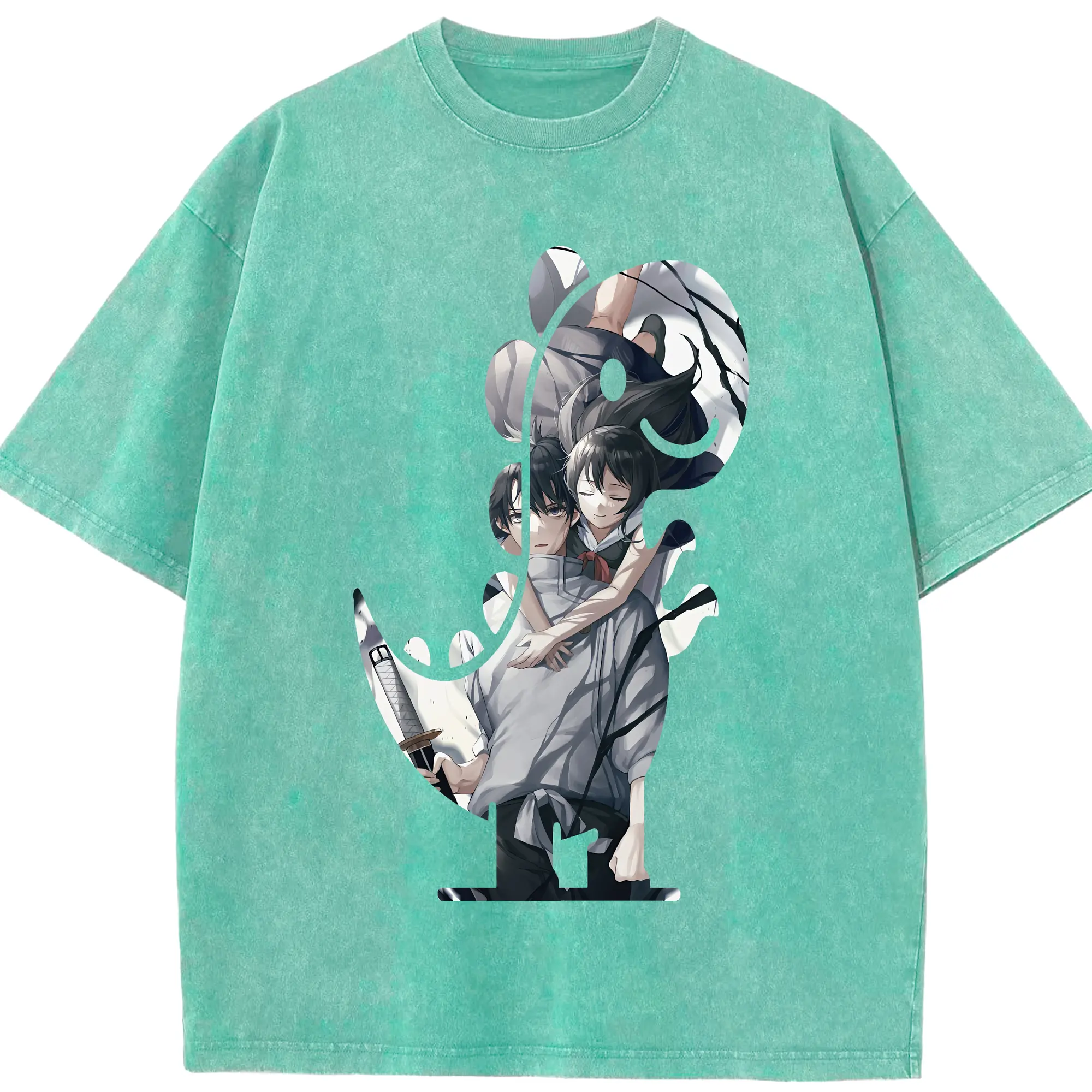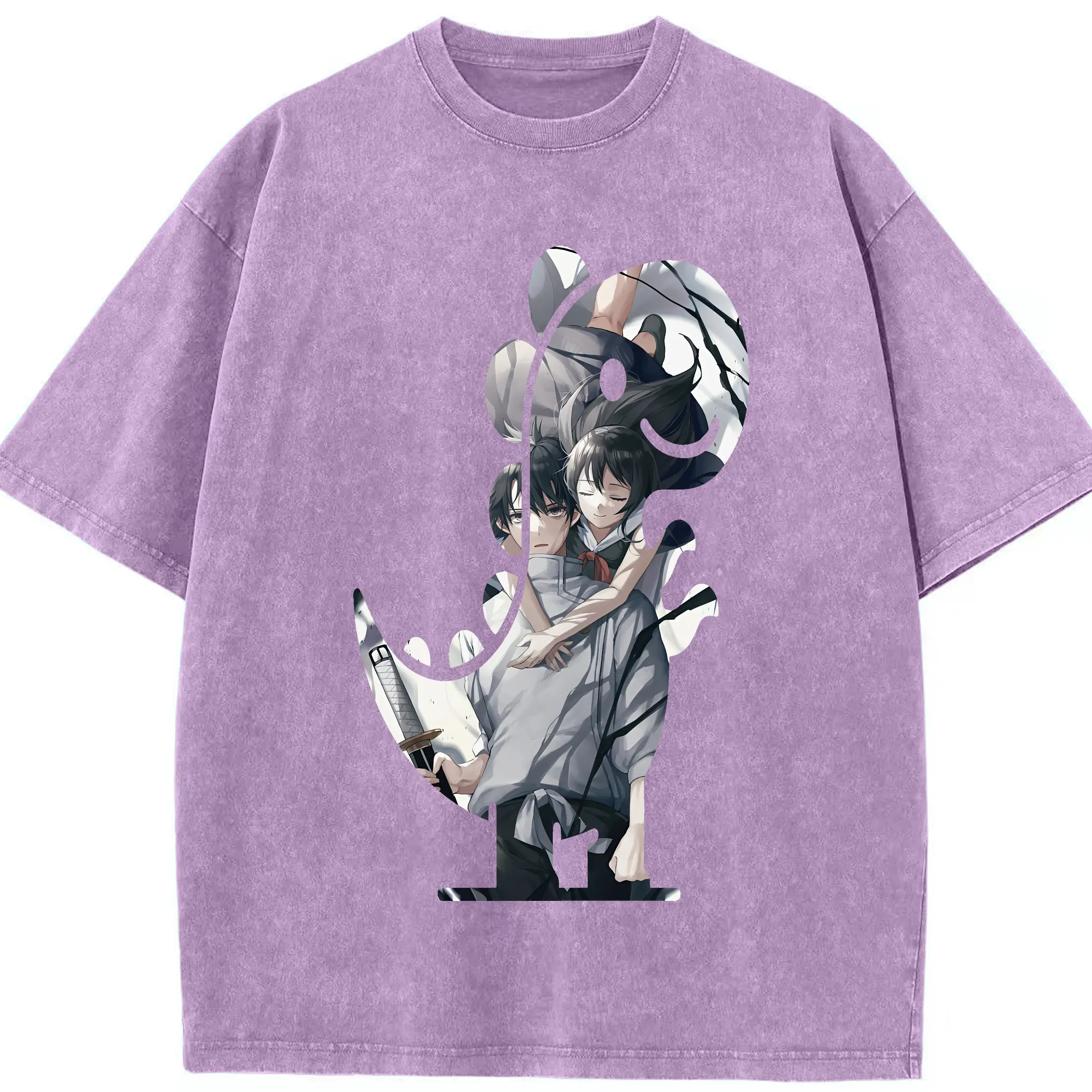 鬼滅の刃 グッズ,伊黒 小芭内 - 綿100% ヴィンテージ風 半袖Tシャツ ・ フロントプリント ・ 柔らか肌触り ・ 通気性 快適 ・ スポーツ カジュアル 外出用