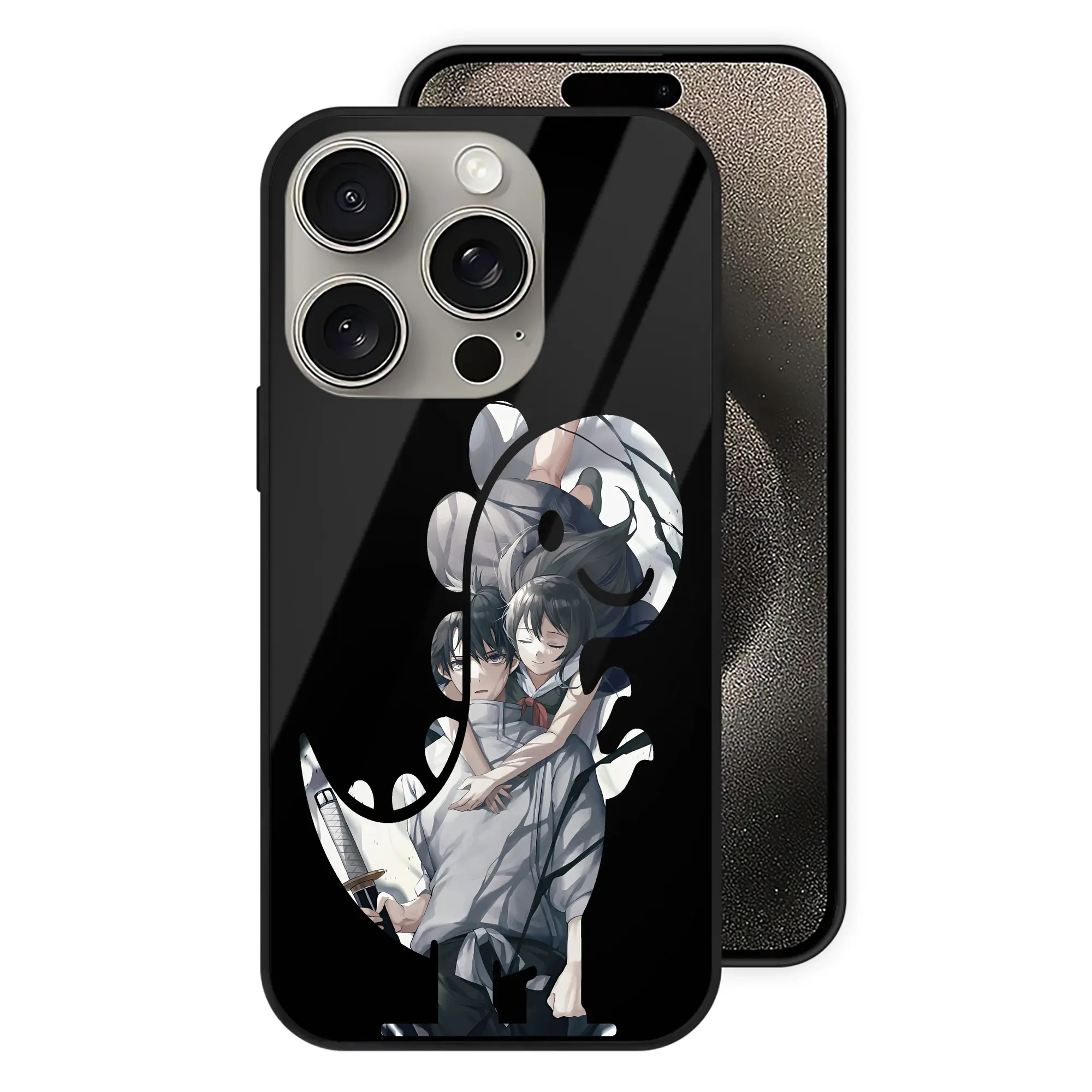 呪術廻戦 グッズ,乙骨 憂太 - IPhone15Pro対応 ・ スマホケース ・ 背面ガラス ・ TPU+強化ガラス ・ 耐衝撃 ・ 黄変防止 ・ ワイヤレス充電対応 ・ 3D立体ボタン
