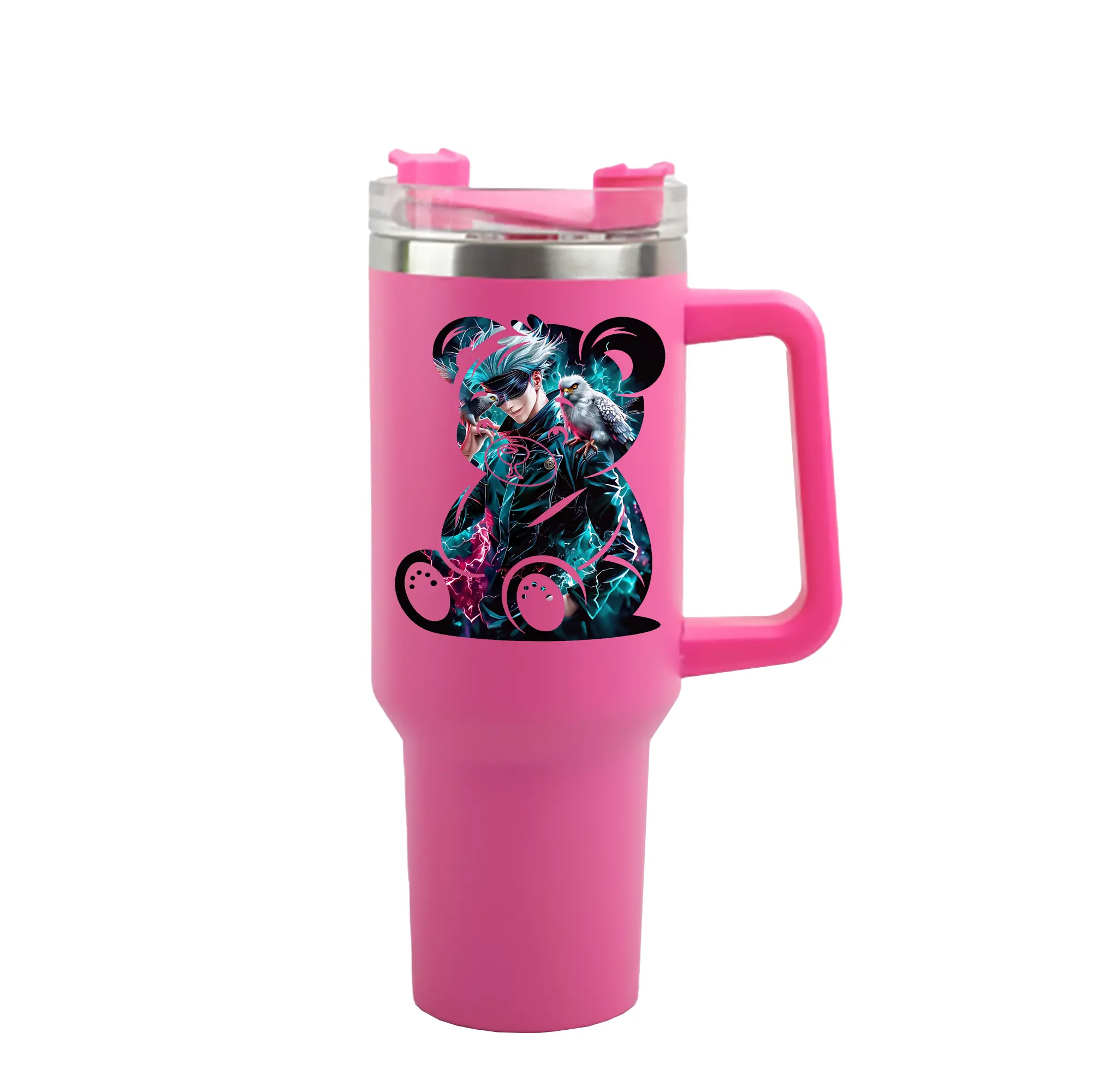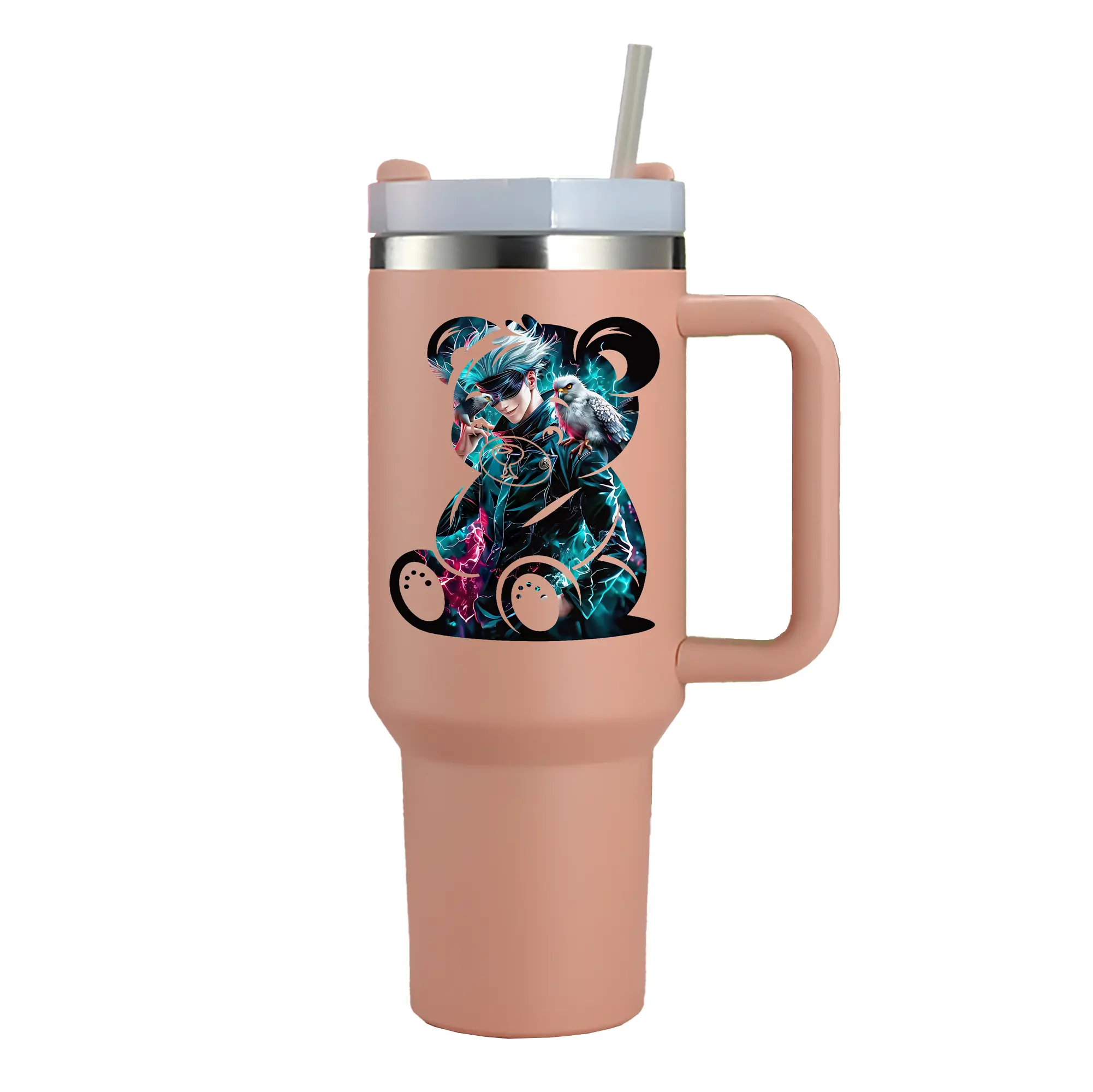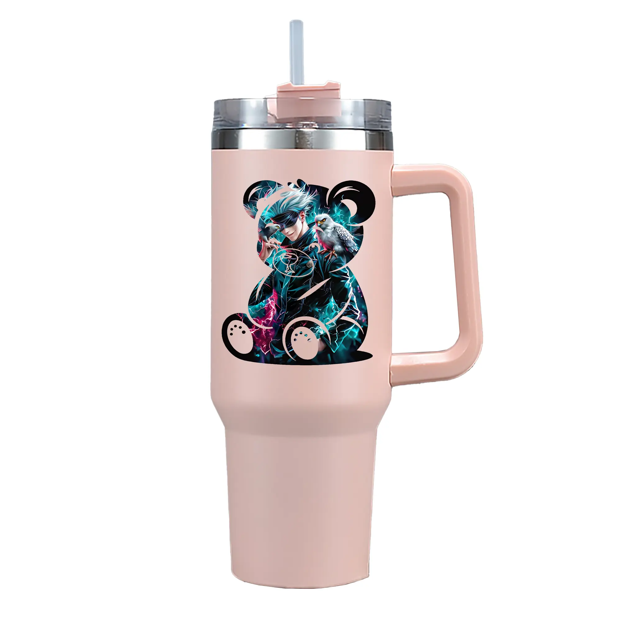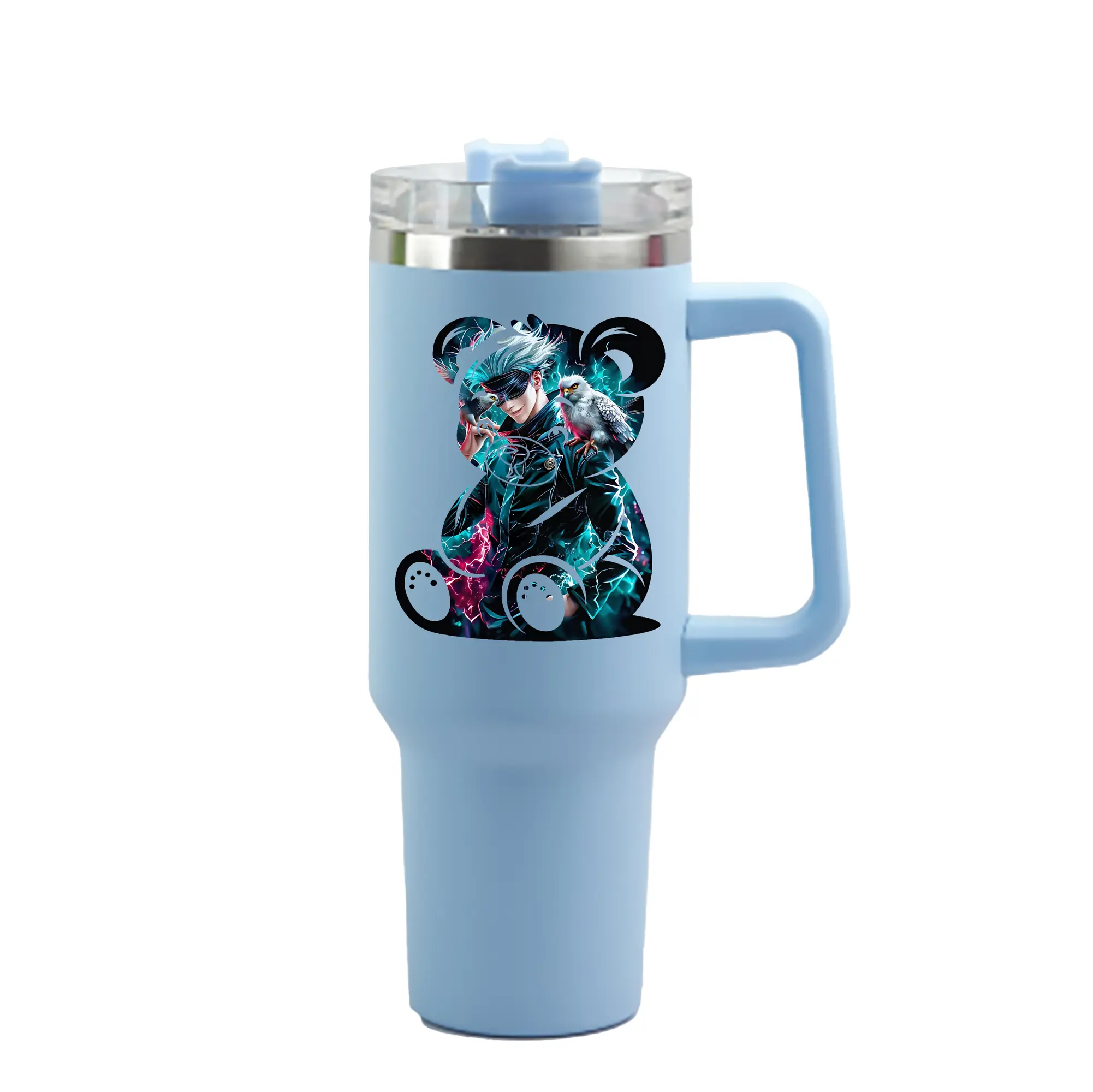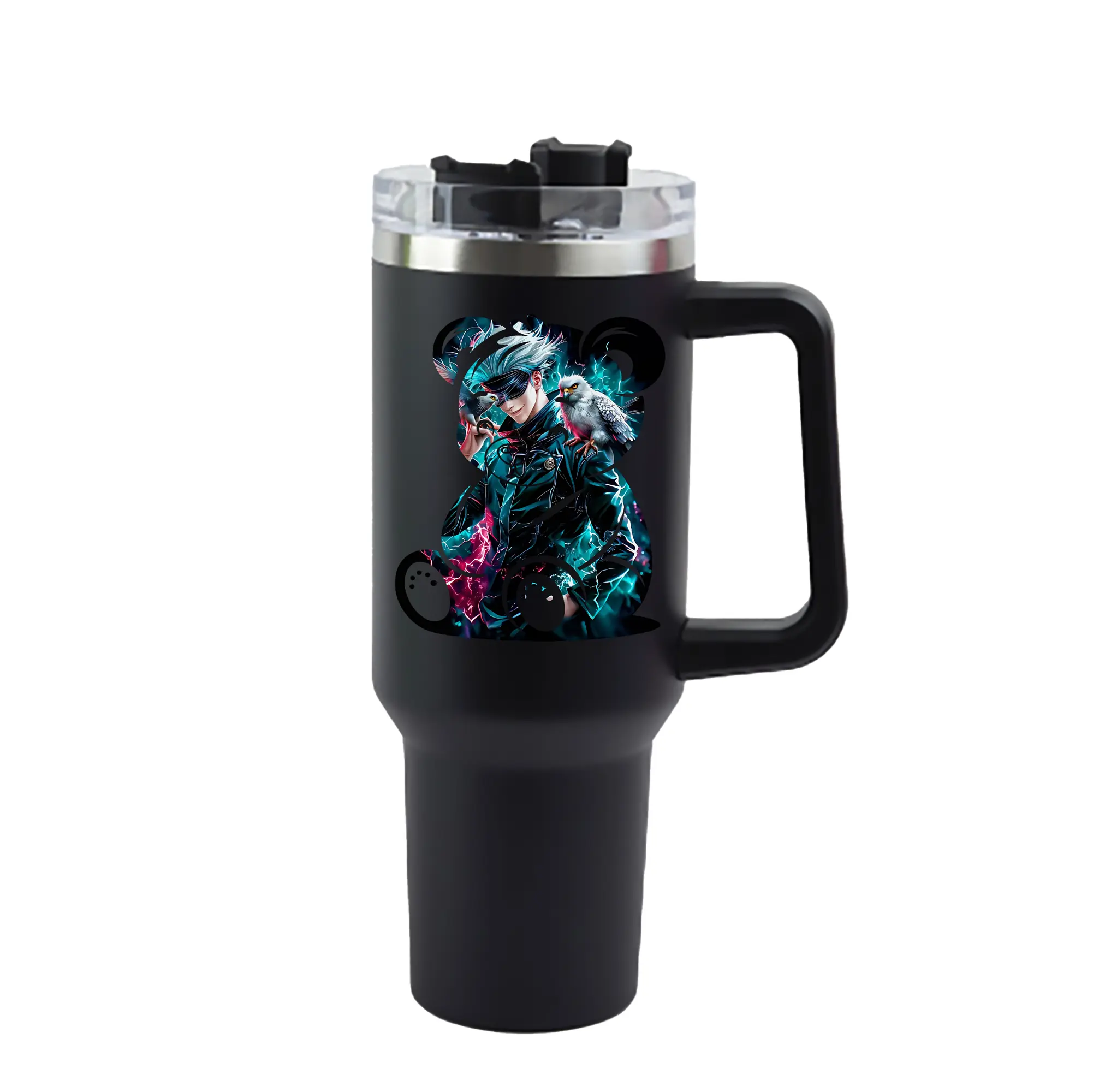 呪術廻戦 グッズ,五条 悟 - 1200mL 車用タンブラー ・ クリスタルステッカー ・ 304ステンレス 内側 ・ 201ステンレス 外側 ・ 保温 保冷 ・ ハンドル&ストロー付き ・ 通勤 ドライブ アウトドア用