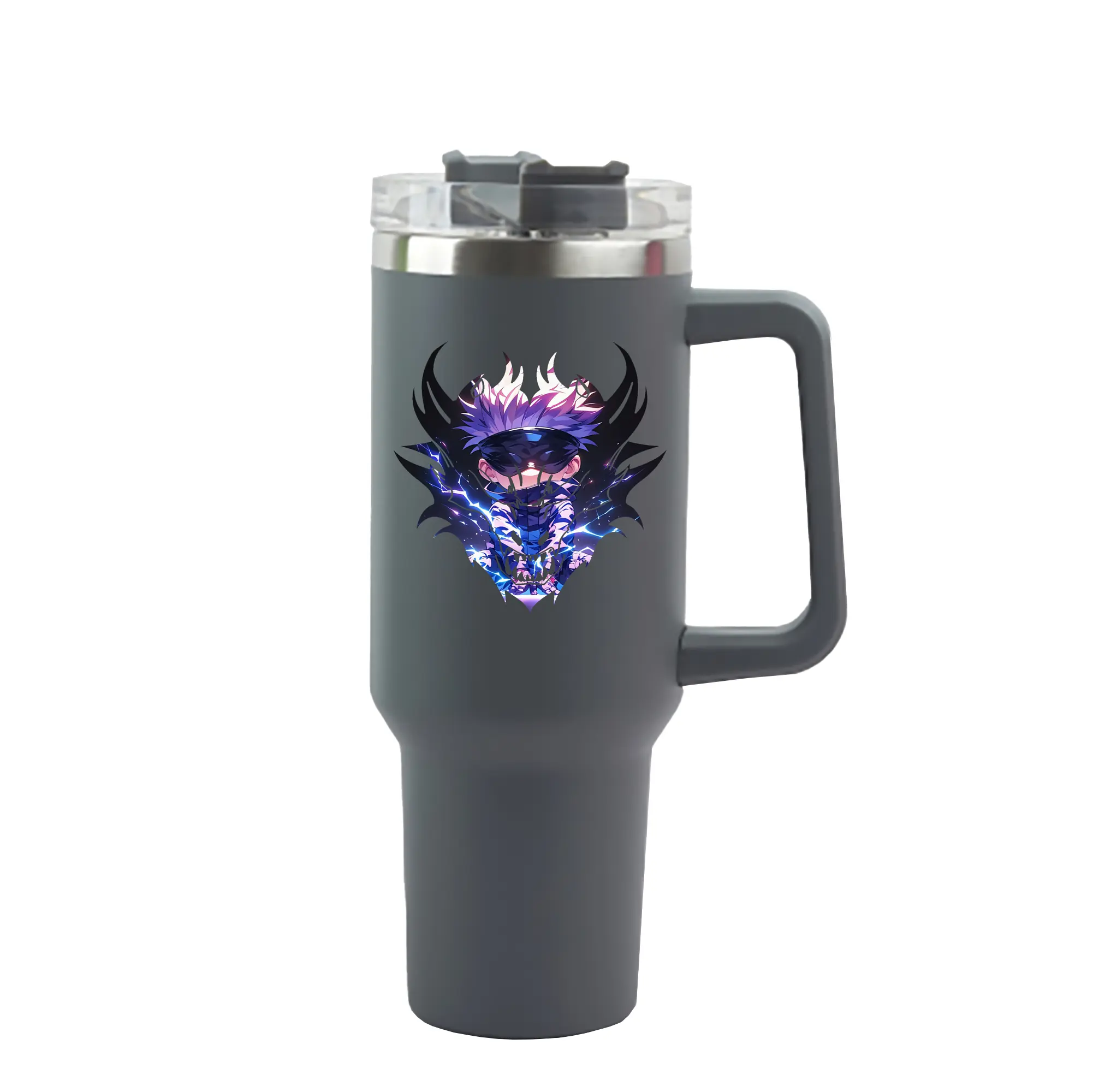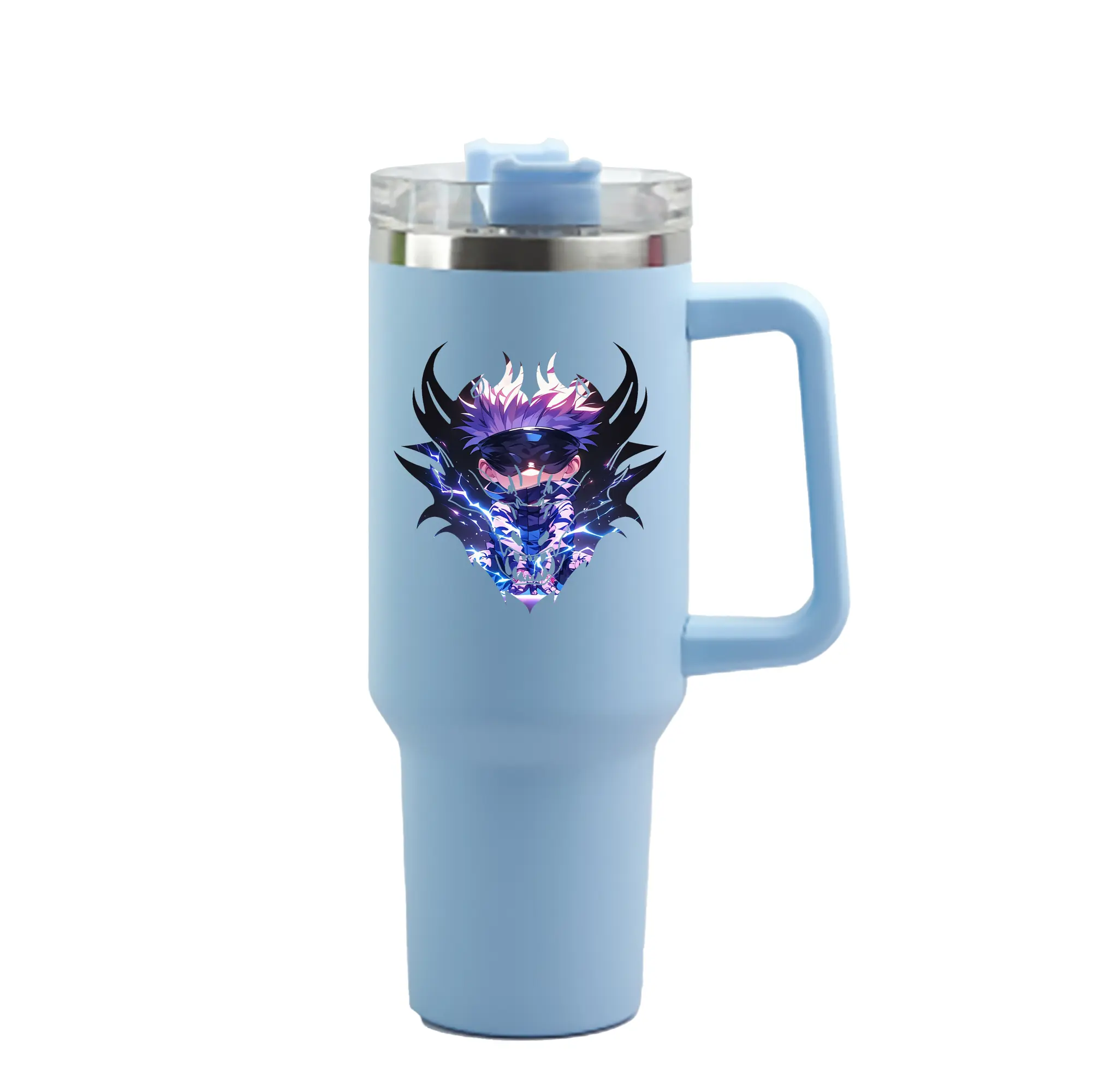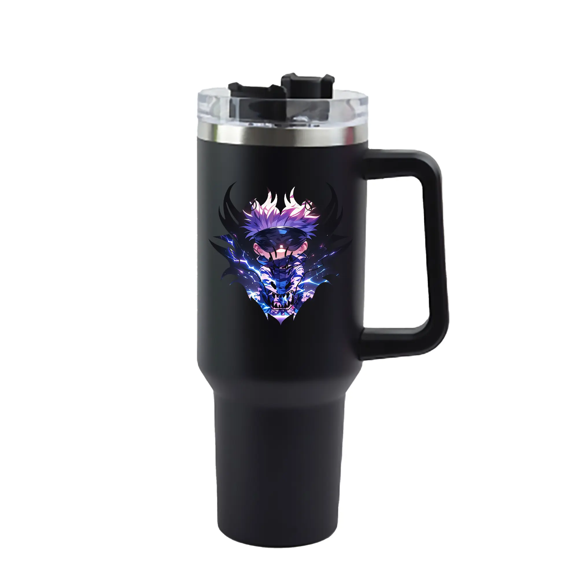 呪術廻戦 グッズ,五条 悟 - 1200mL 車用タンブラー ・ クリスタルステッカー ・ 304ステンレス 内側 ・ 201ステンレス 外側 ・ 保温 保冷 ・ ハンドル&ストロー付き ・ 通勤 ドライブ アウトドア用
