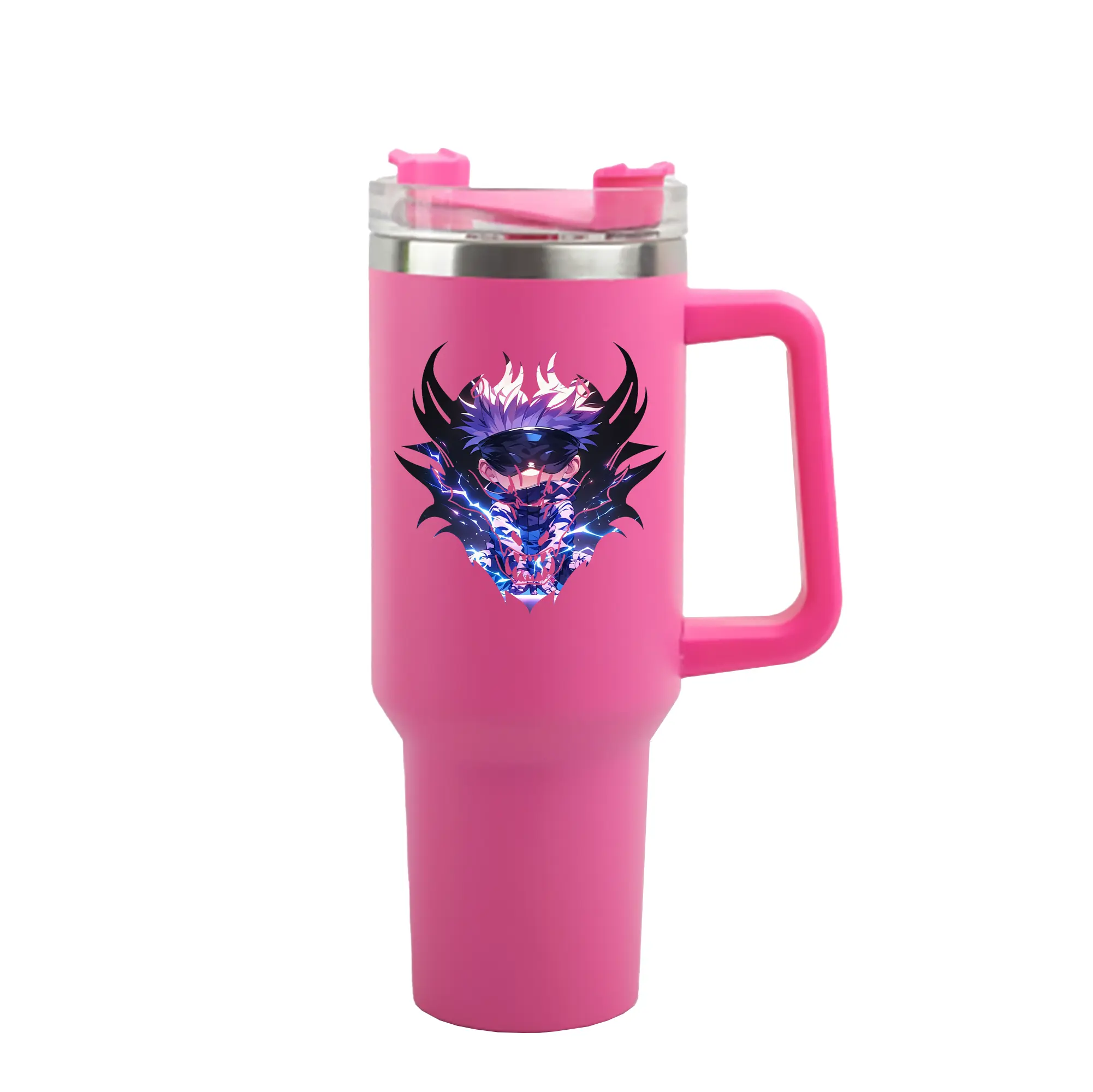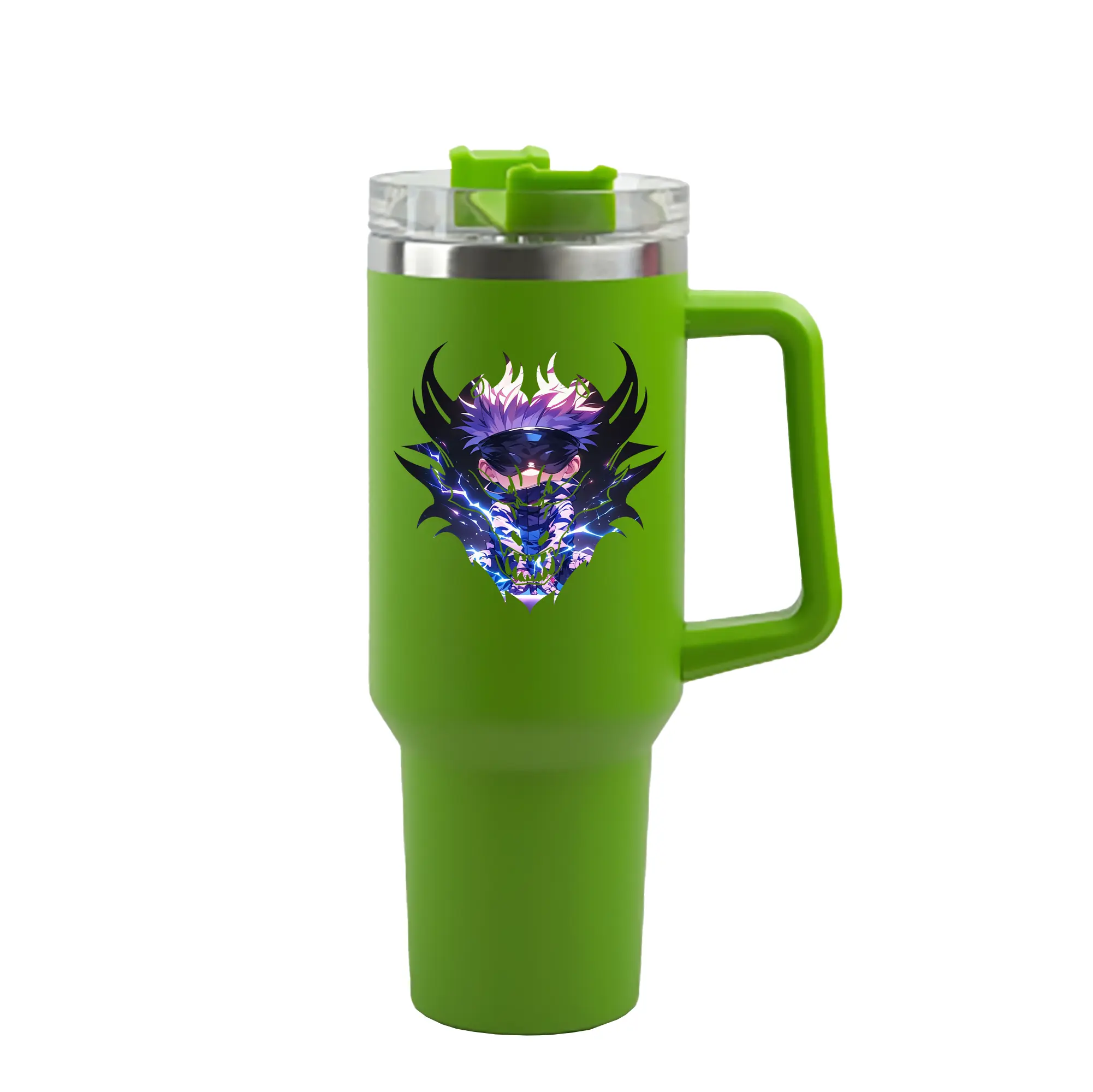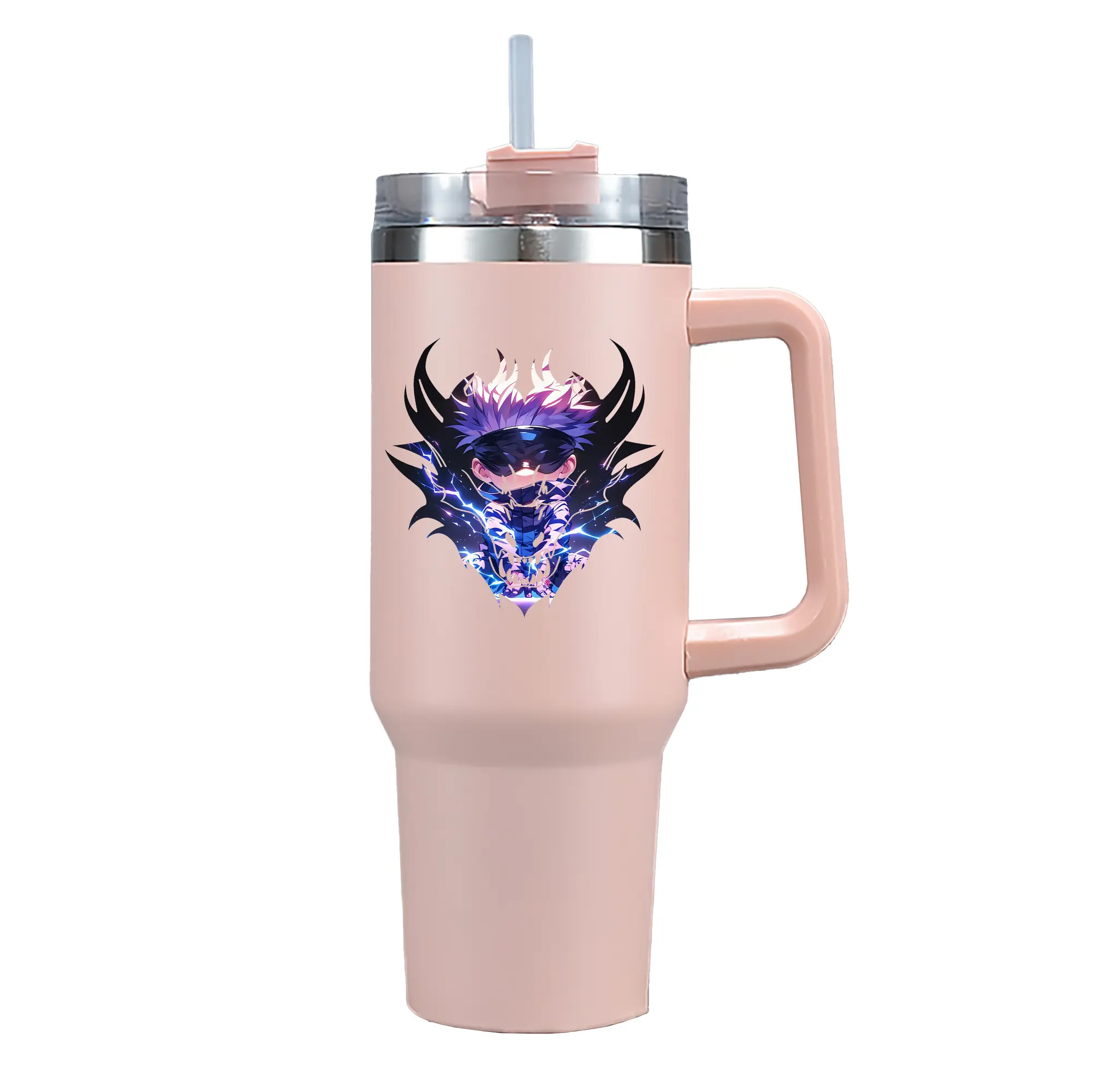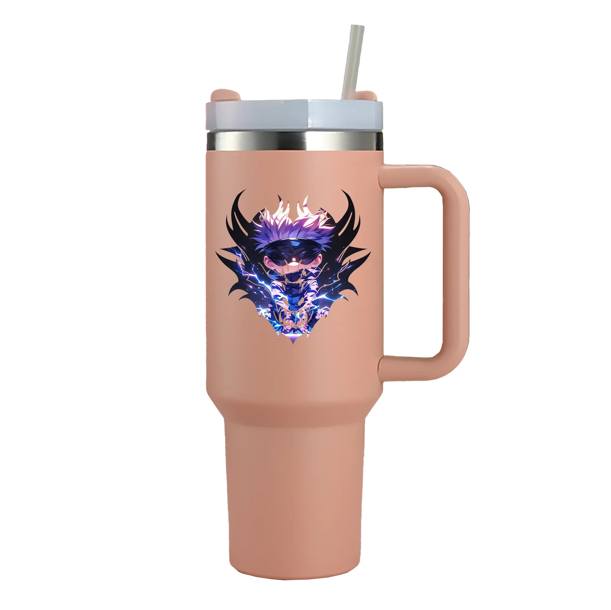 呪術廻戦 グッズ,五条 悟 - 1200mL 車用タンブラー ・ クリスタルステッカー ・ 304ステンレス 内側 ・ 201ステンレス 外側 ・ 保温 保冷 ・ ハンドル&ストロー付き ・ 通勤 ドライブ アウトドア用