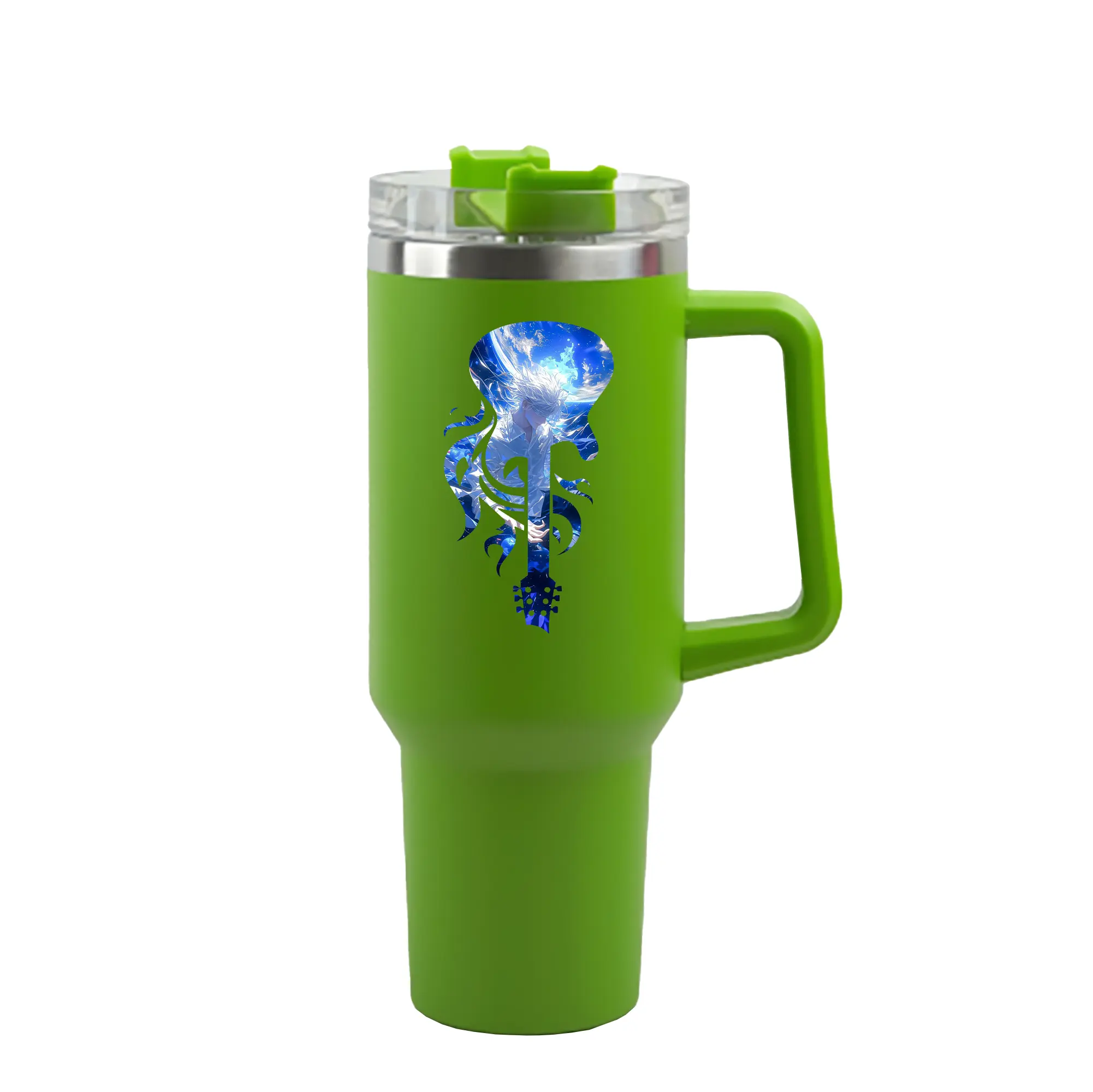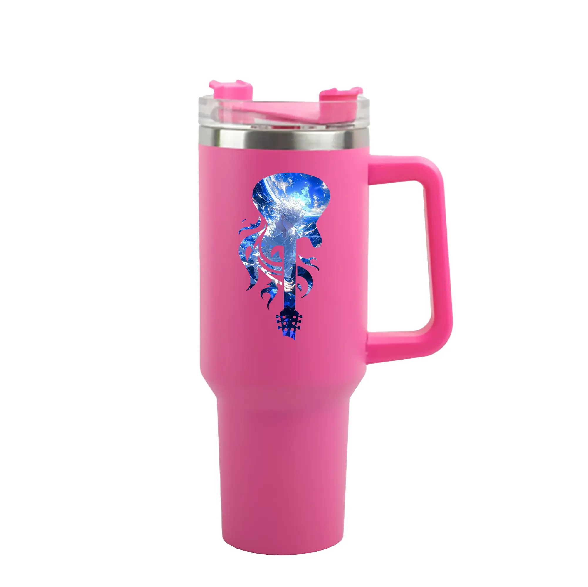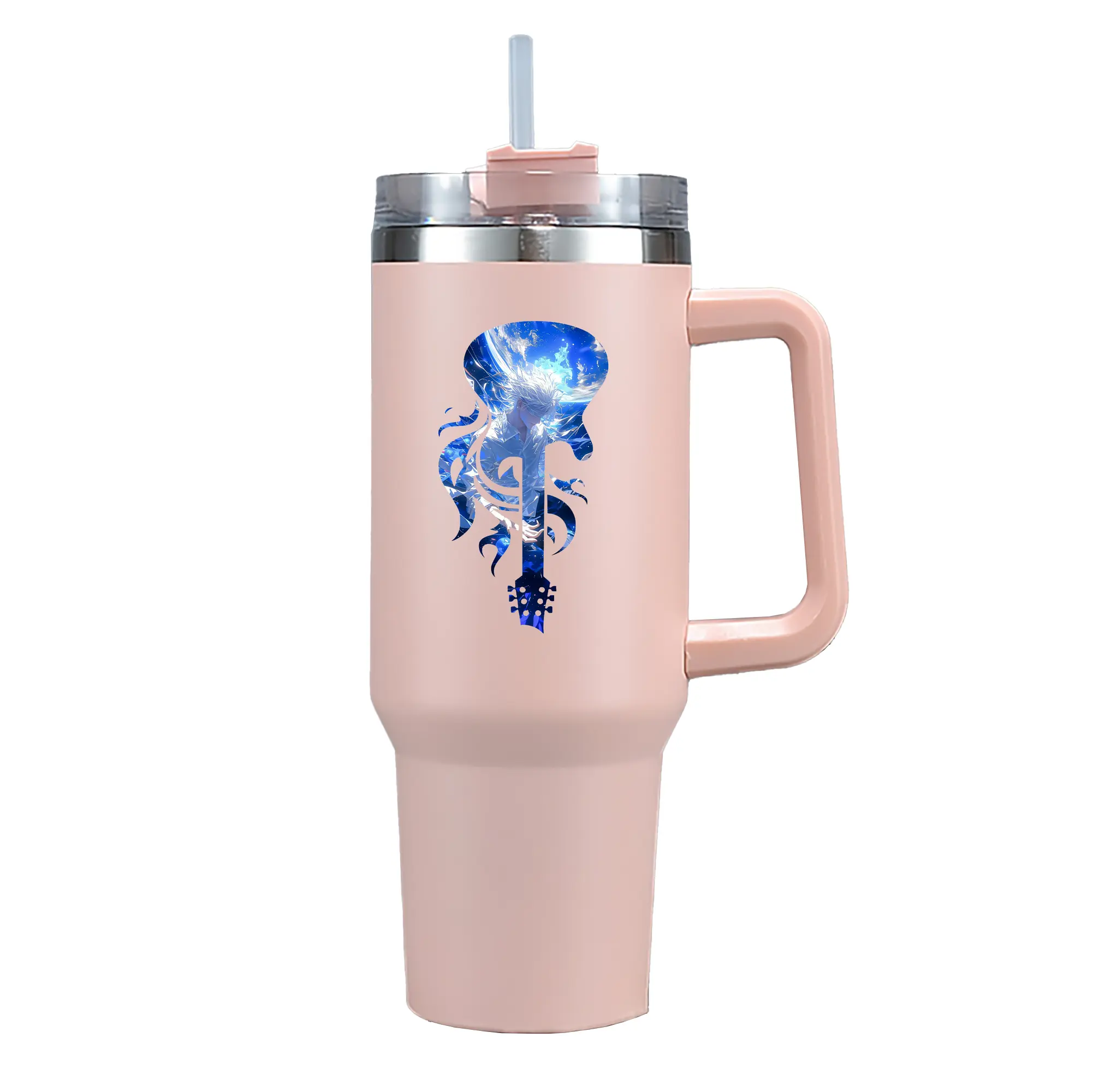 1200mL(40オンス)の大容量ハンドル付きカータンブラー。キラキラと輝くクリスタルステッカーデザインが、毎日の使用に華やかさをプラスします。食品グレード304ステンレスの内側と頑丈な201ステンレスの外側を採用し、耐久性・耐腐食性・安全性を兼ね備えています。