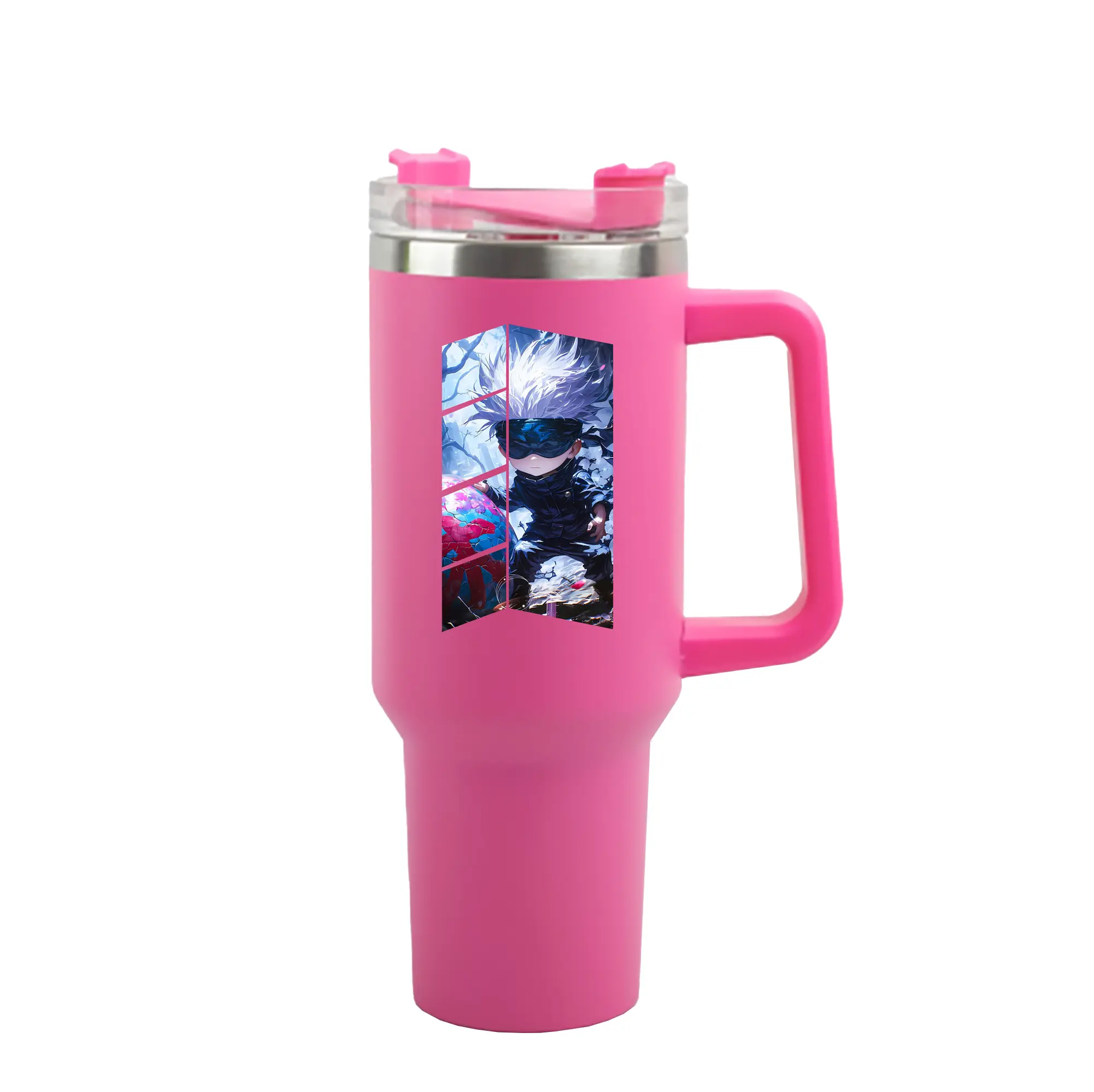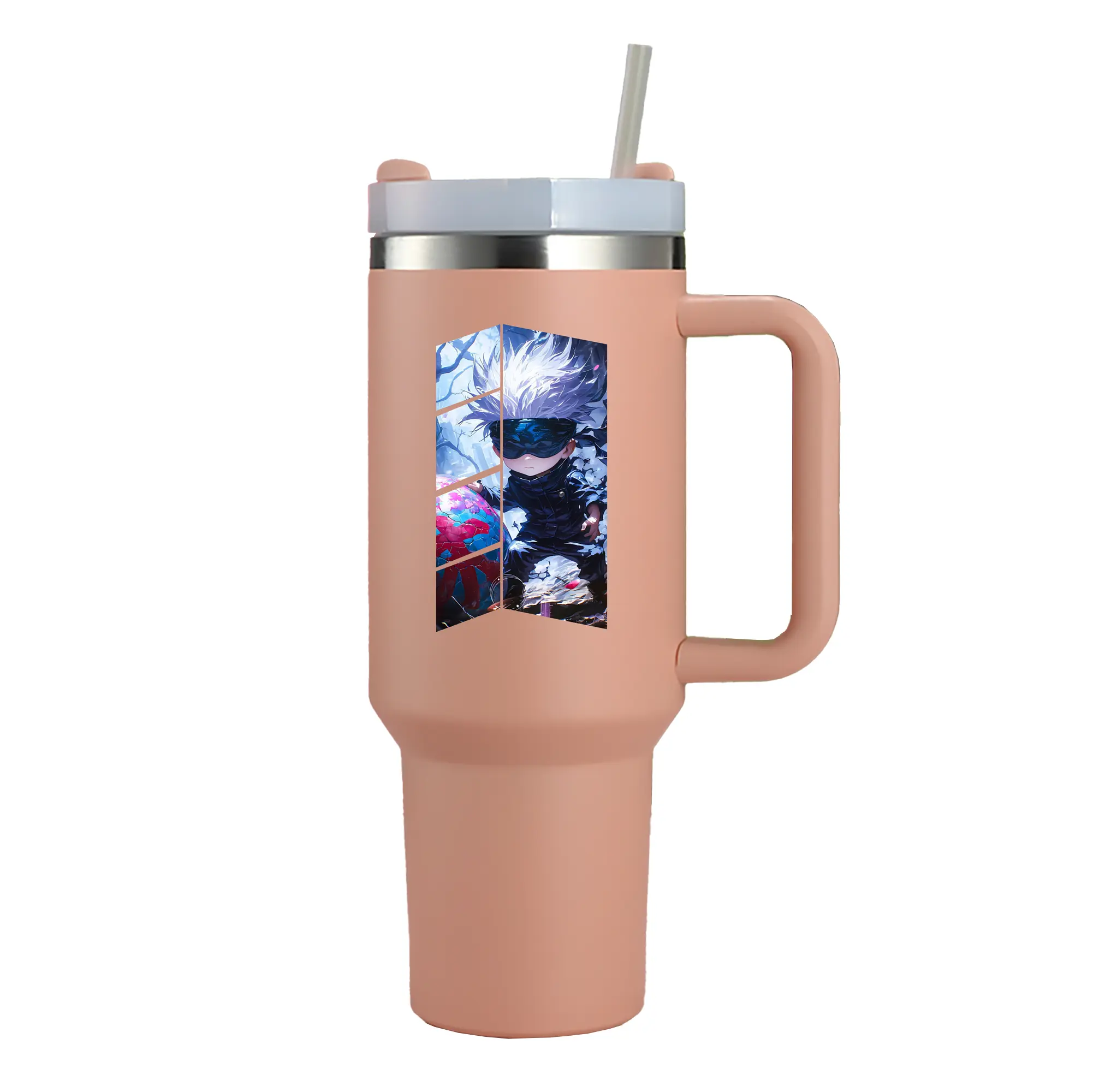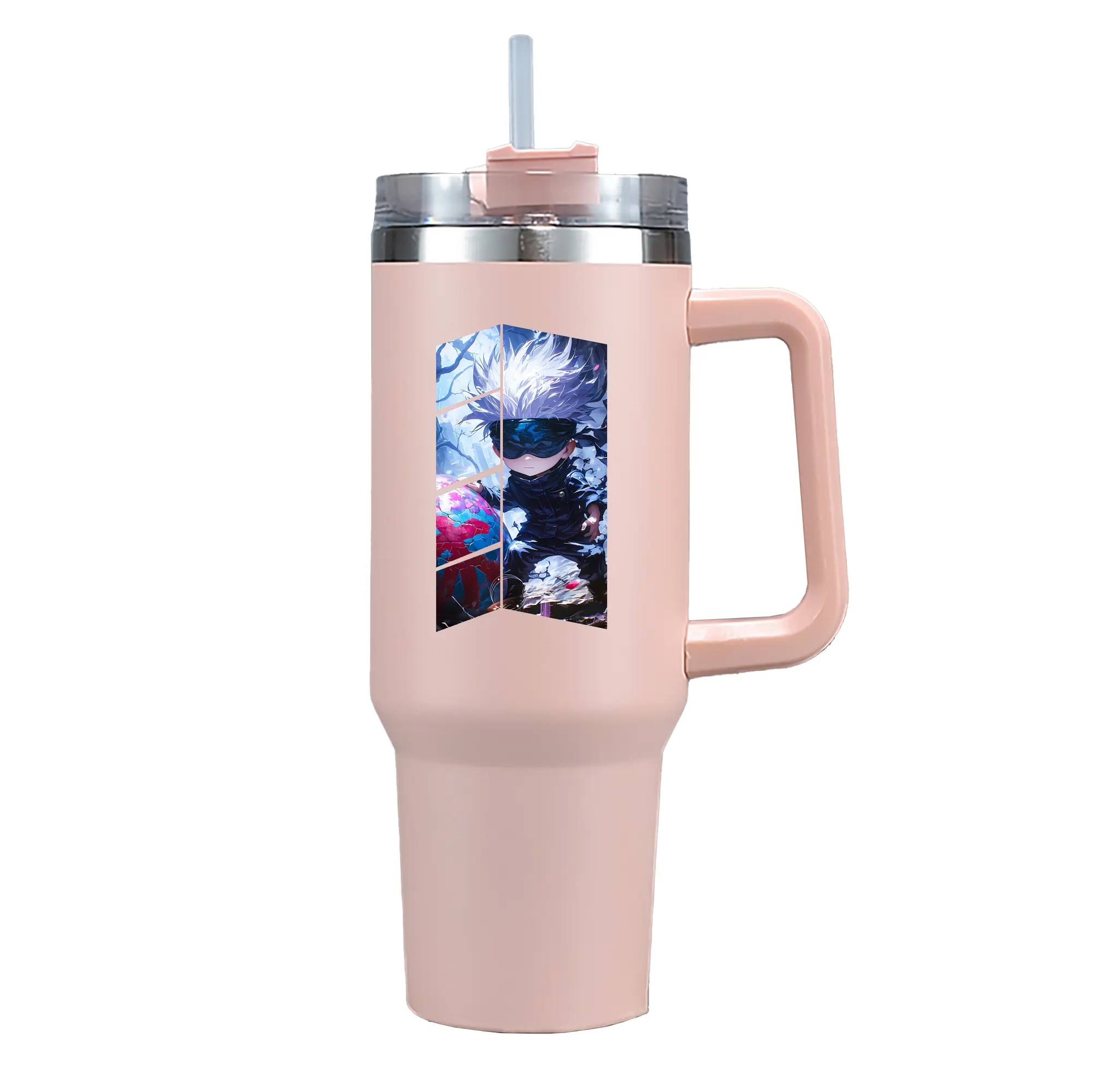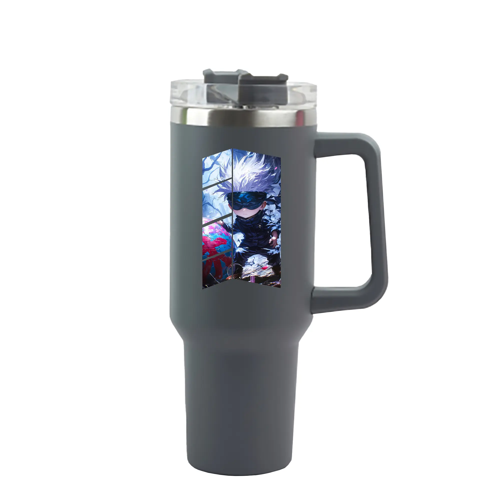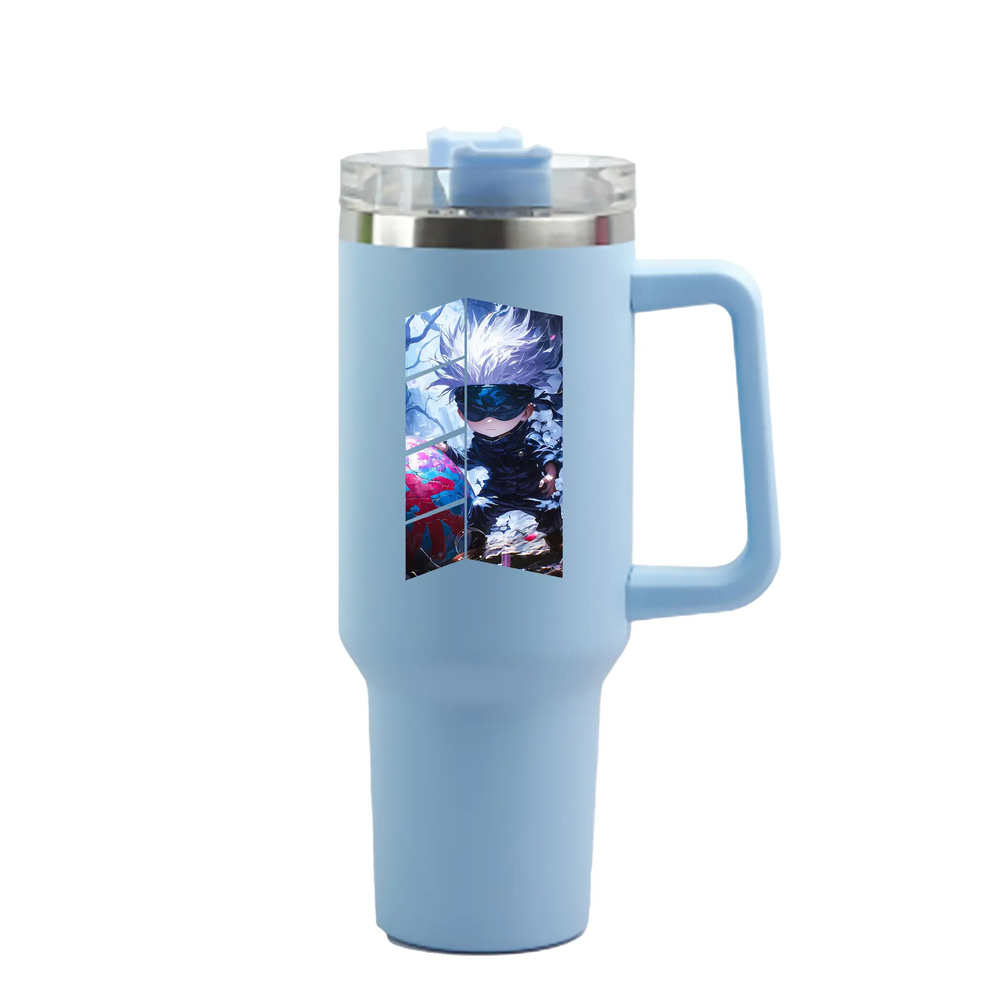 呪術廻戦 グッズ,五条 悟 - 1200mL 車用タンブラー ・ クリスタルステッカー ・ 304ステンレス 内側 ・ 201ステンレス 外側 ・ 保温 保冷 ・ ハンドル&ストロー付き ・ 通勤 ドライブ アウトドア用